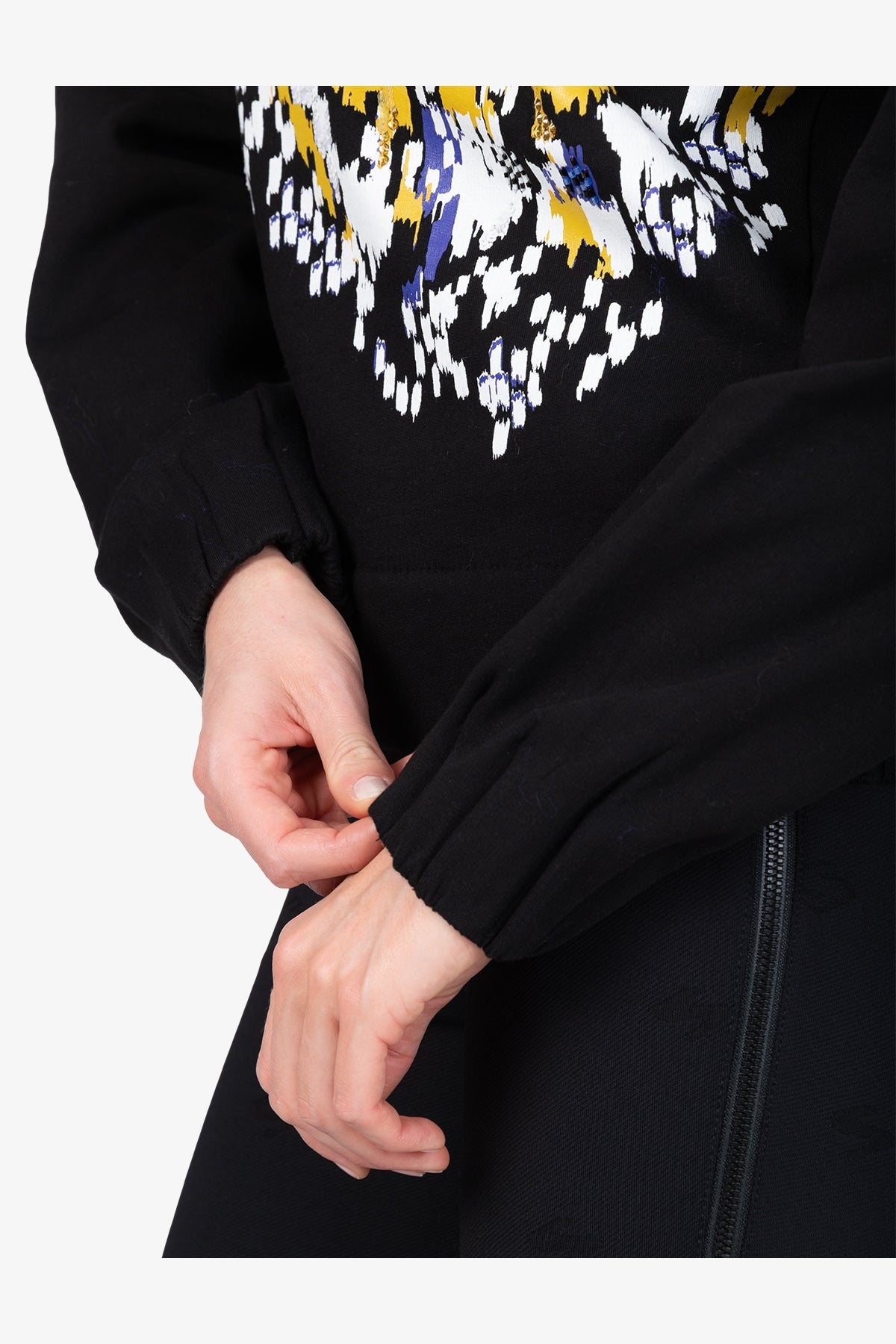 This casual sweatshirt features a large print that is skilfully decorated with high-quality beads and sequins. It combines stylish elegance with a relaxed look.