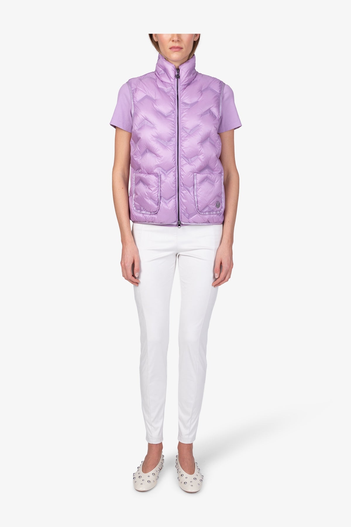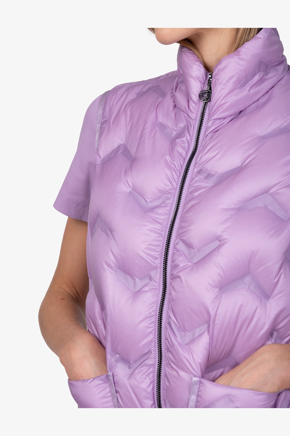 This lightweight down waistcoat combines warming function with an elegant look. The stand-up collar and graphic embossing give the design a modern touch, for a stylish appearance in any situation.