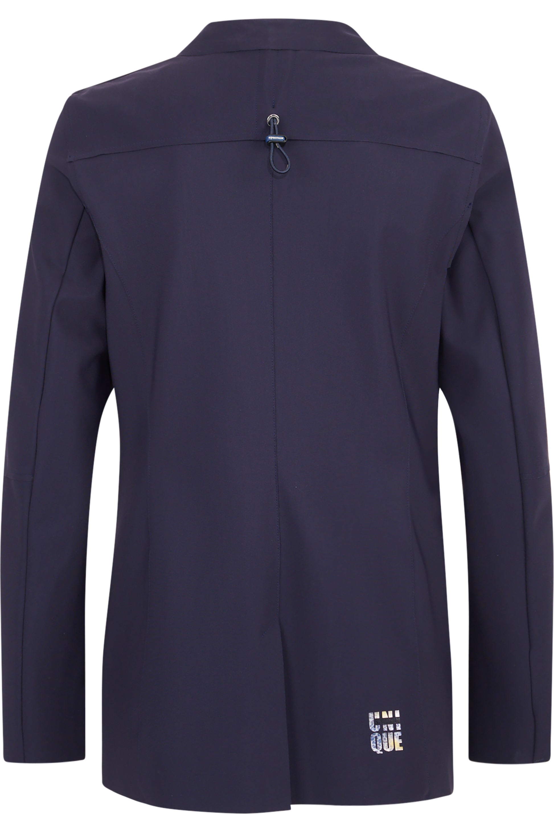 This long blazer made of sporty jersey fabric with casual topstitching and trendy open-edge processing is nevertheless elegant and feminine. A versatile garment that perfectly combines style and comfort.