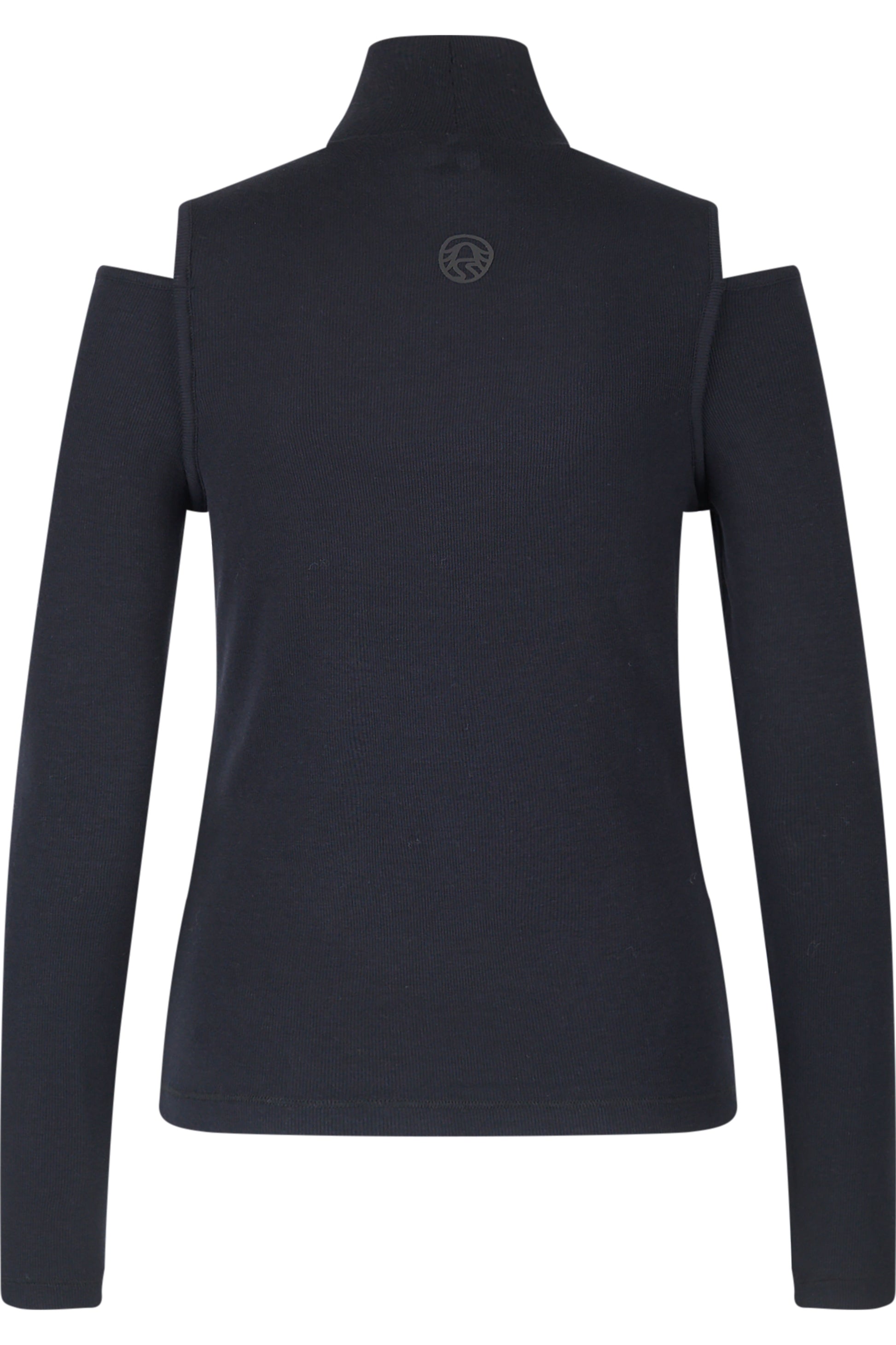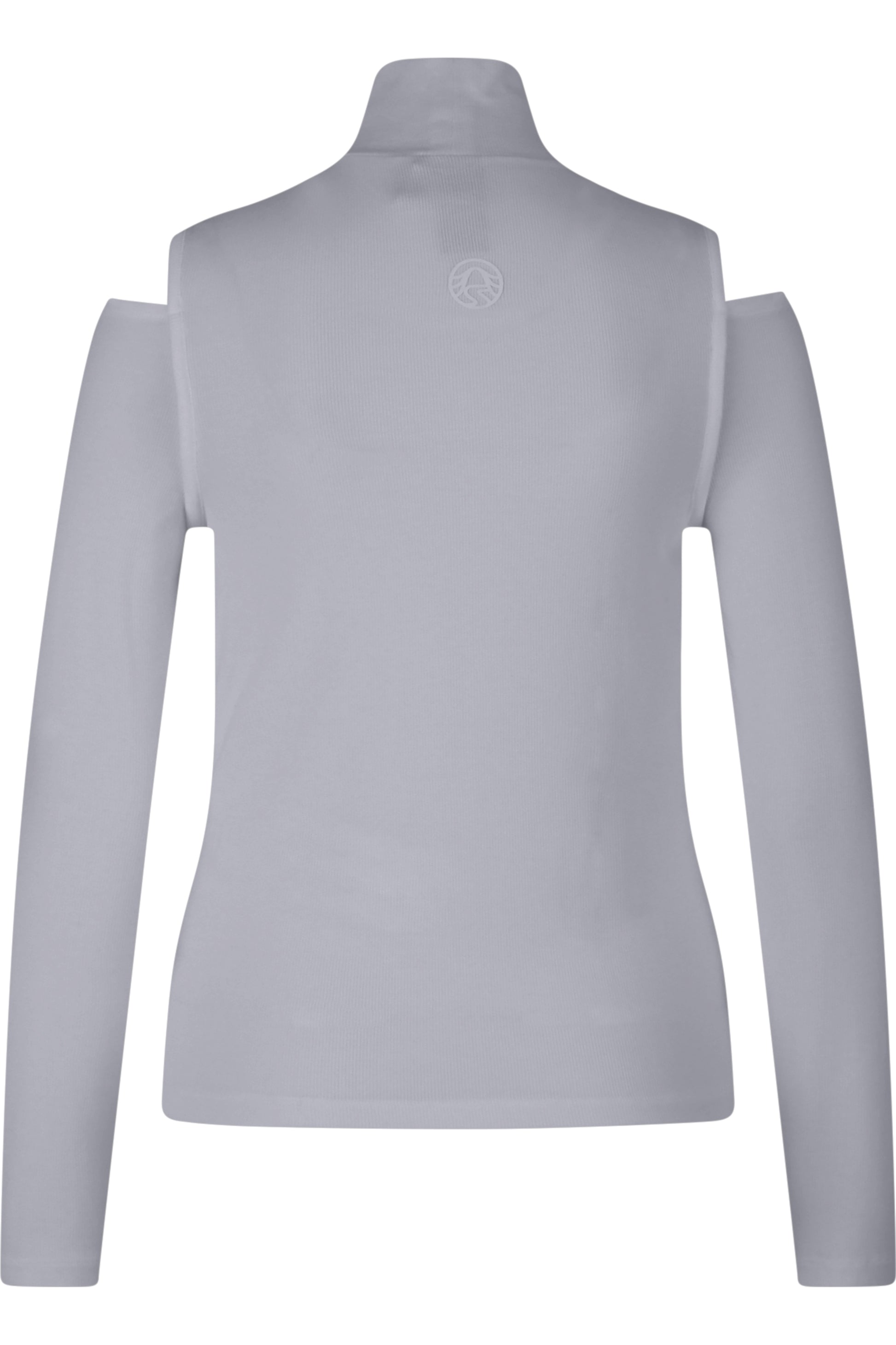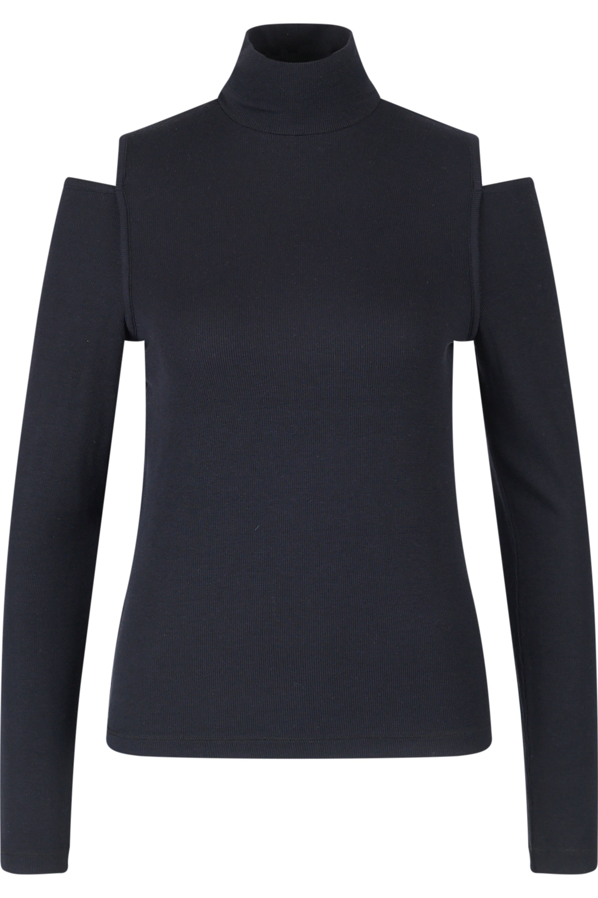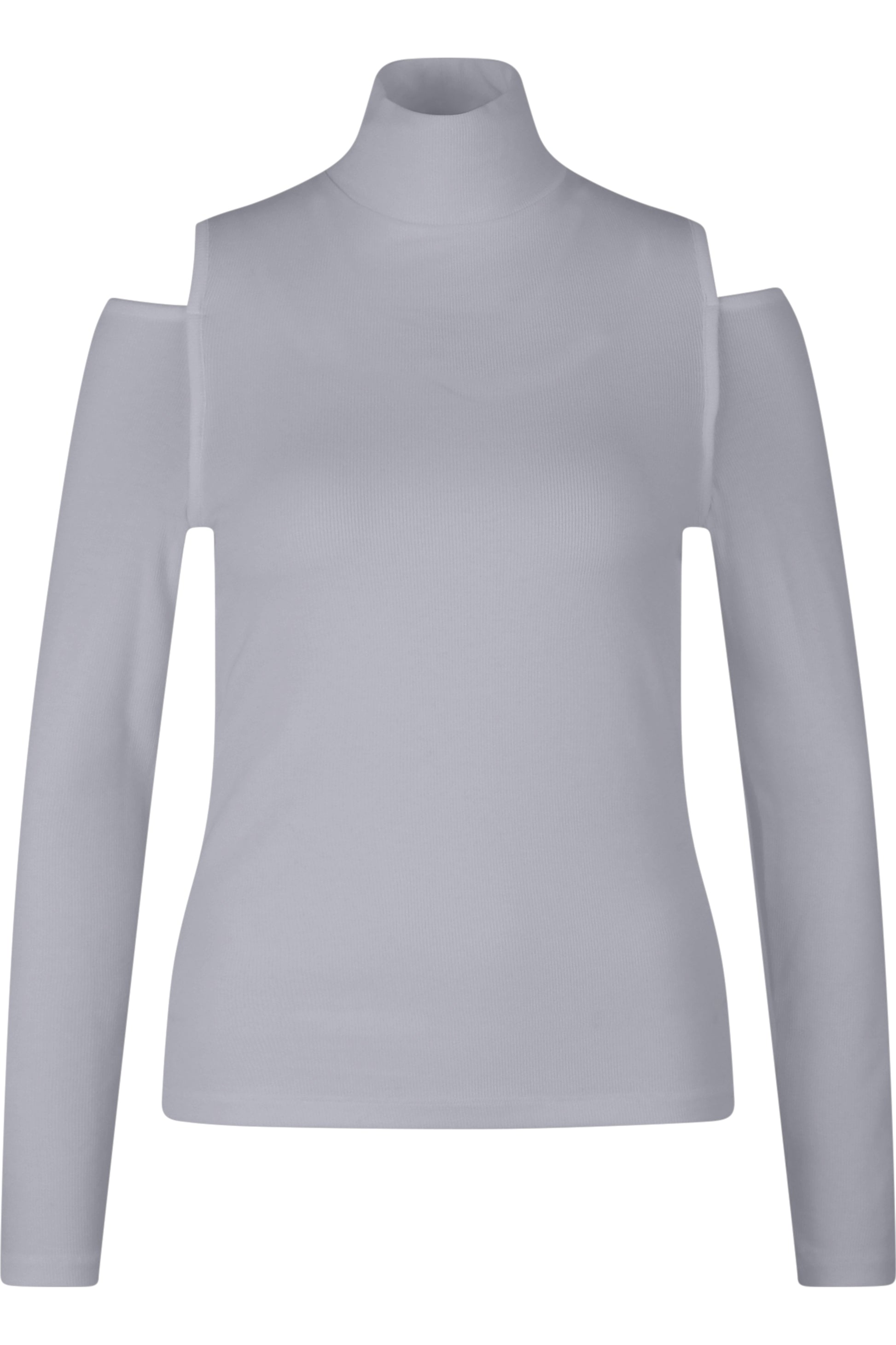 This long-sleeved shirt with sexy cut-outs on the shoulders combines elegance with a touch of sophistication. The close-fitting silhouette made from comfortable ribbed fabric ensures a perfect fit without constricting.