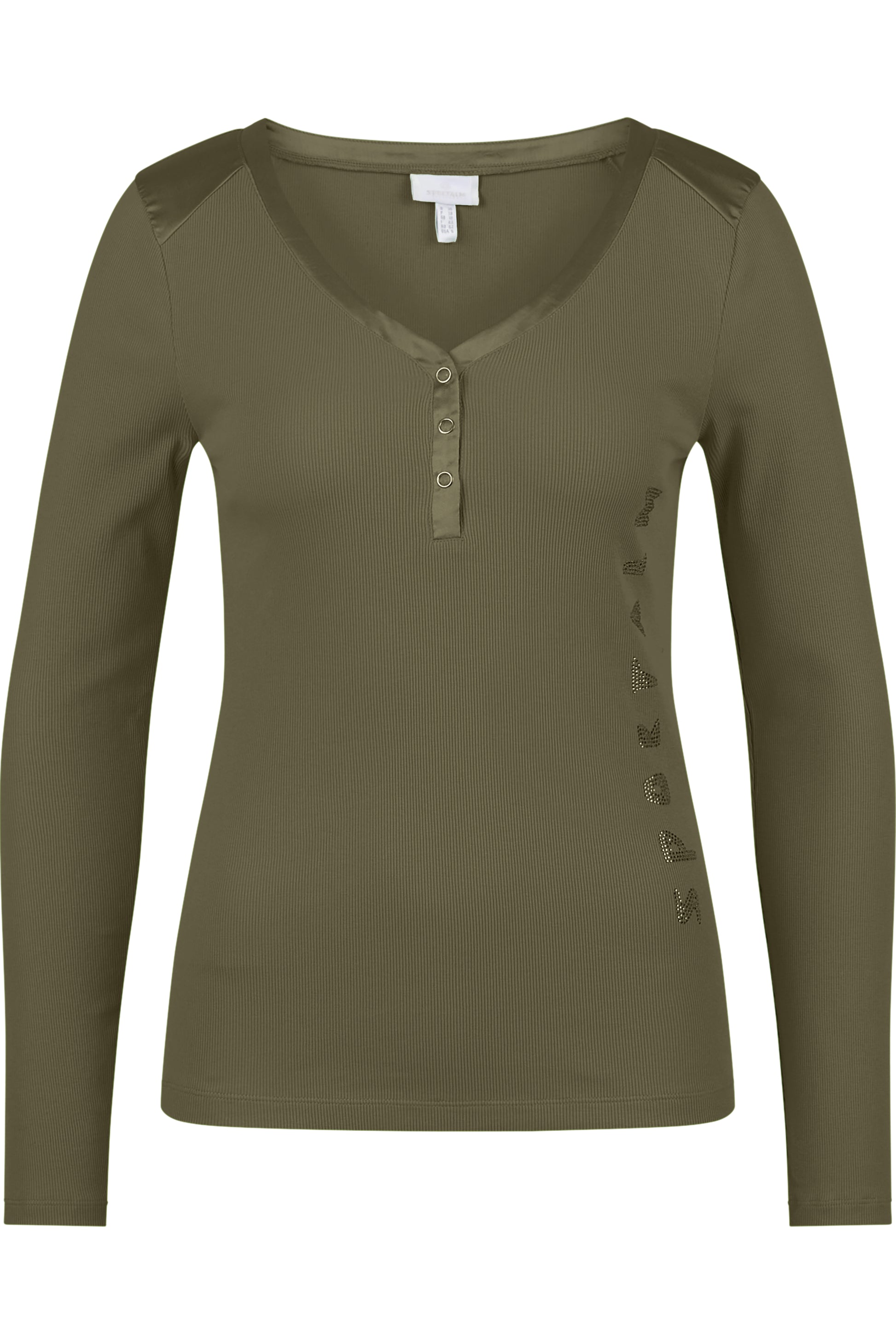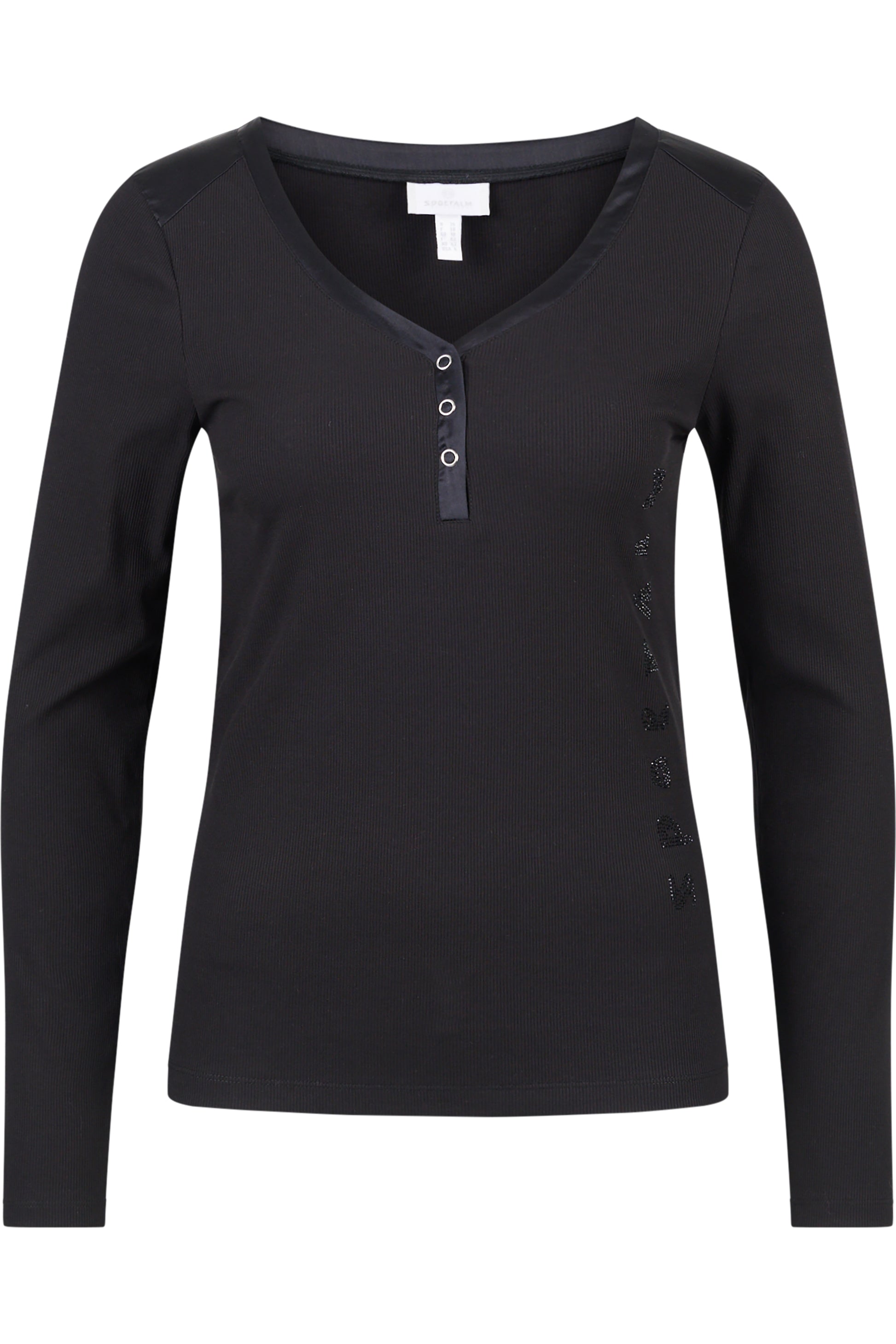 This stylish long-sleeved shirt impresses with shimmering details made from fine satin fabric. The shiny effect is picked up by the sparkling Sportalm lettering made of rhinestones and gives the shirt an elegant look.
