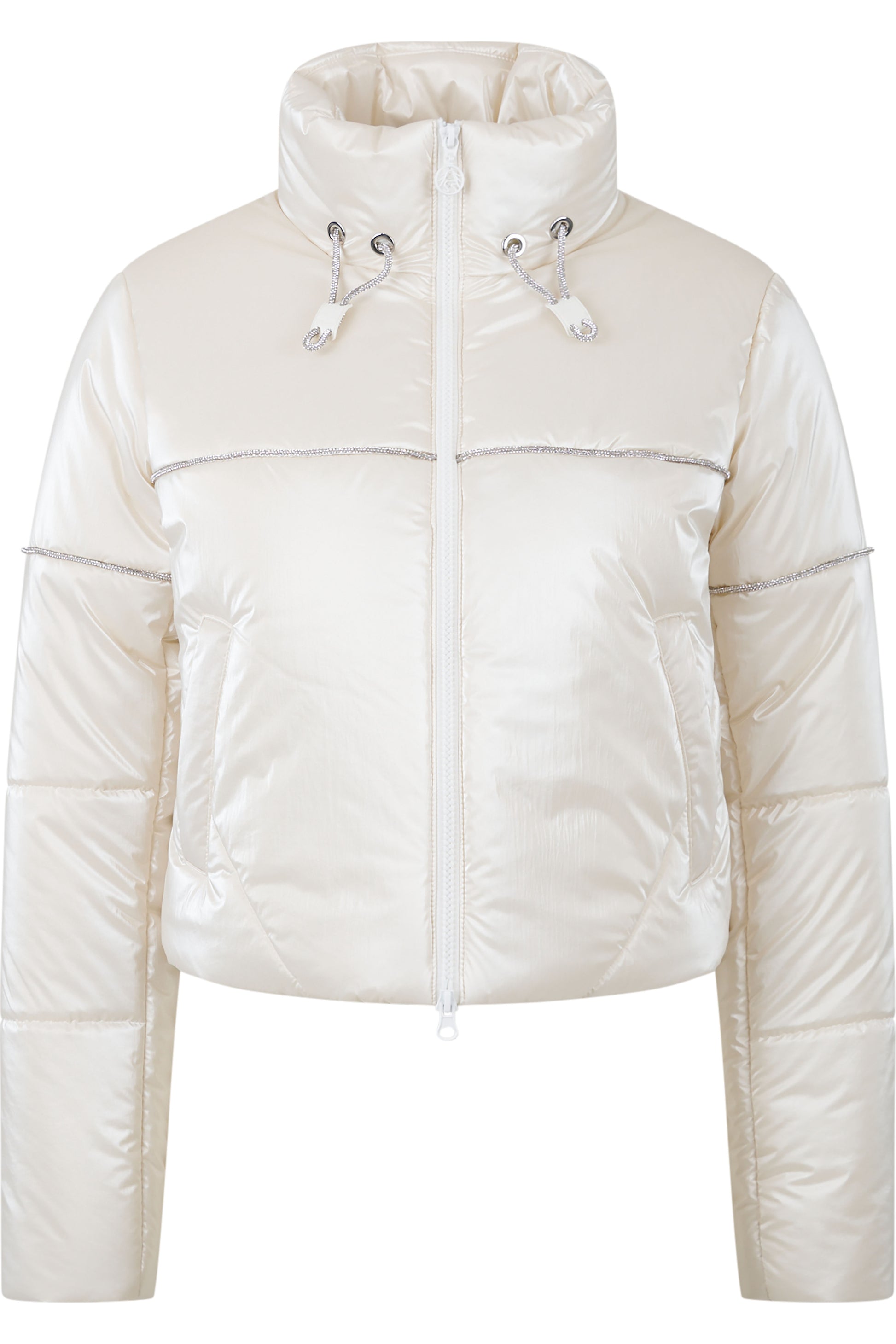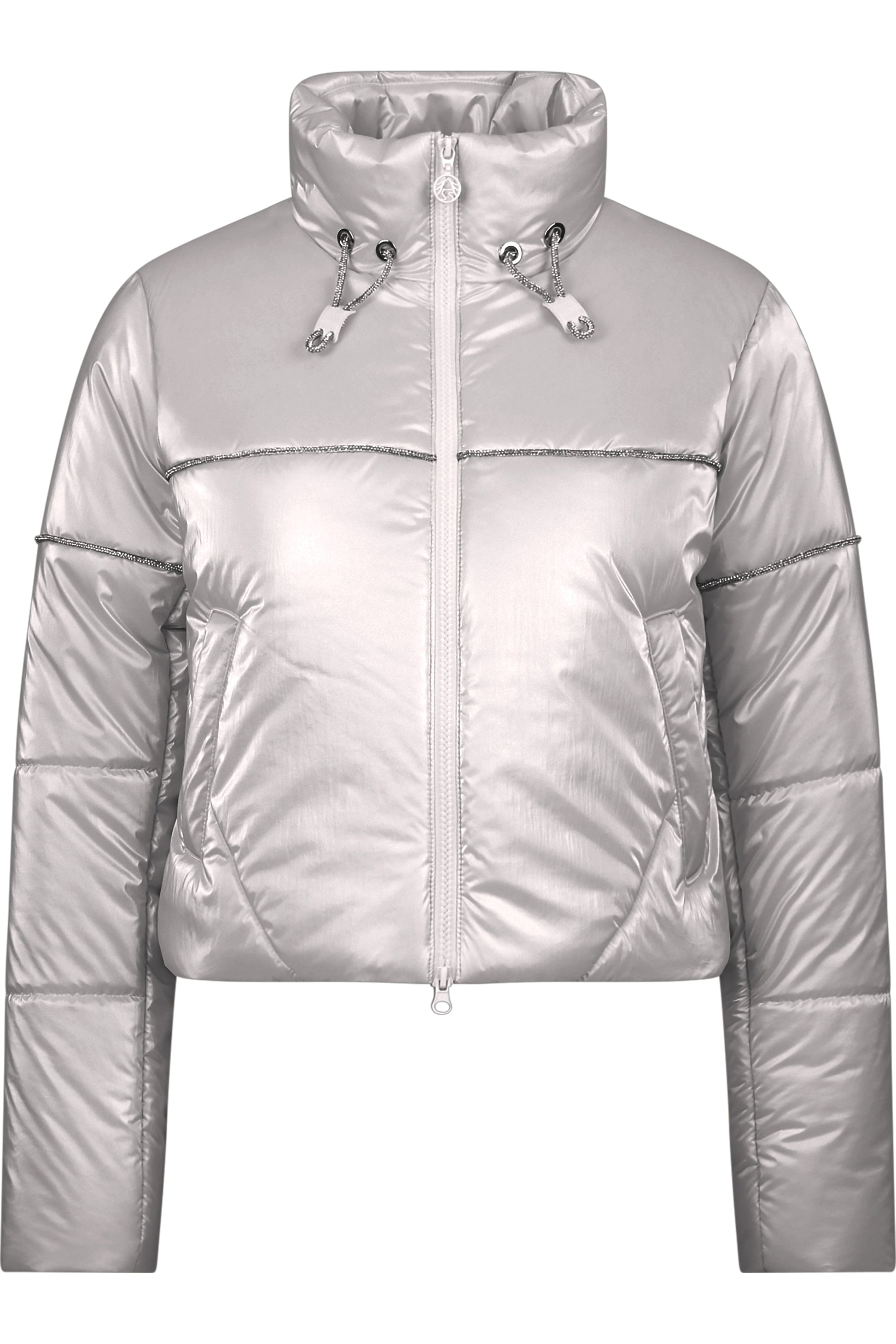 Fashionable, short outdoor quilted jacket with an elegant stand-up collar that combines functionality and style. The sparkling rhinestone piping adds a glamorous touch and makes the jacket a special highlight.