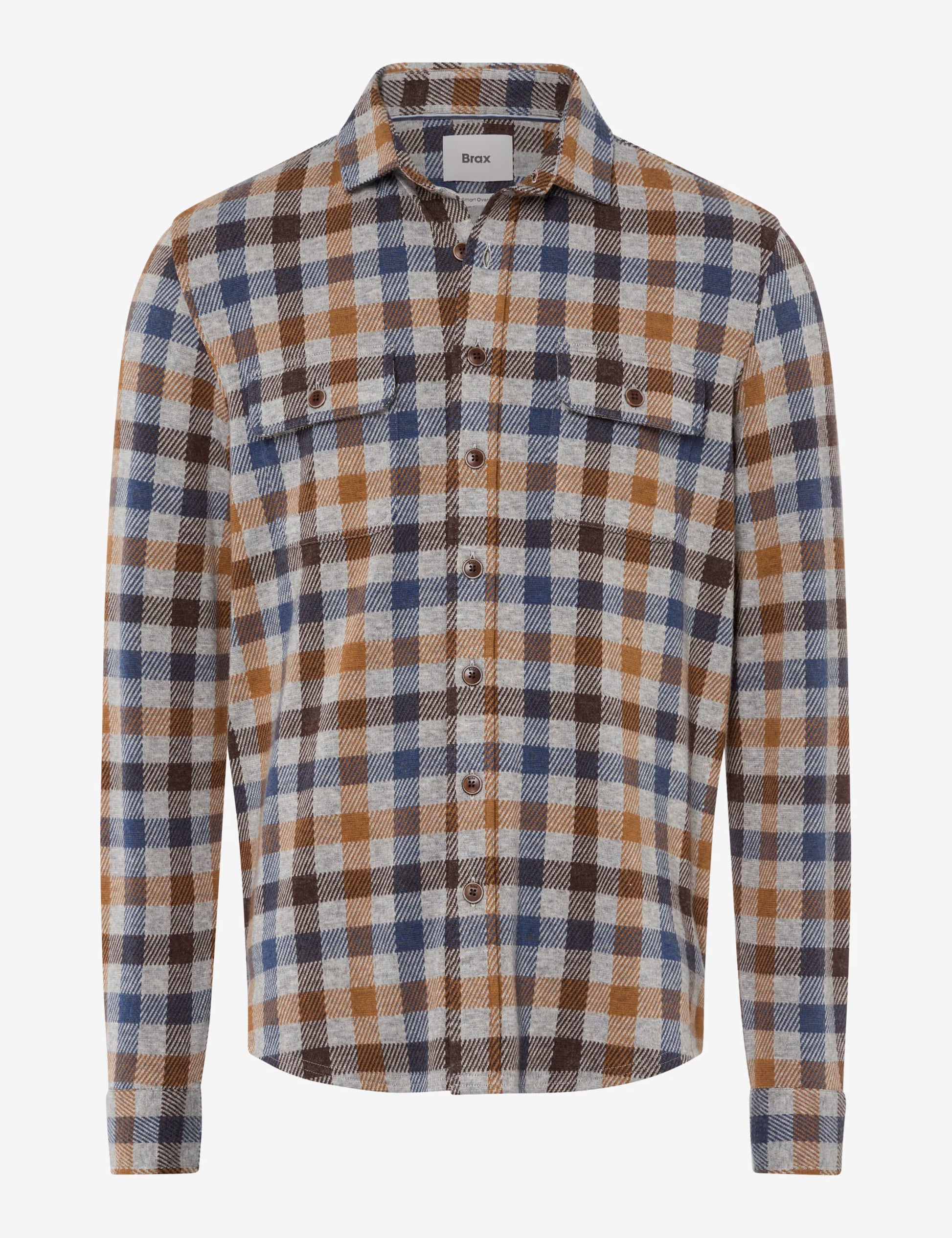 With its straight silhouette and classic spread collar, it combines modern design with timeless elegance. The button placket makes it versatile to wear, while the patch chest pockets with flaps and buttons not only serve a practical purpose but also add a stylish accent. The checkered pattern emphasizes the trendy look, making this model a true highlight that enhances any winter outfit fashionably.