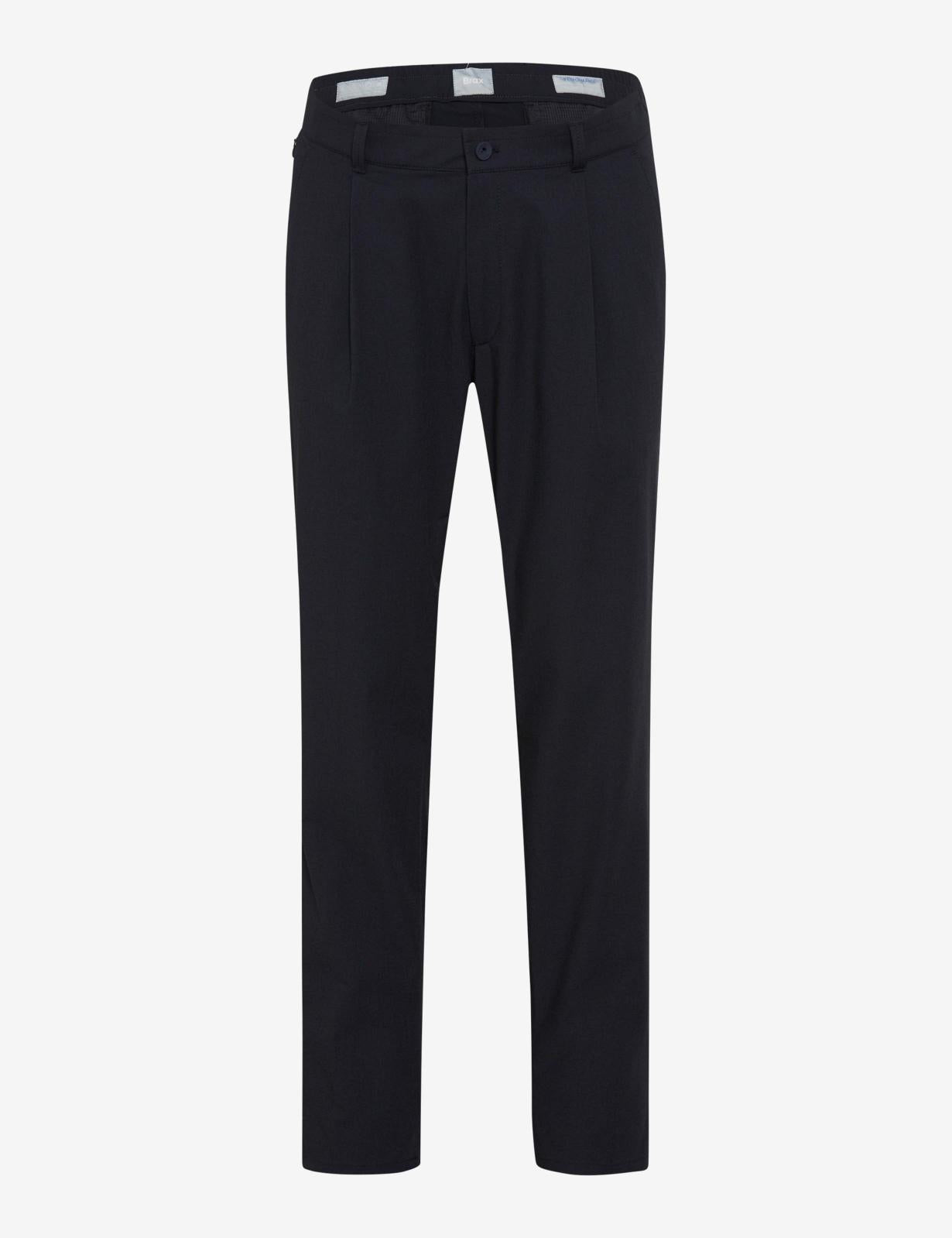 The deeper crotch design adds an extra touch of casualness to the appearance. French pockets and stylish piped pockets complete the design, which is interpreted very fashionably with the currently trendy pleats.