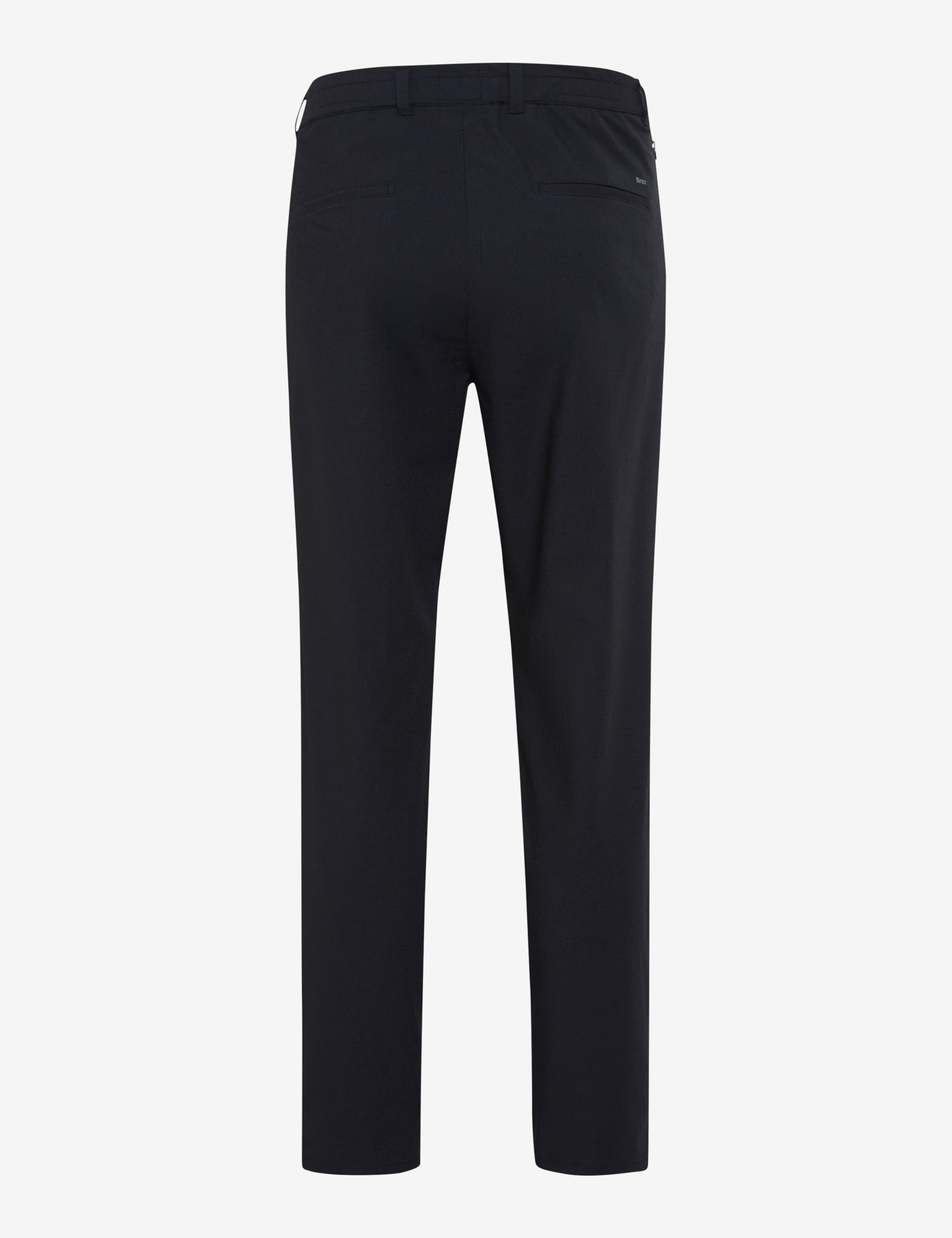 The fashionable statement of the trousers is ideally complemented by the functional material: poplin provides a smooth surface and a pleasantly lightweight feel. The polyester-viscose blend impresses with its easy-care properties and soft texture. The elastic performance quality supports both freedom of movement and shape retention.