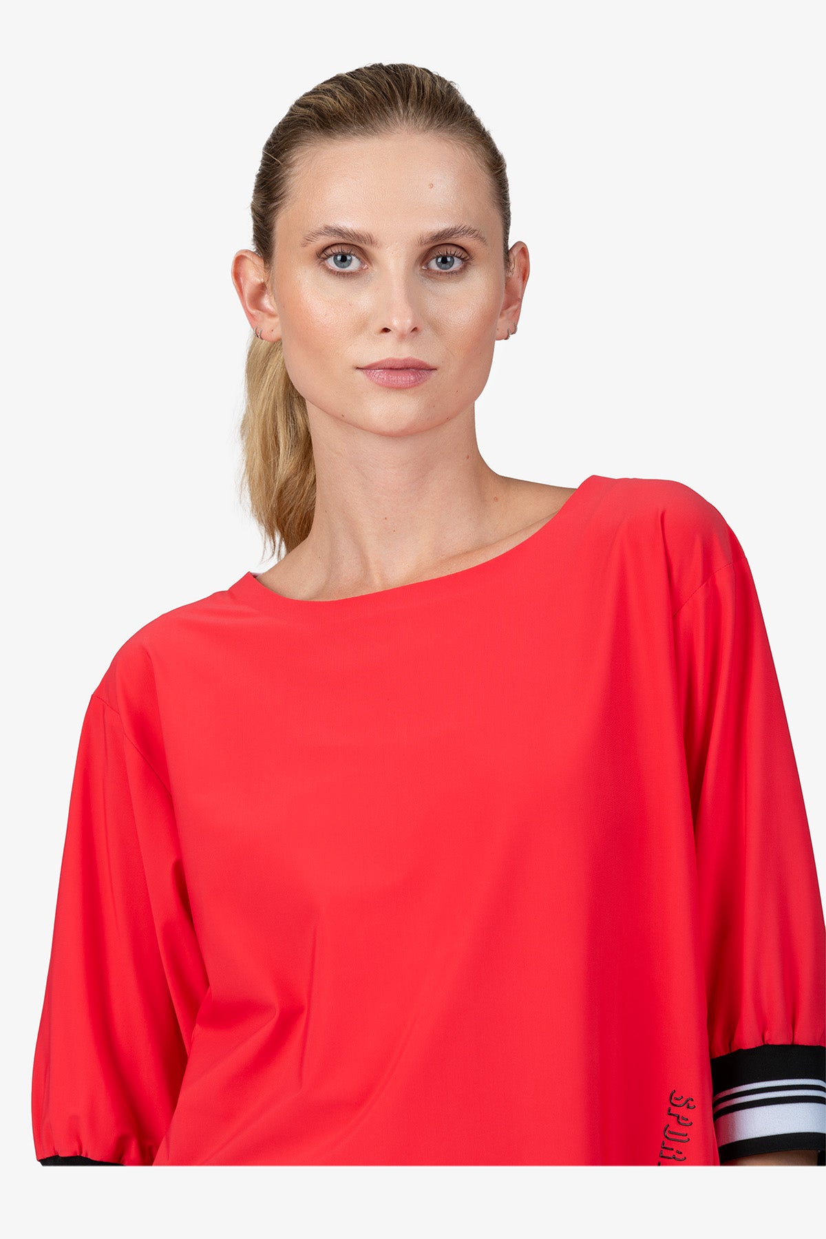 Highlights: raw-edged finish, small slits in the forward side seam, Sportalm wording transfer on the front hem