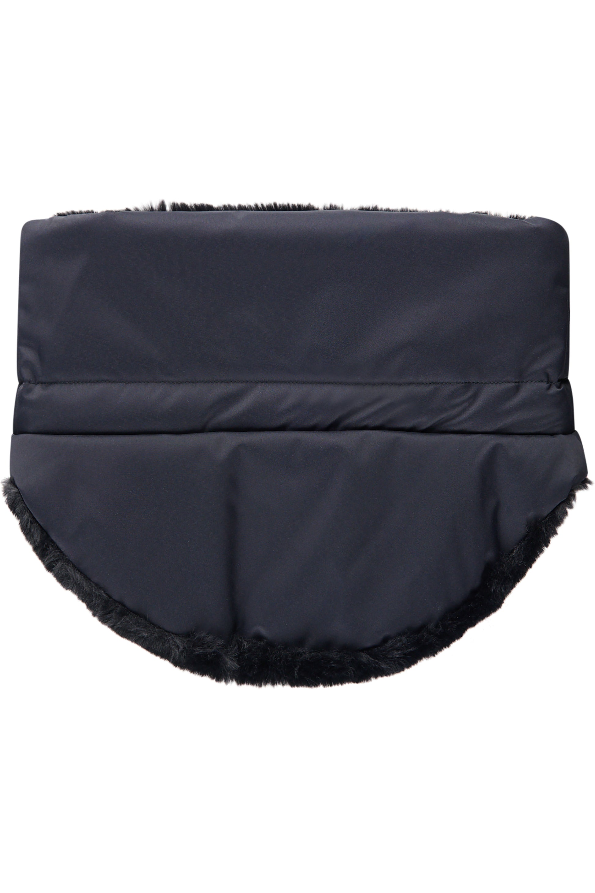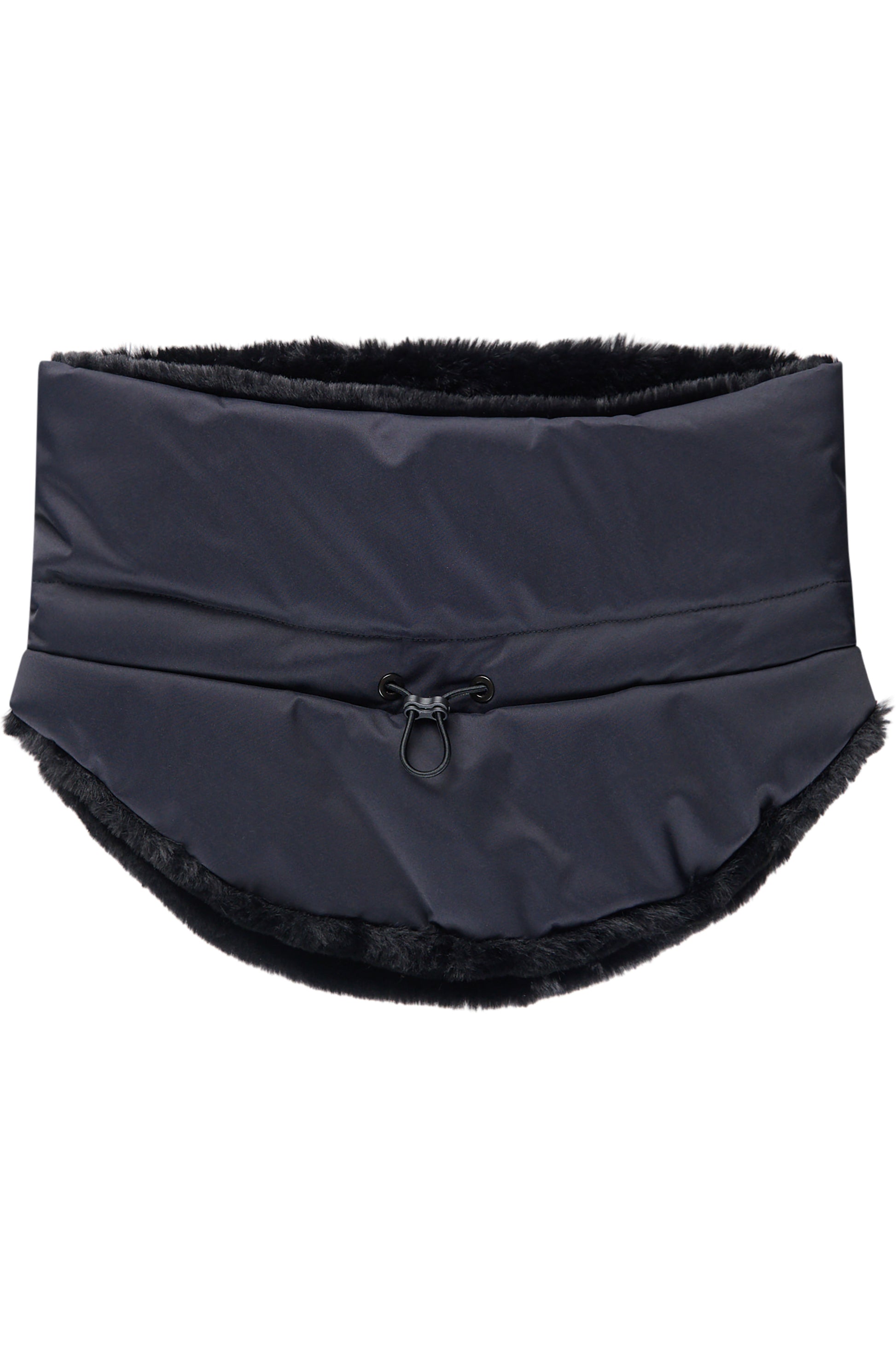 A cozy scarf that's perfect for cold winter days, featuring a sporty ski fabric on the outside and warm plush lining on the inside.
