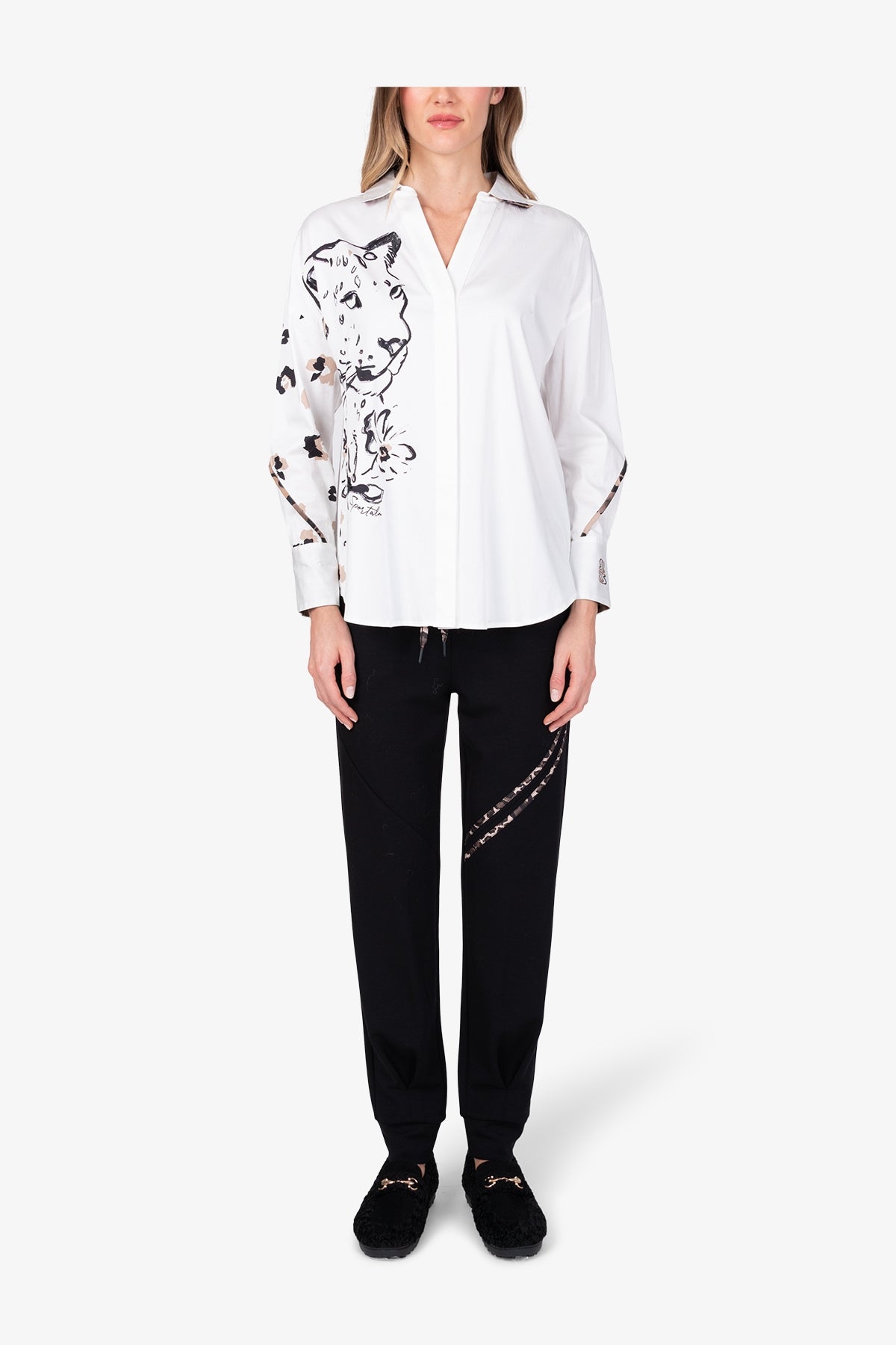 This shirt blouse impresses with its sophisticated cut and elegant details in a trendy leopard design. An eye-catching leopard print on the right front section adds a fashionable accent and gives the look personality.