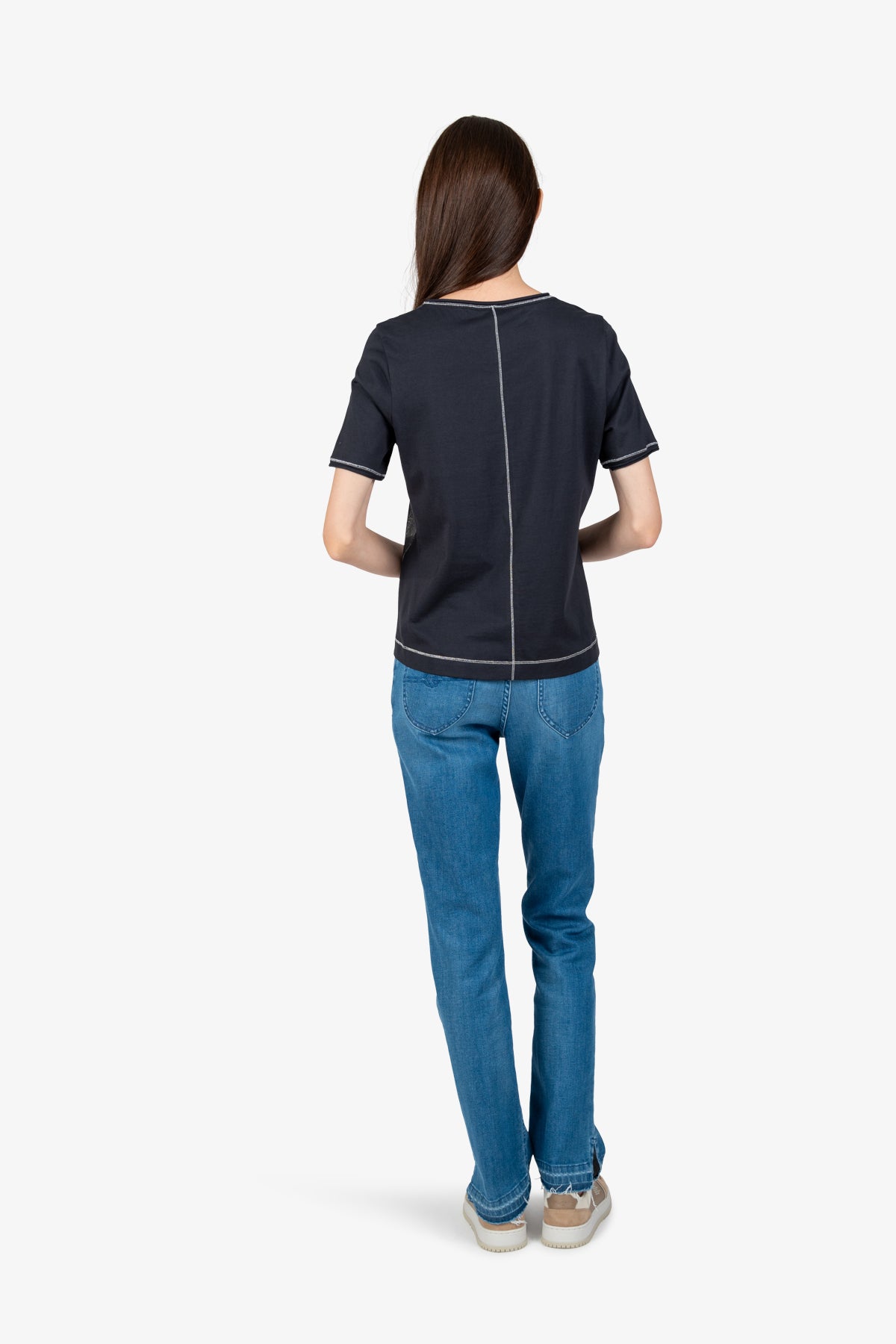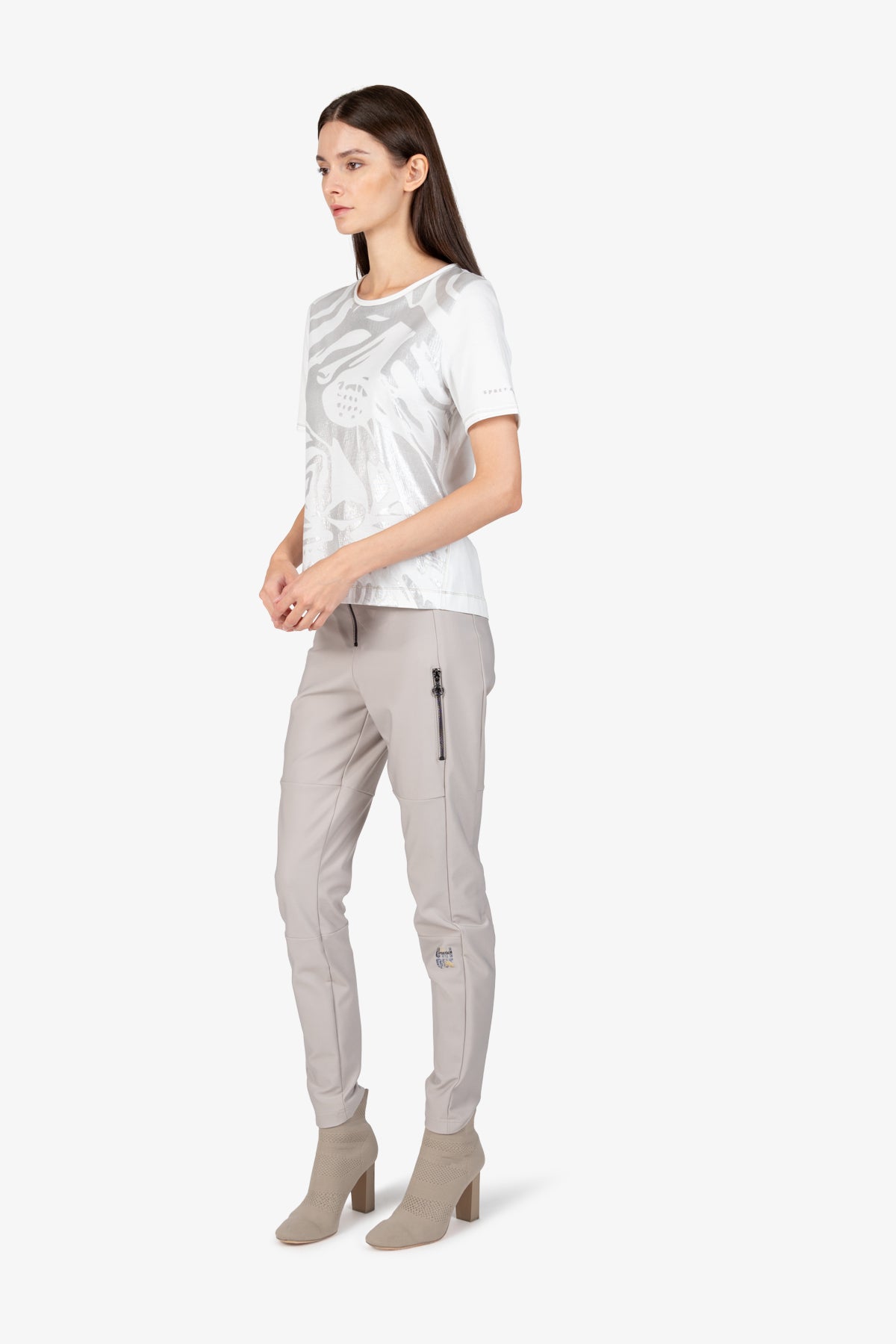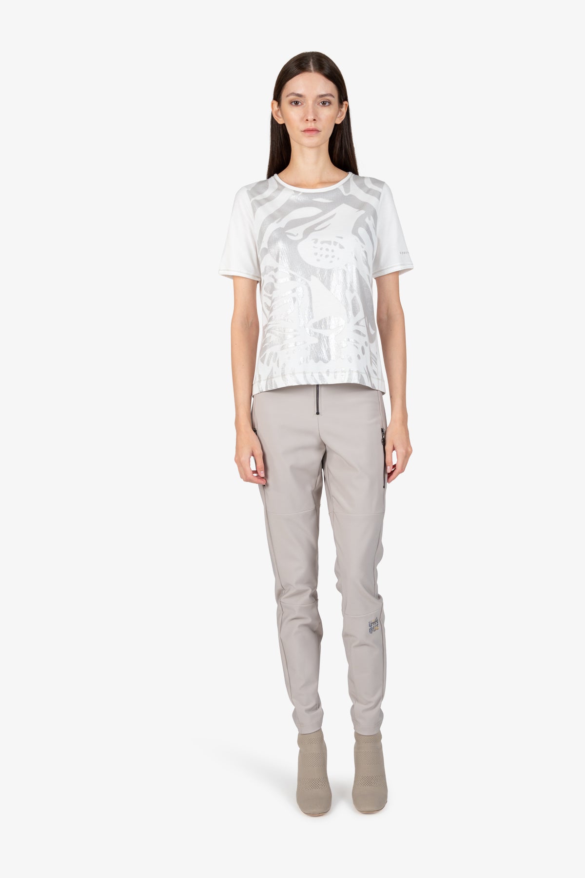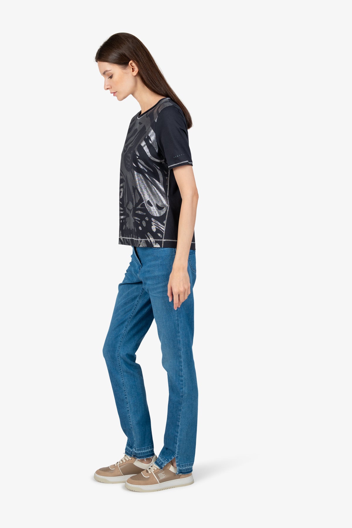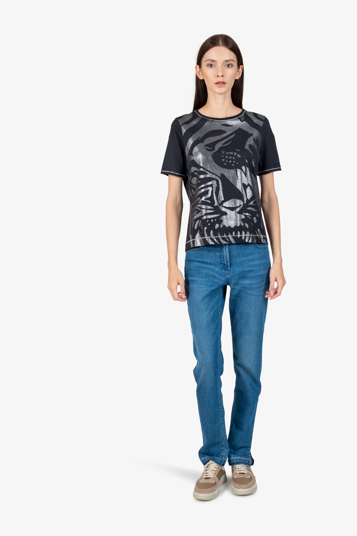 This short-sleeved shirt with large foil print flatters the figure and suits every woman. Its cut and design are versatile and timeless, perfect for a range of occasions.