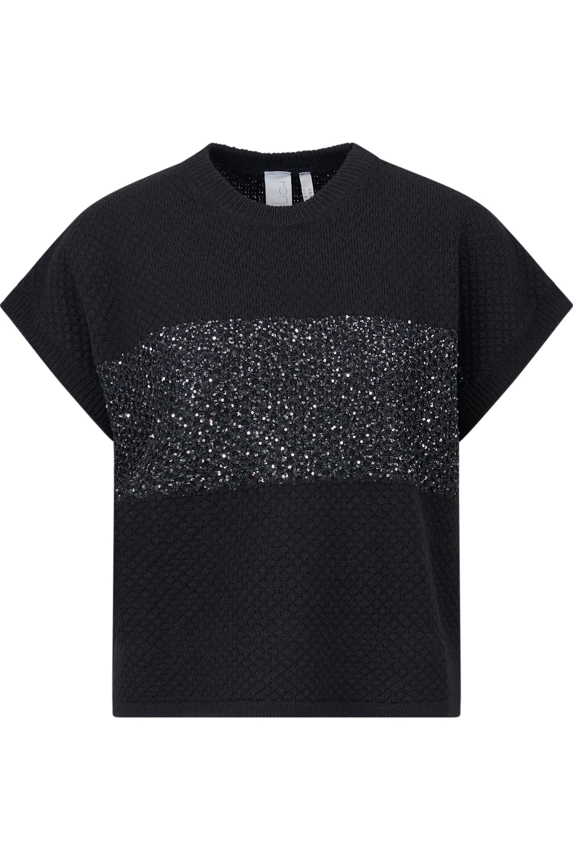 This elegant slipover impresses with its trendy, boxy silhouette and sparkling insert on the front, which is decorated with shimmering sequins. A stylish highlight for special occasions!