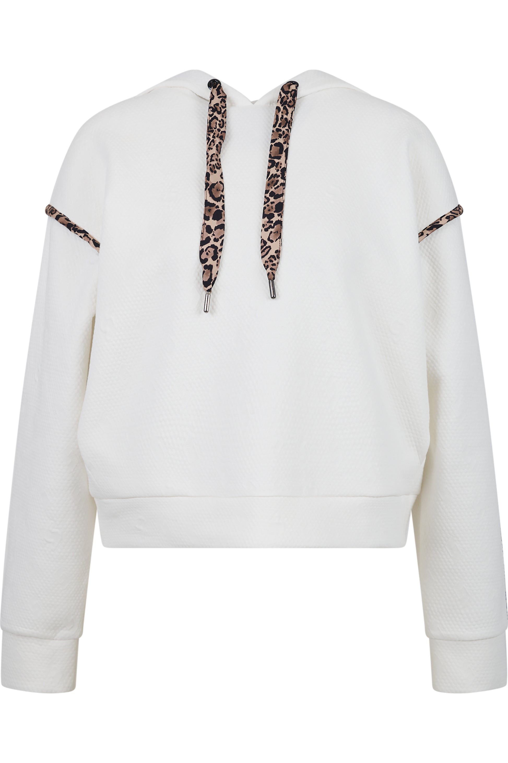 This casual sweatshirt features a graphic jacquard design and a generous hood. It combines relaxed comfort with an elegant look and is perfect for versatile looks.