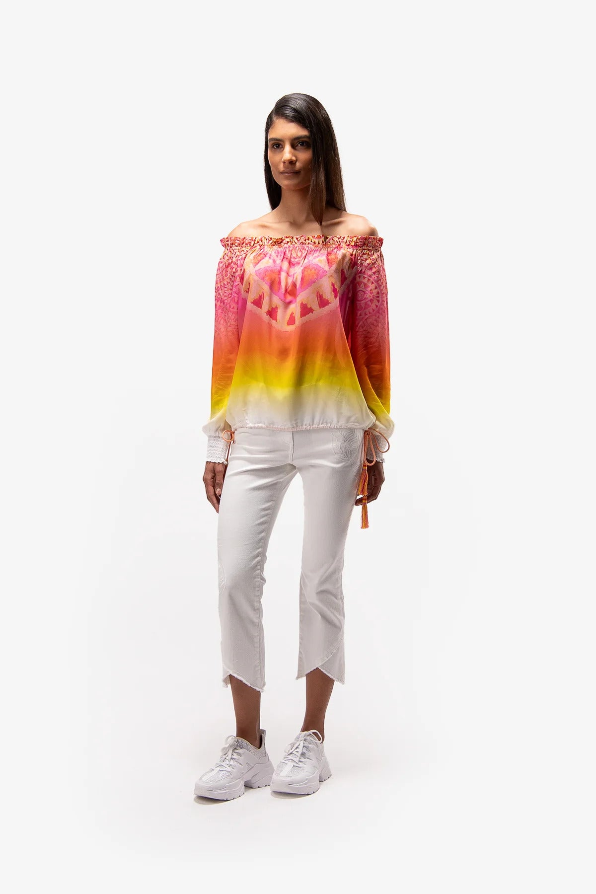特殊的下擺處理,帶有時尚的開衩細節和流蘇下擺,具有做舊的外觀。