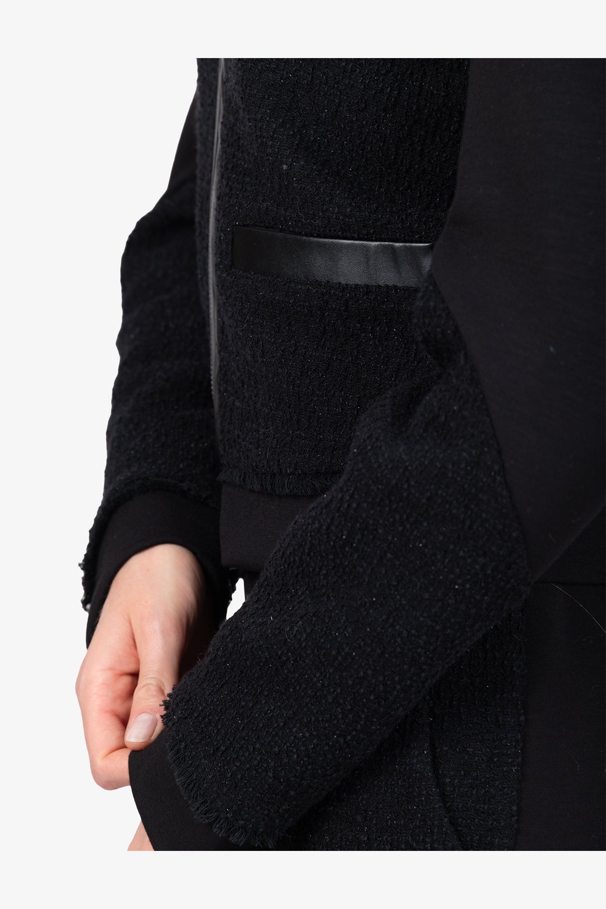這款運動夾克採用優質圈呢面料製成,融合了時尚的仿皮細節和精緻的流蘇元素。優雅與現代元素的完美融合,使其成為百搭又時尚的亮點。