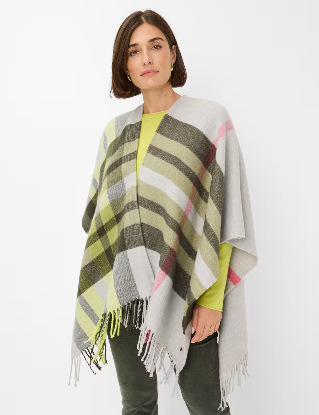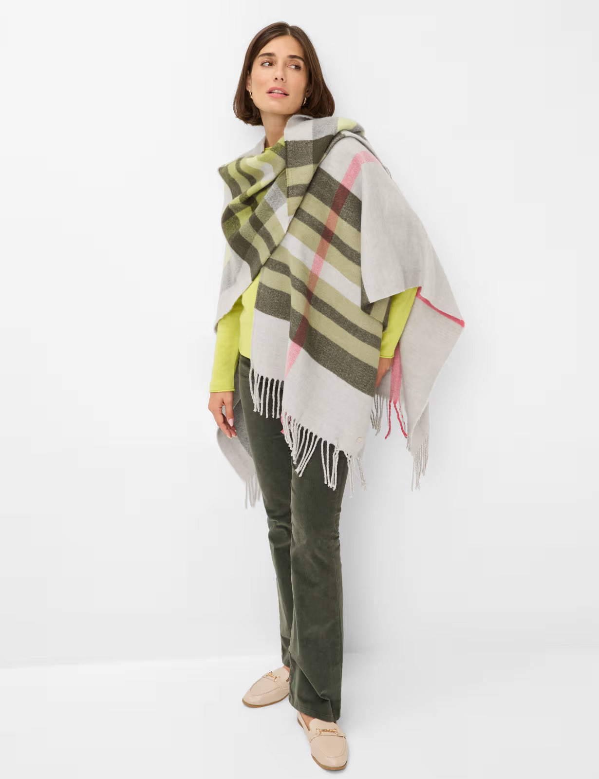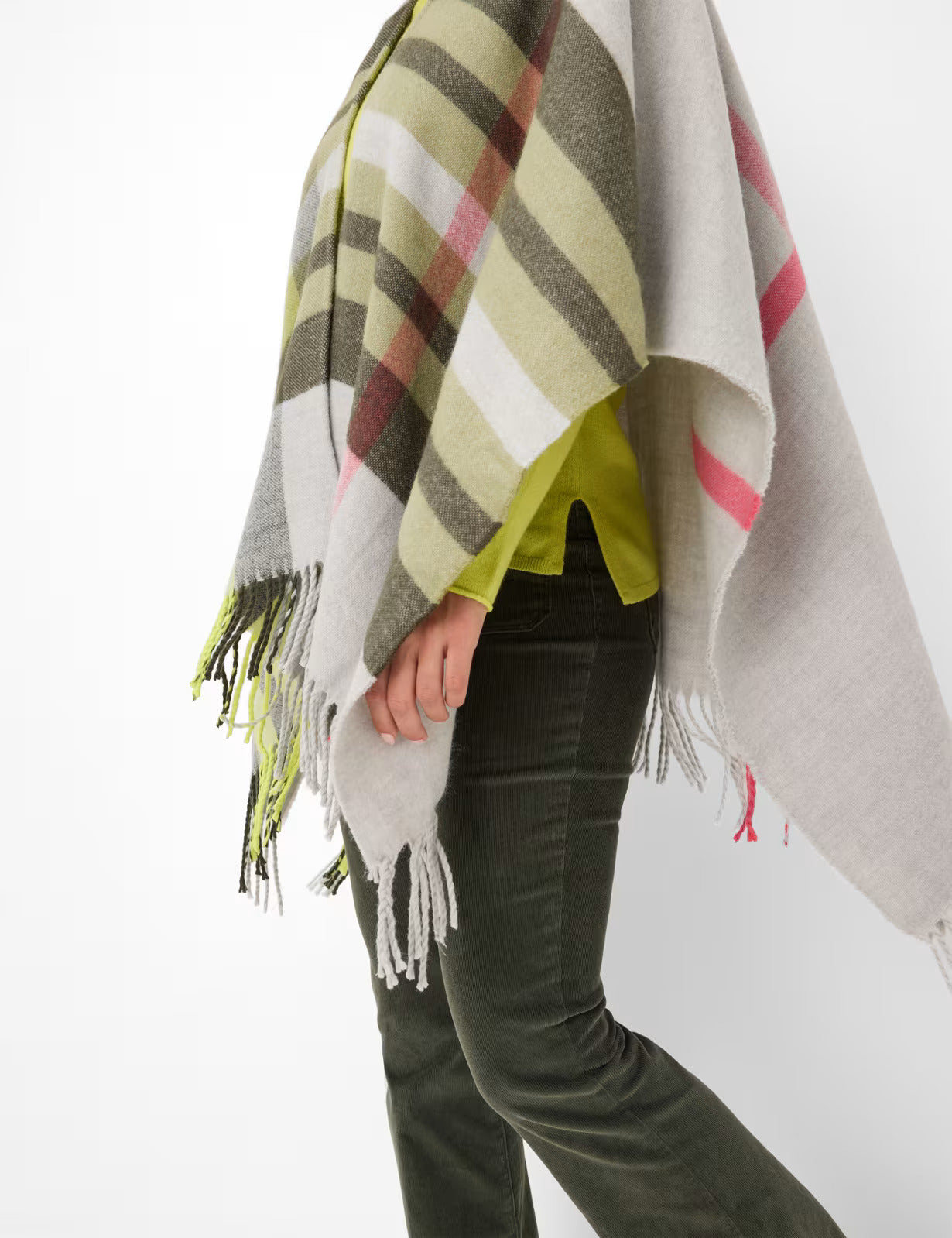 這款 Cosy & Colorful 披肩是一款令人驚豔的配件,其富有表現力的地毯圖案為寒冷的季節增添了一抹清新色彩。 V 領的開放式輪廓輕柔地垂落在肩部,下擺的迷人流蘇則為整體設計增添了一絲休閒的波西米亞風情。