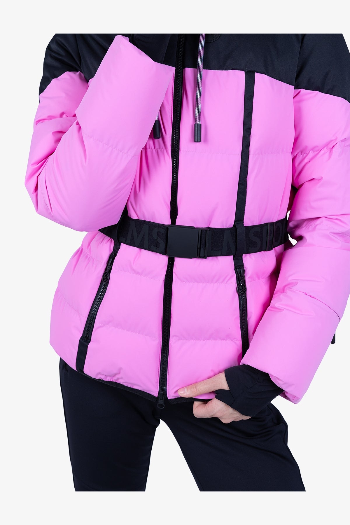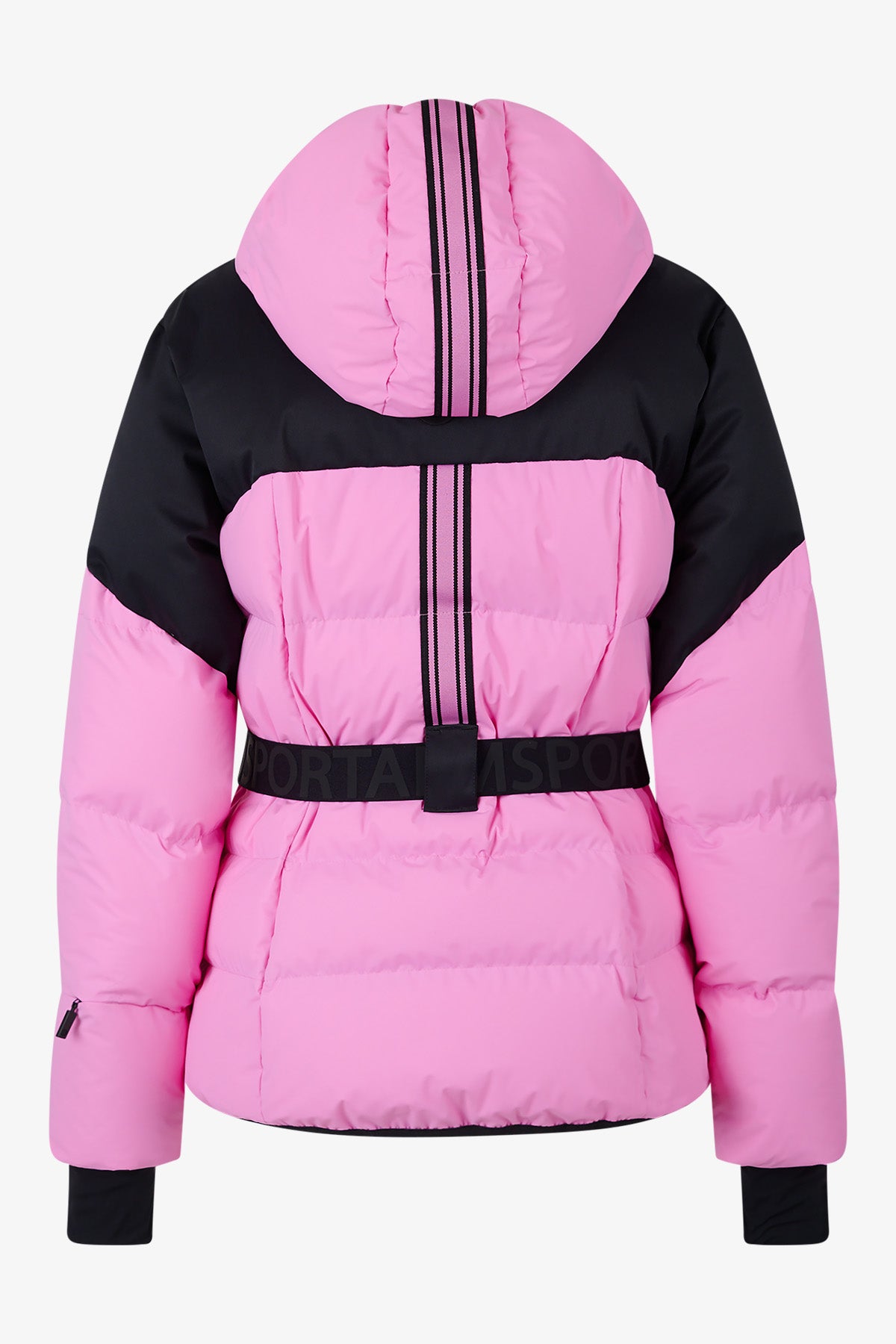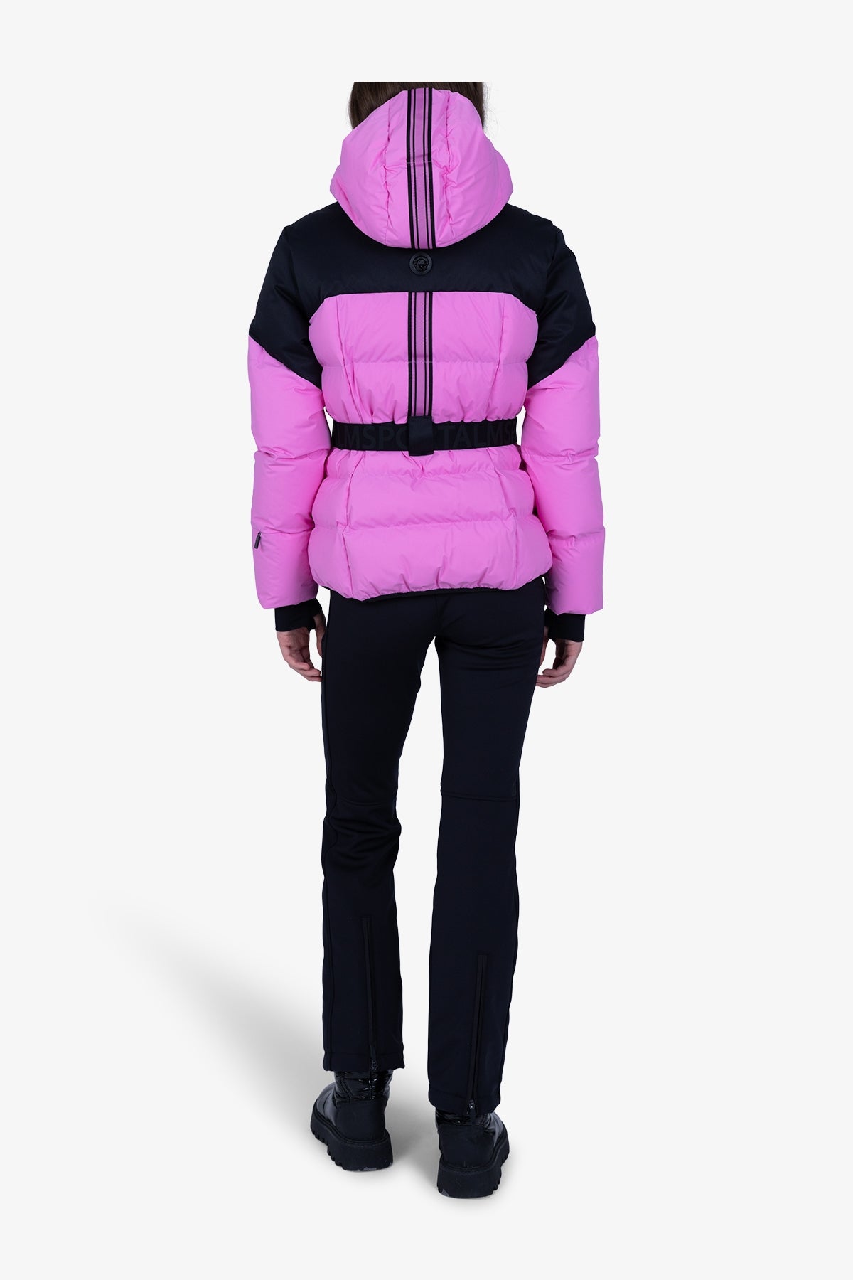 抽繩連帽撞色拼接羽絨滑雪夾克