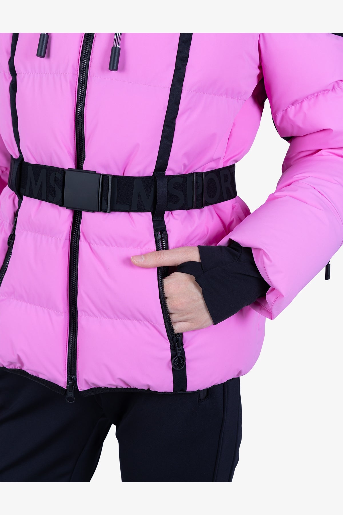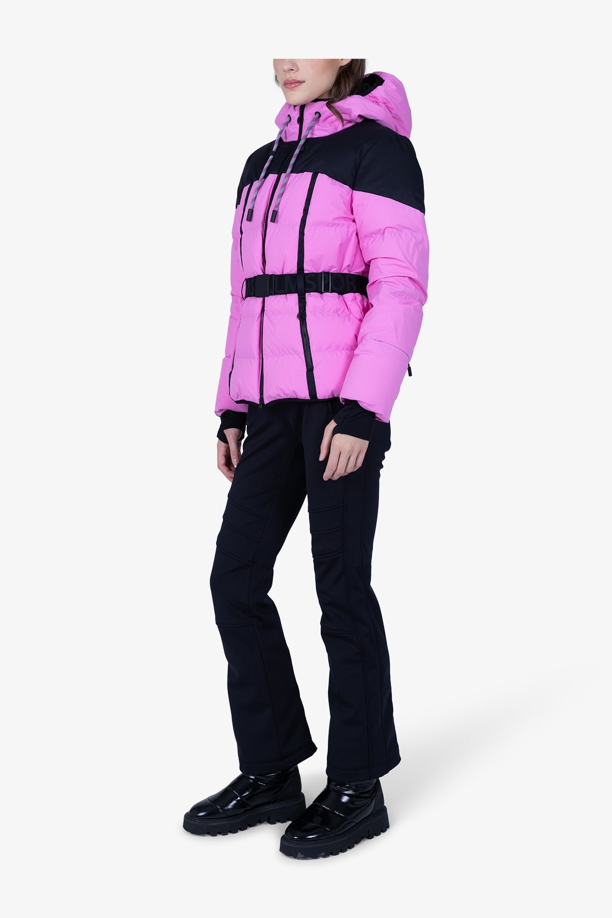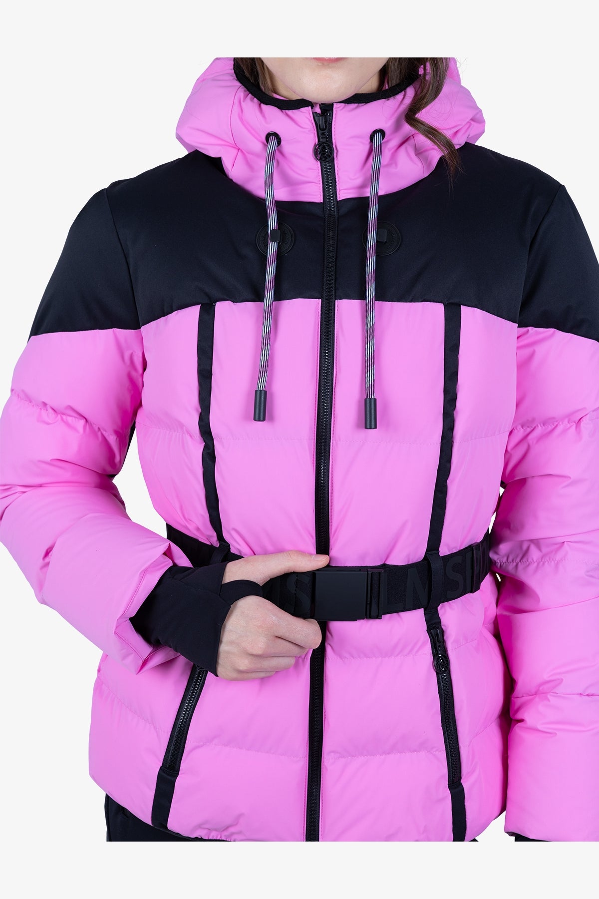 抽繩連帽撞色拼接羽絨滑雪夾克