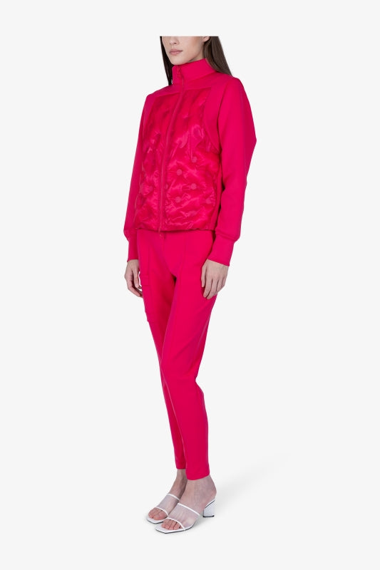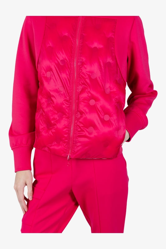 這款雙面外套採用現代立領設計,色彩漸變鮮豔,並帶有水彩暈染效果。兩面均可穿著,可搭配出各種運動時尚的造型。