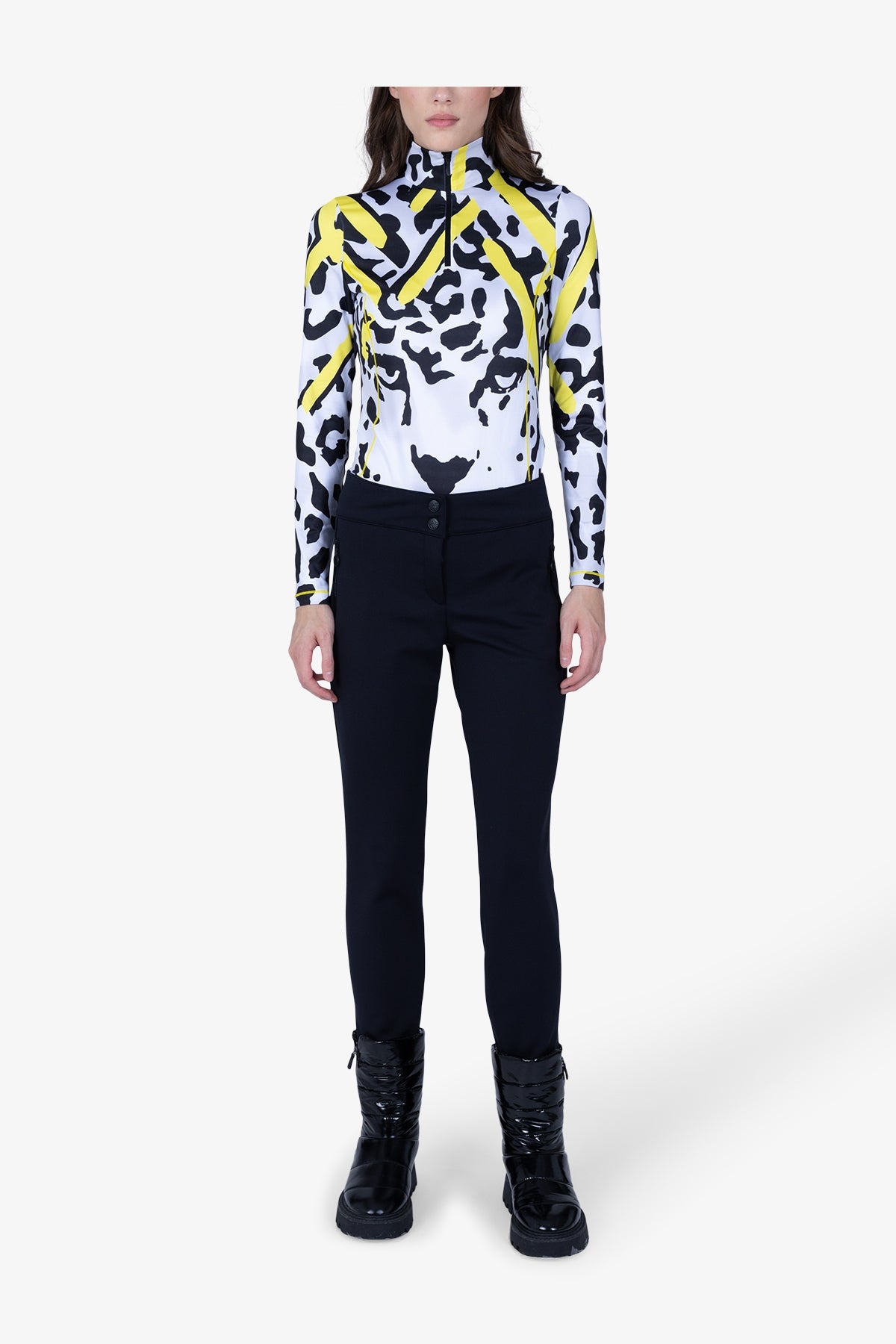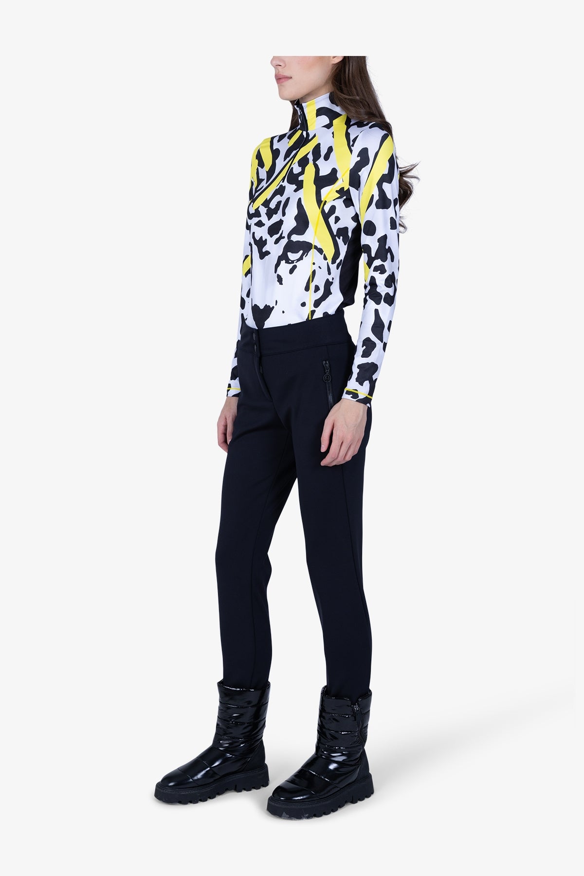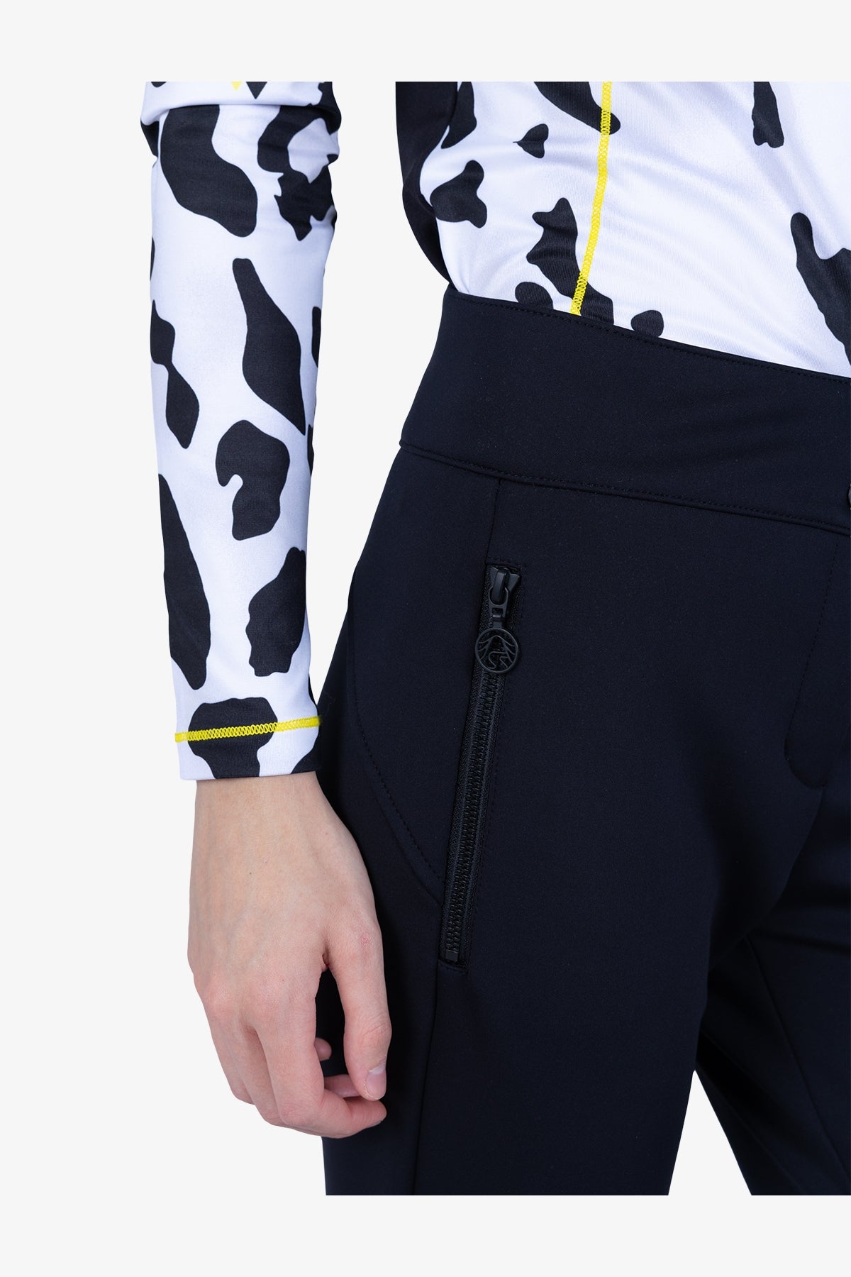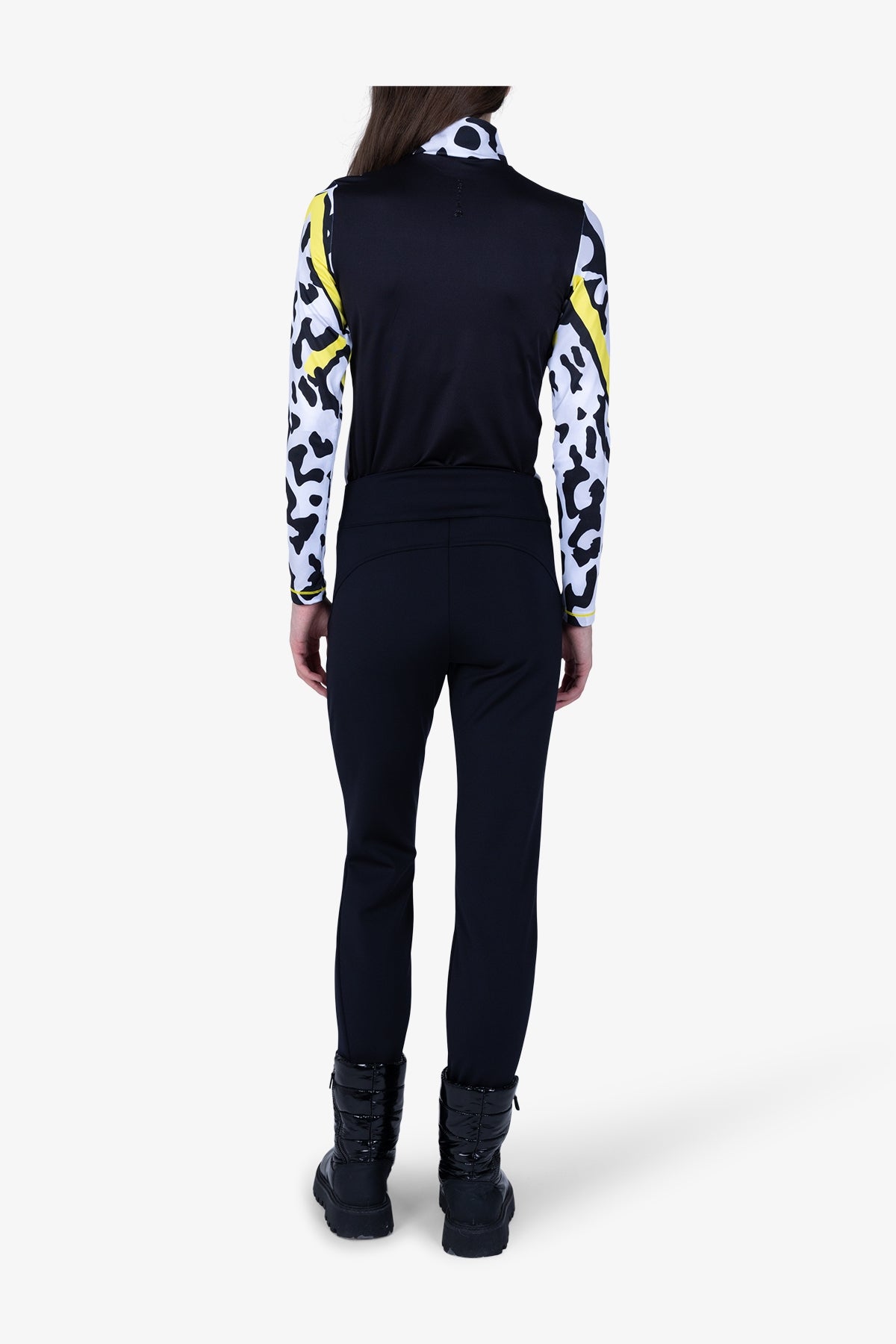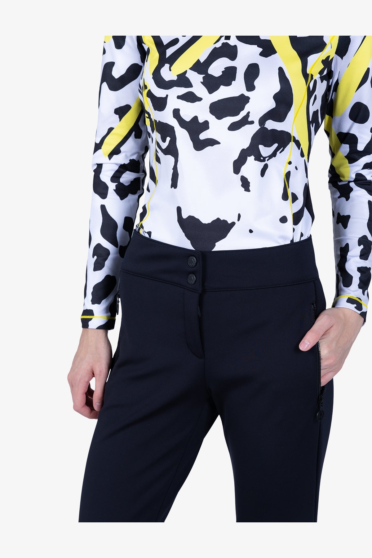 腰帶:前中部採用隱形拉鍊、按扣和腰帶鉤,後部為高腰設計。褲型:修身褲型,褲腳處有鬆緊帶。內縫長(36 碼):74.0 厘米