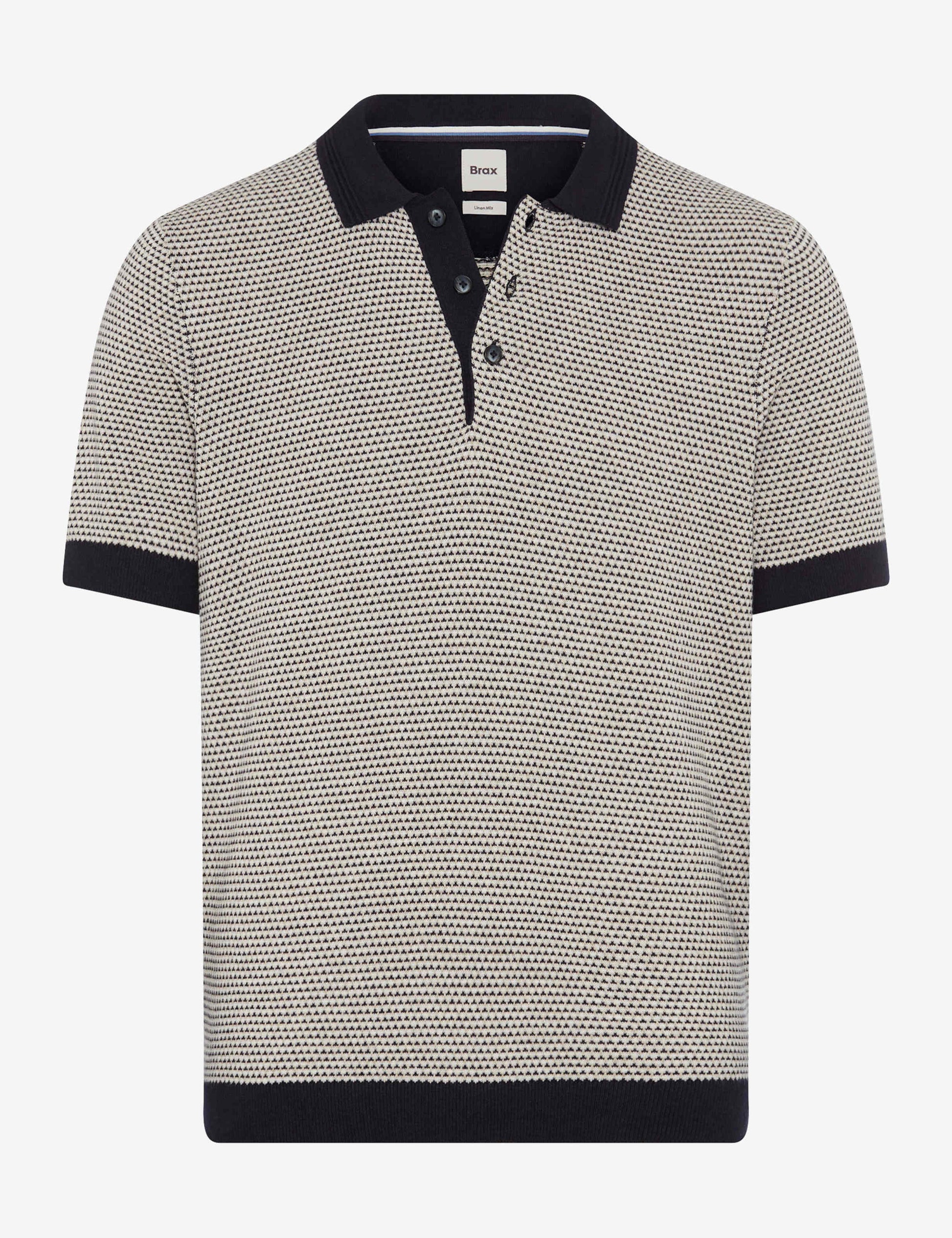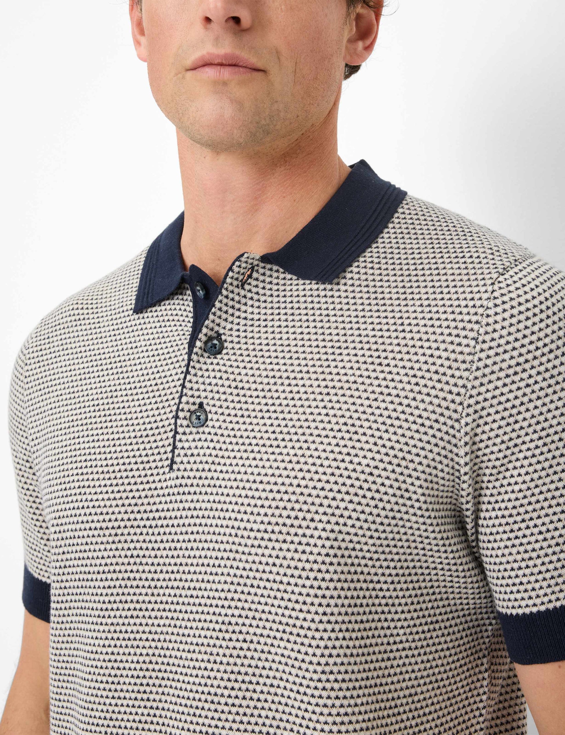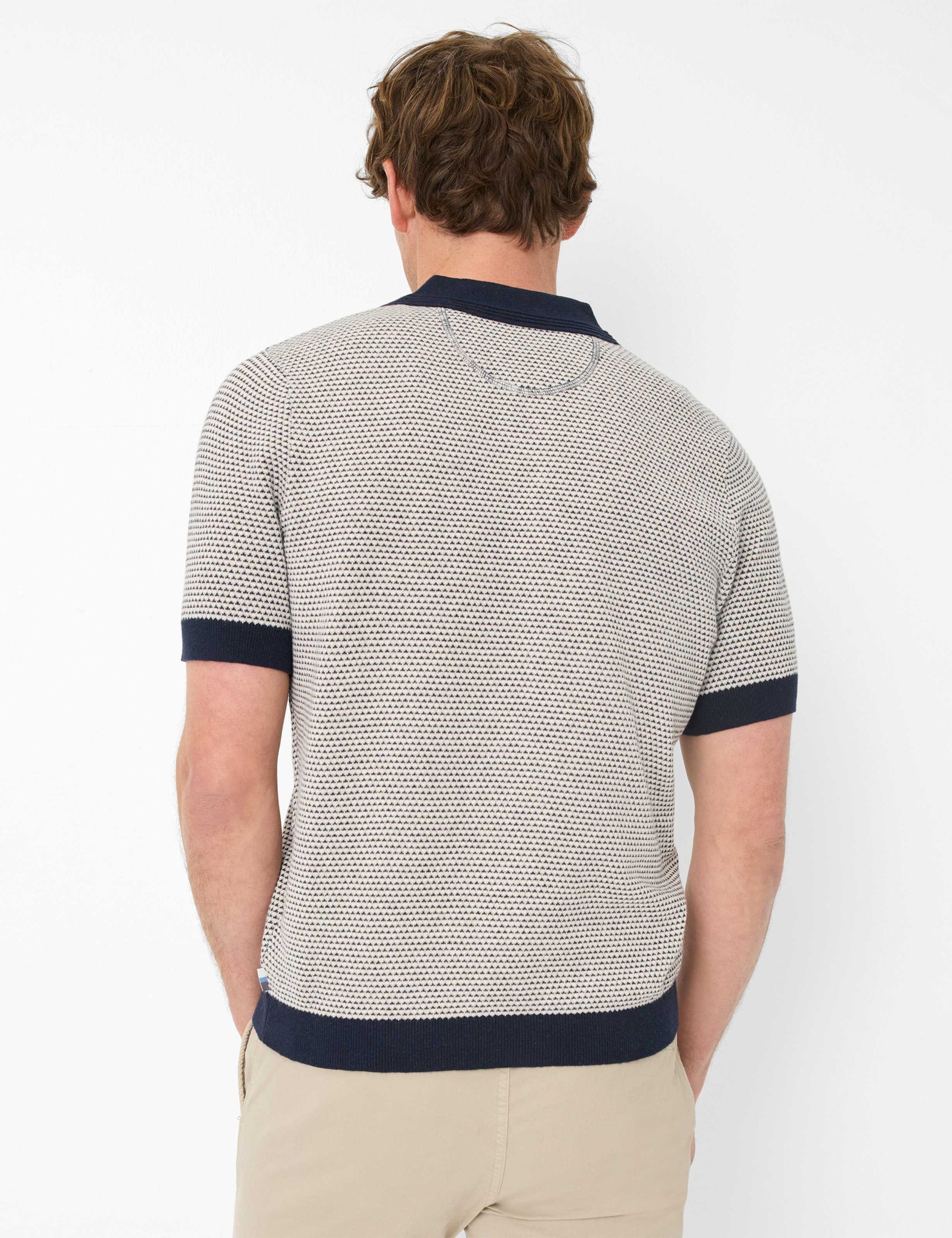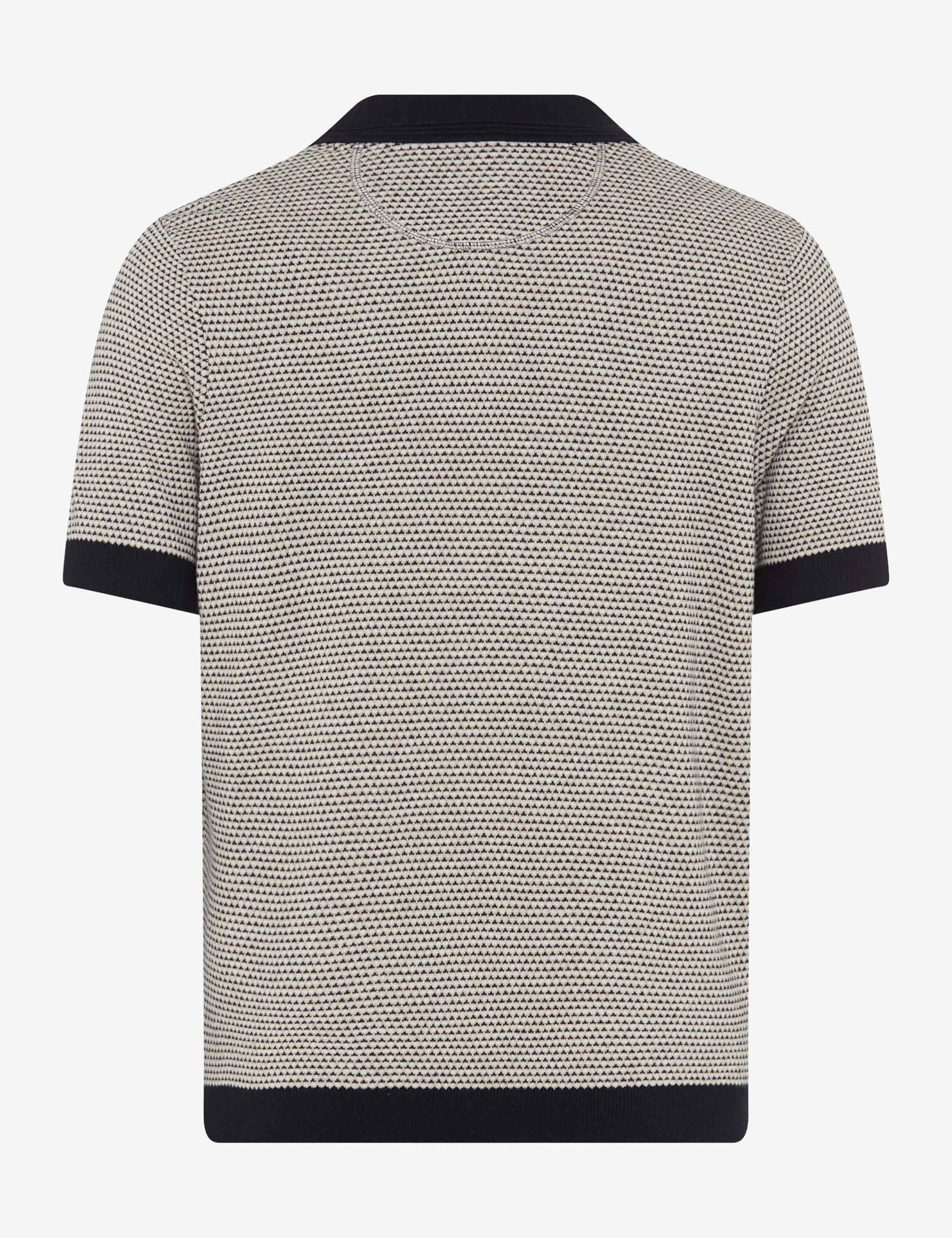 帶有短紐帶門襟的馬球領增添了運動氣息,而精緻的提花圖案則營造出精緻的紋理外觀。衣領、連結門襟、下擺和袖口邊緣的對比設計賦予了設計一種現代感。