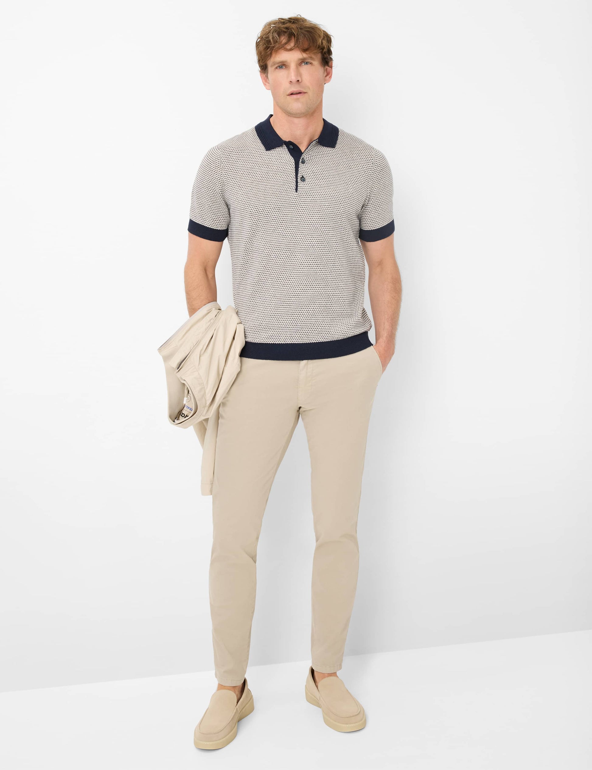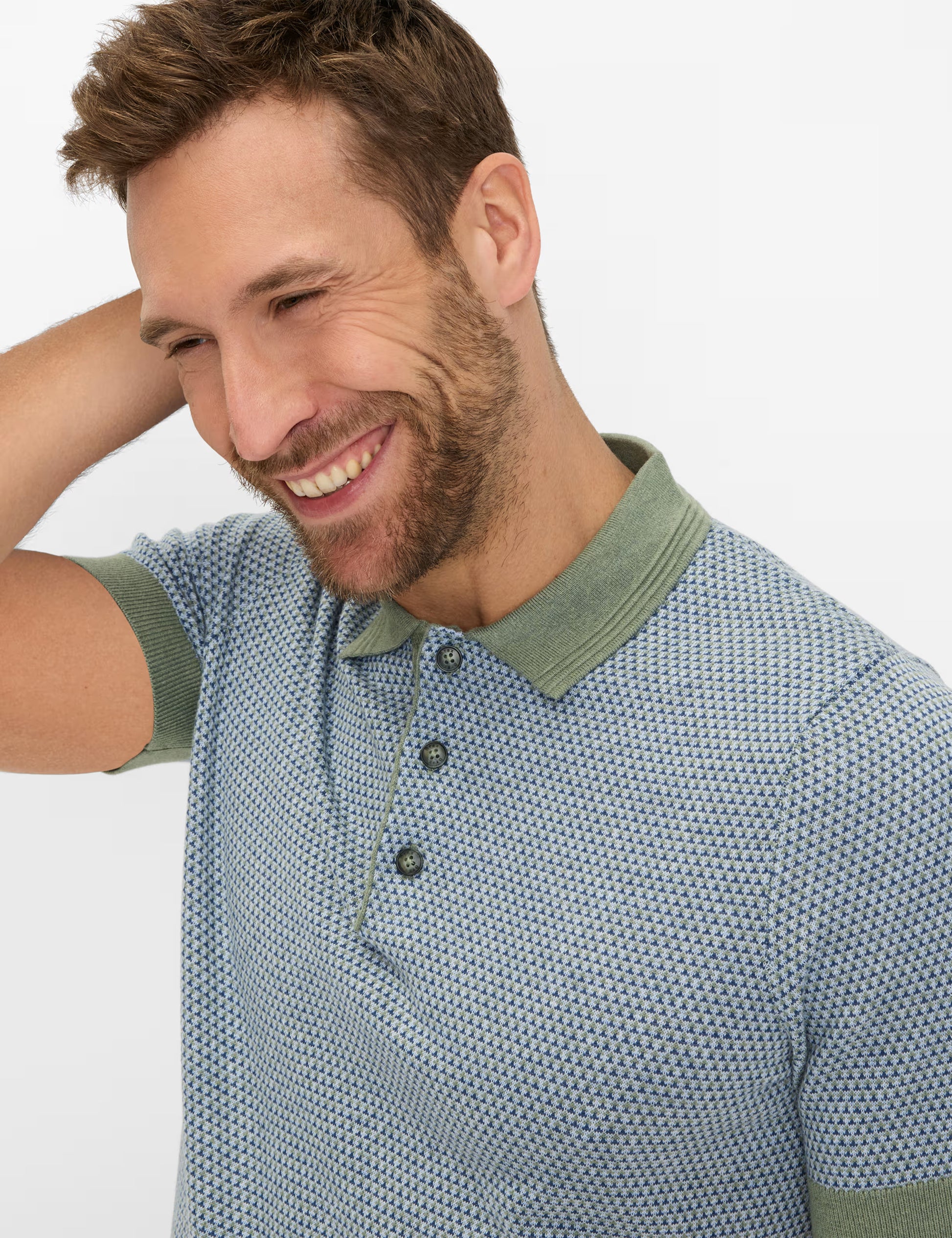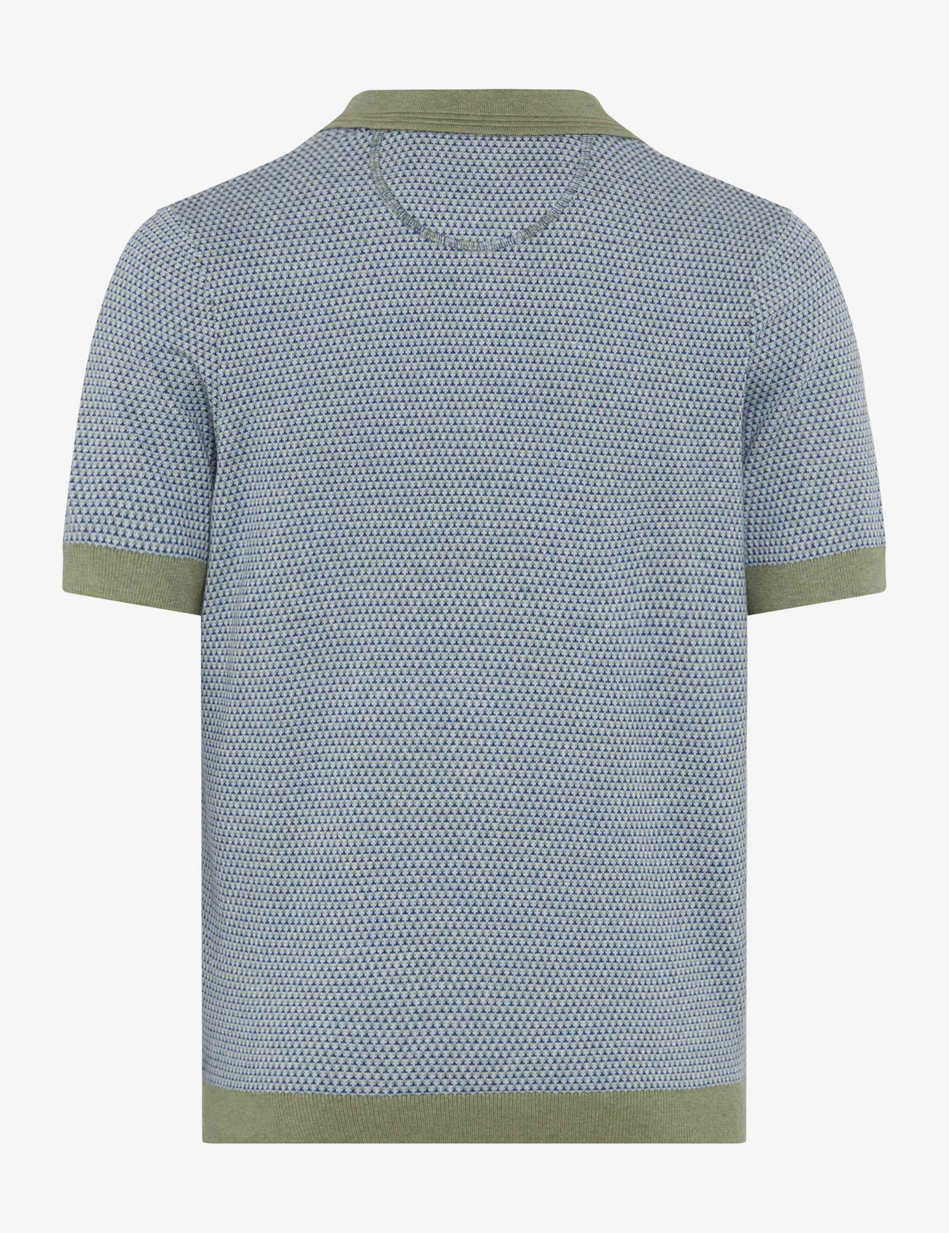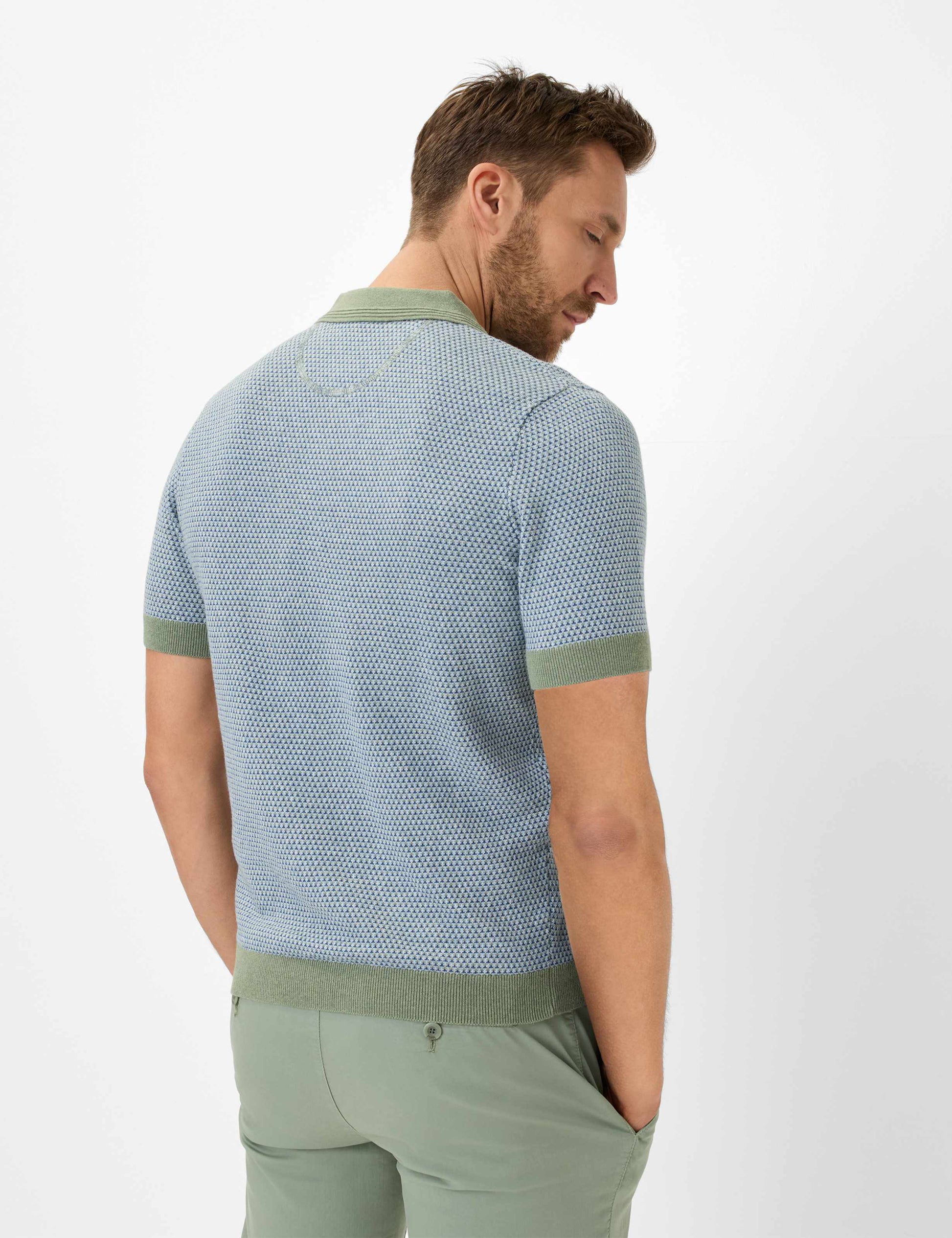 帶有短紐帶門襟的馬球領增添了運動氣息,而精緻的提花圖案則營造出精緻的紋理外觀。衣領、連結門襟、下擺和袖口邊緣的對比設計賦予了設計一種現代感。
