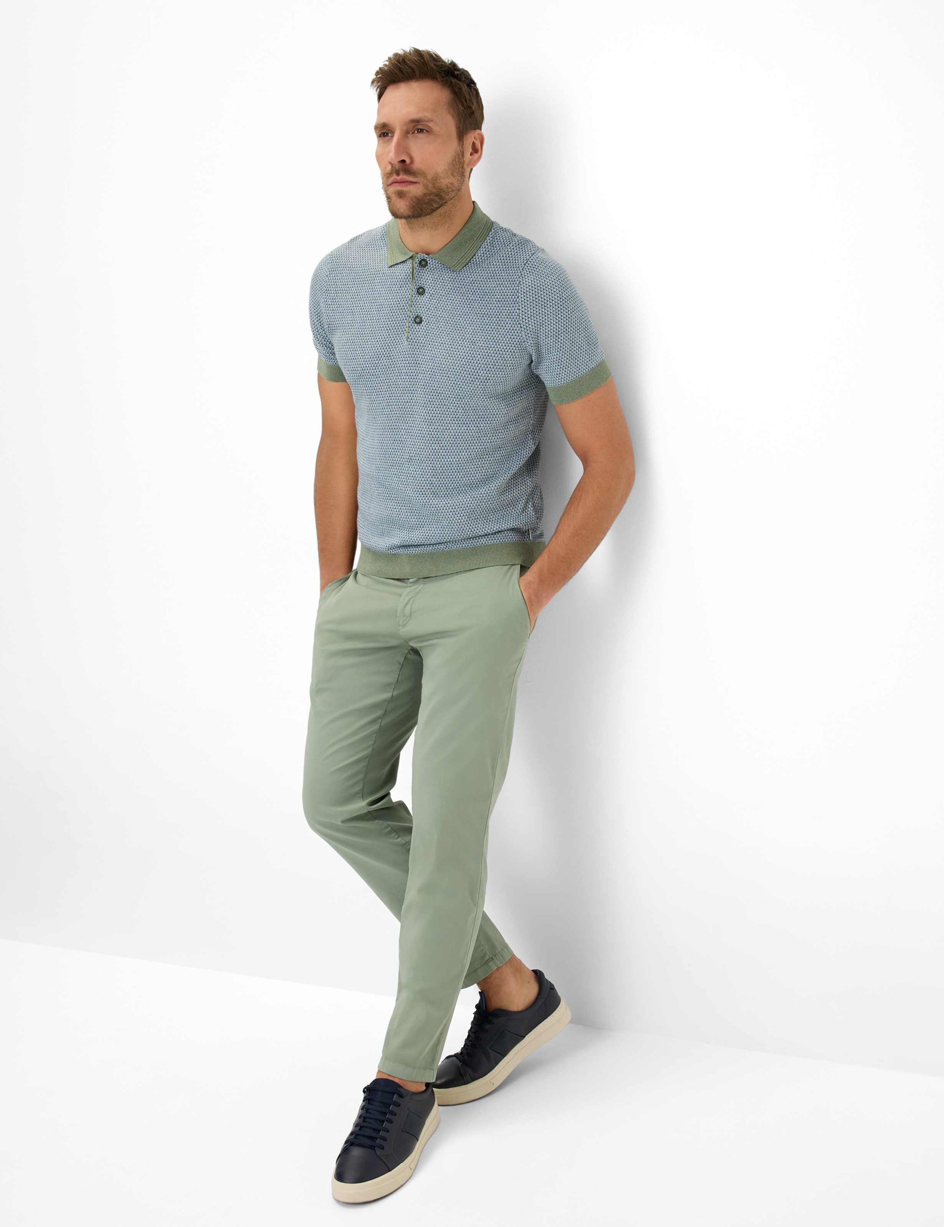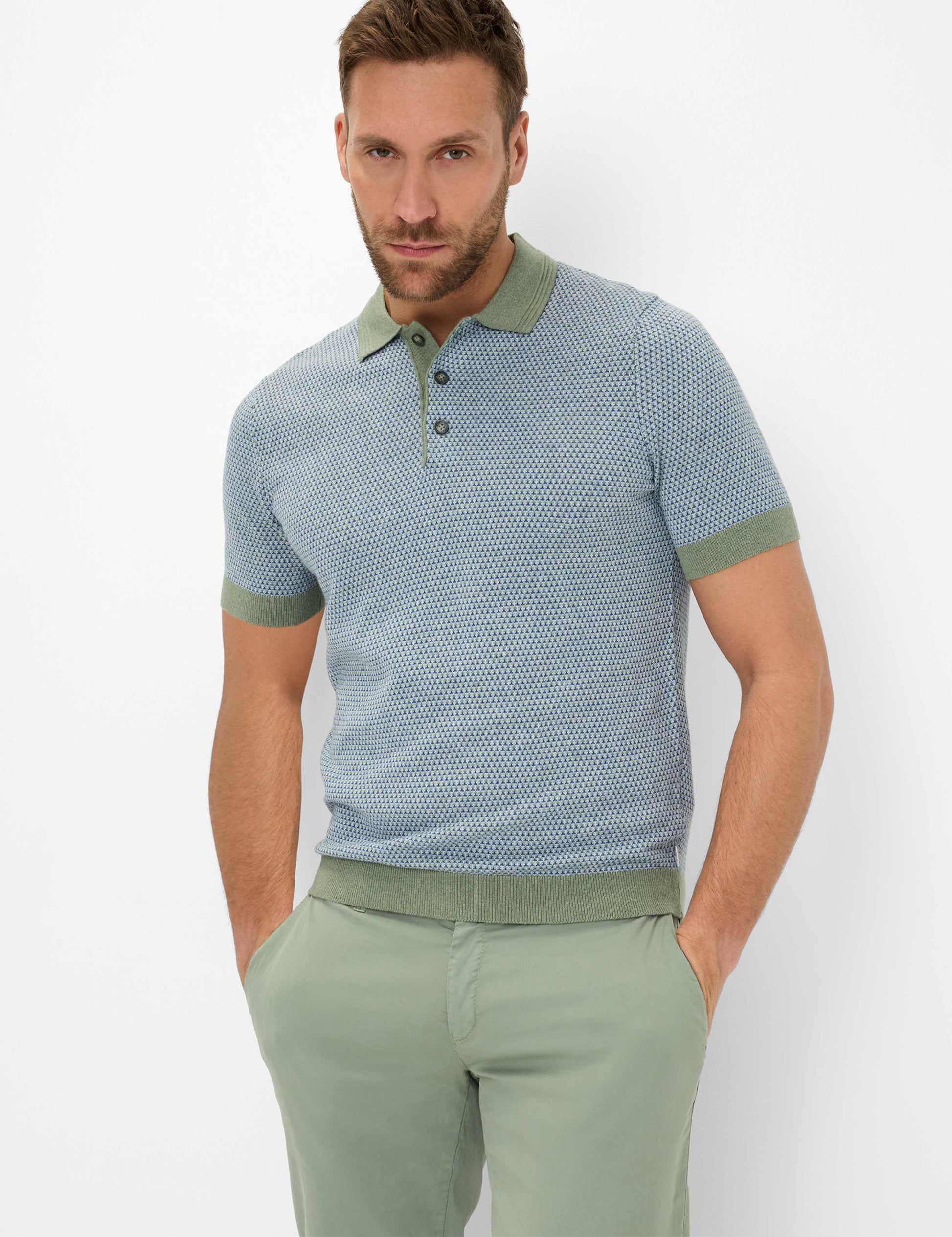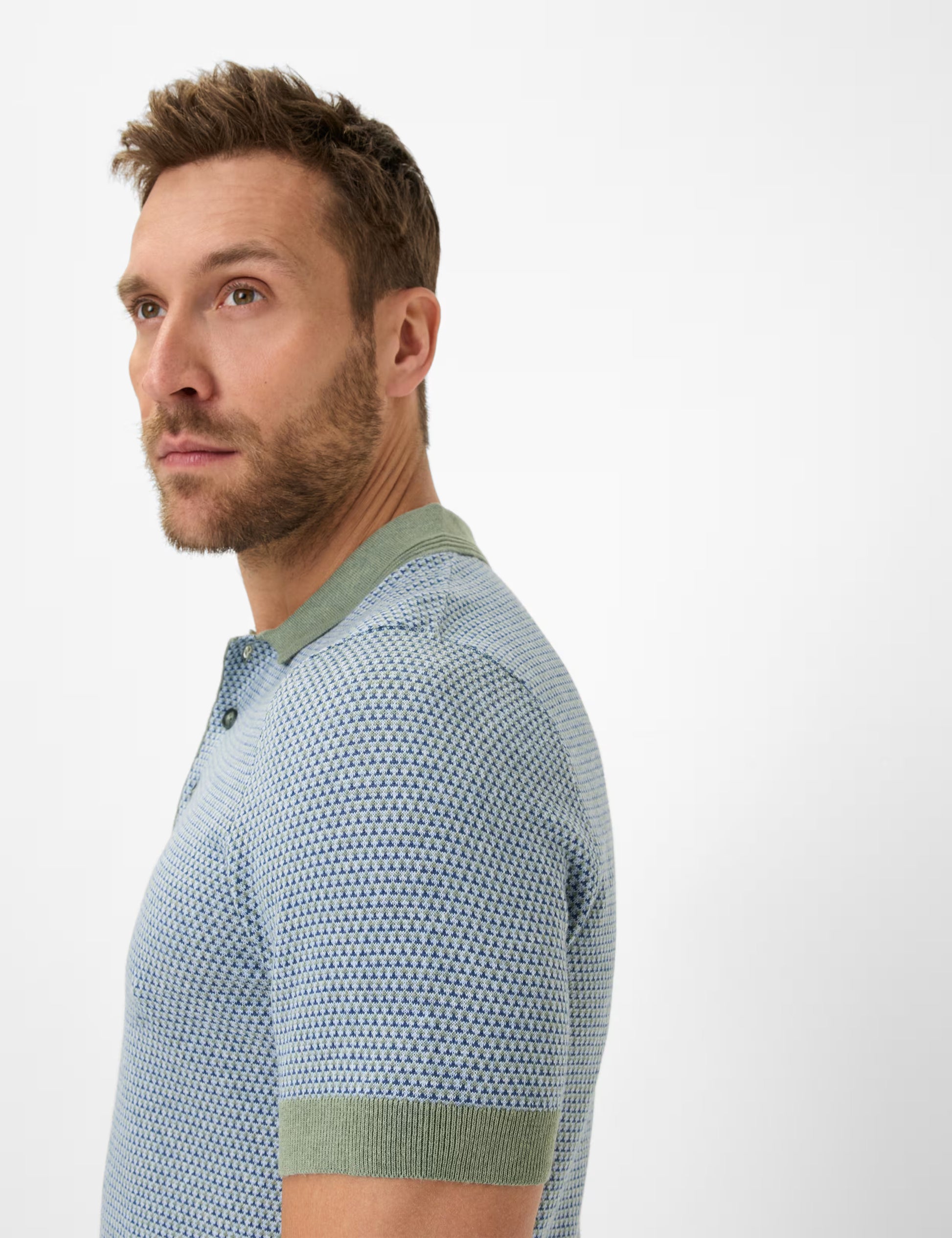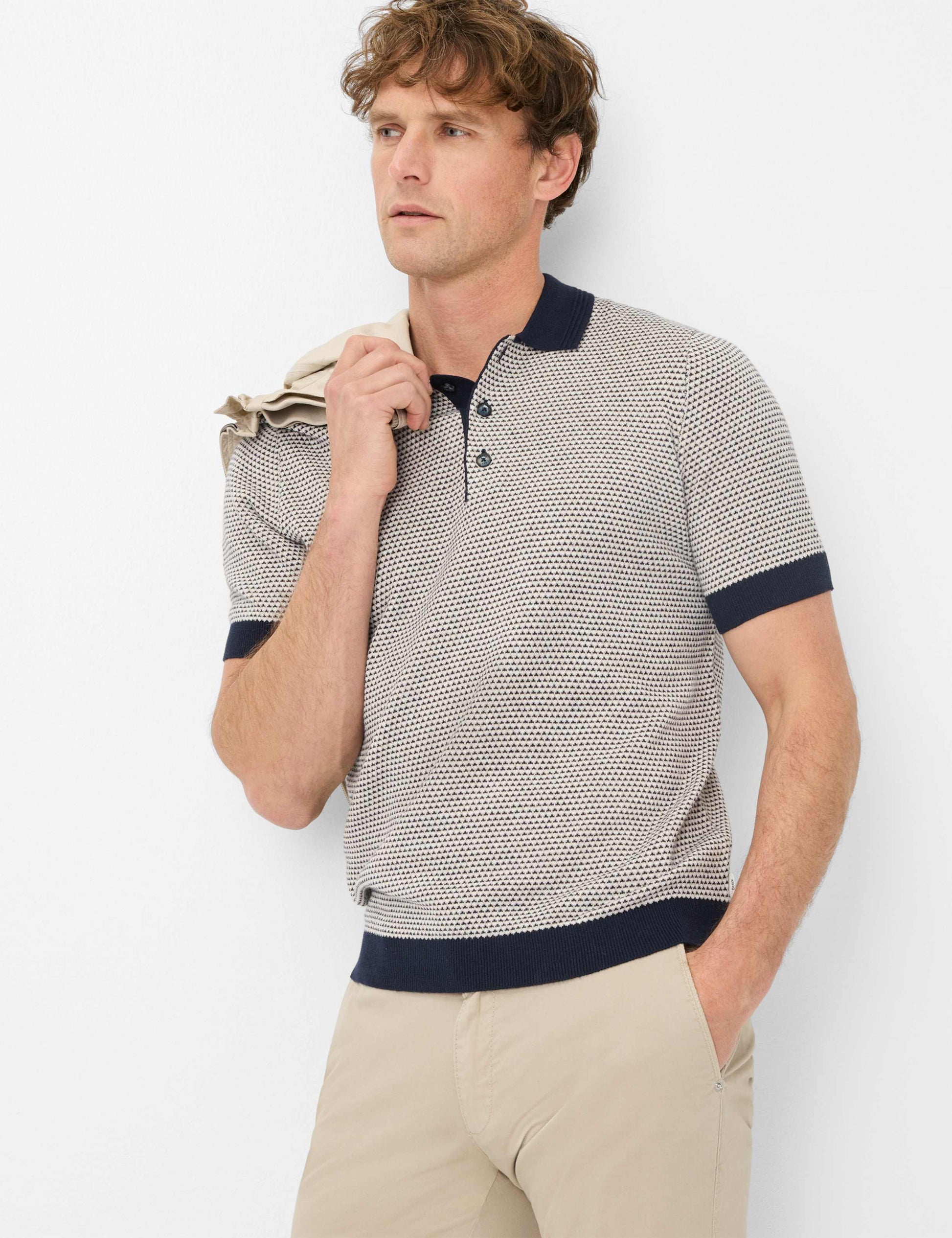 帶有短紐帶門襟的馬球領增添了運動氣息,而精緻的提花圖案則營造出精緻的紋理外觀。衣領、連結門襟、下擺和袖口邊緣的對比設計賦予了設計一種現代感。