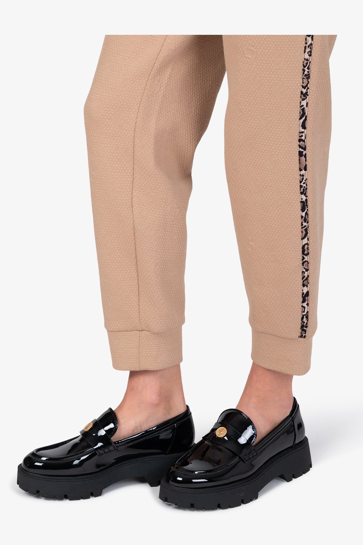 這款奢華慢跑褲採用圖案標誌提花布料製成,搭配時尚的獅子圖案,令人眼前一亮。它融合了現代風格與極致舒適感,打造出吸睛外觀。