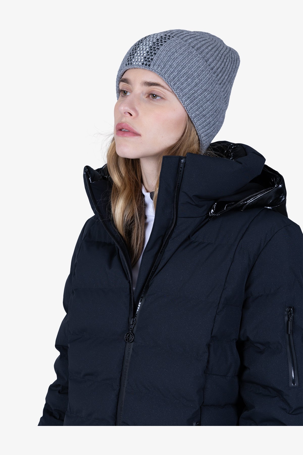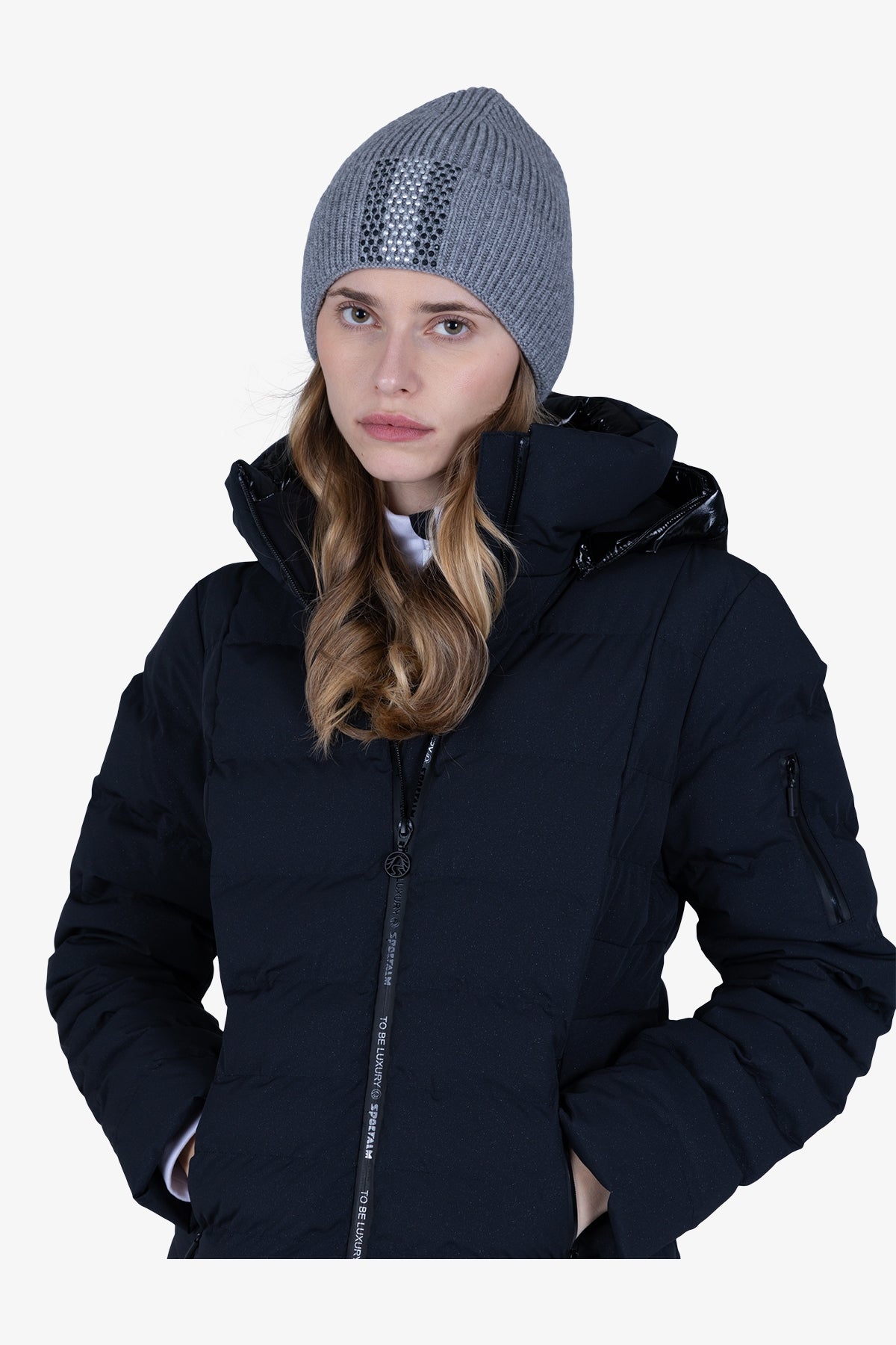 這款優雅的針織帽採用優質羊毛紗線製成,帽簷處飾有閃亮的水鑽。它兼具奢華風格和舒適保暖性,為任何冬季裝扮增添優雅氣息。