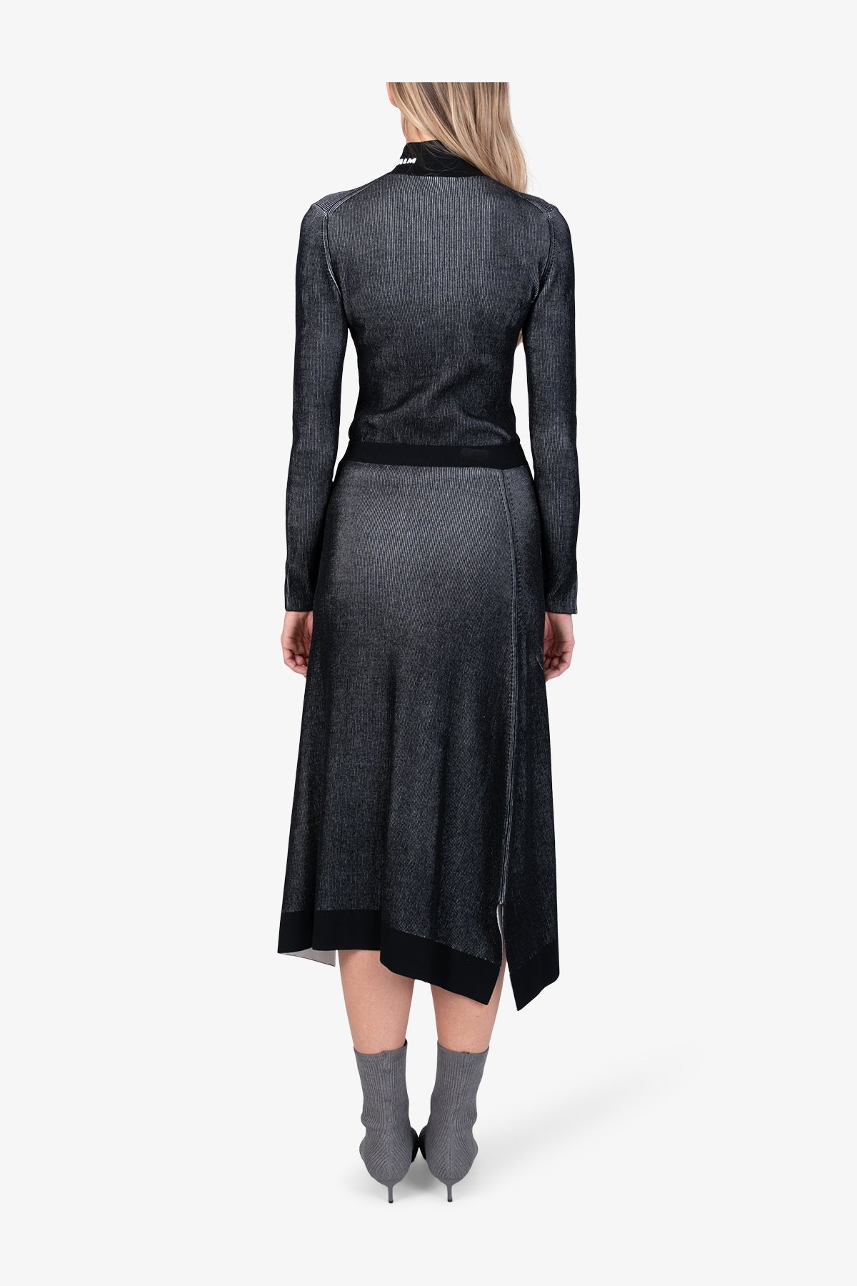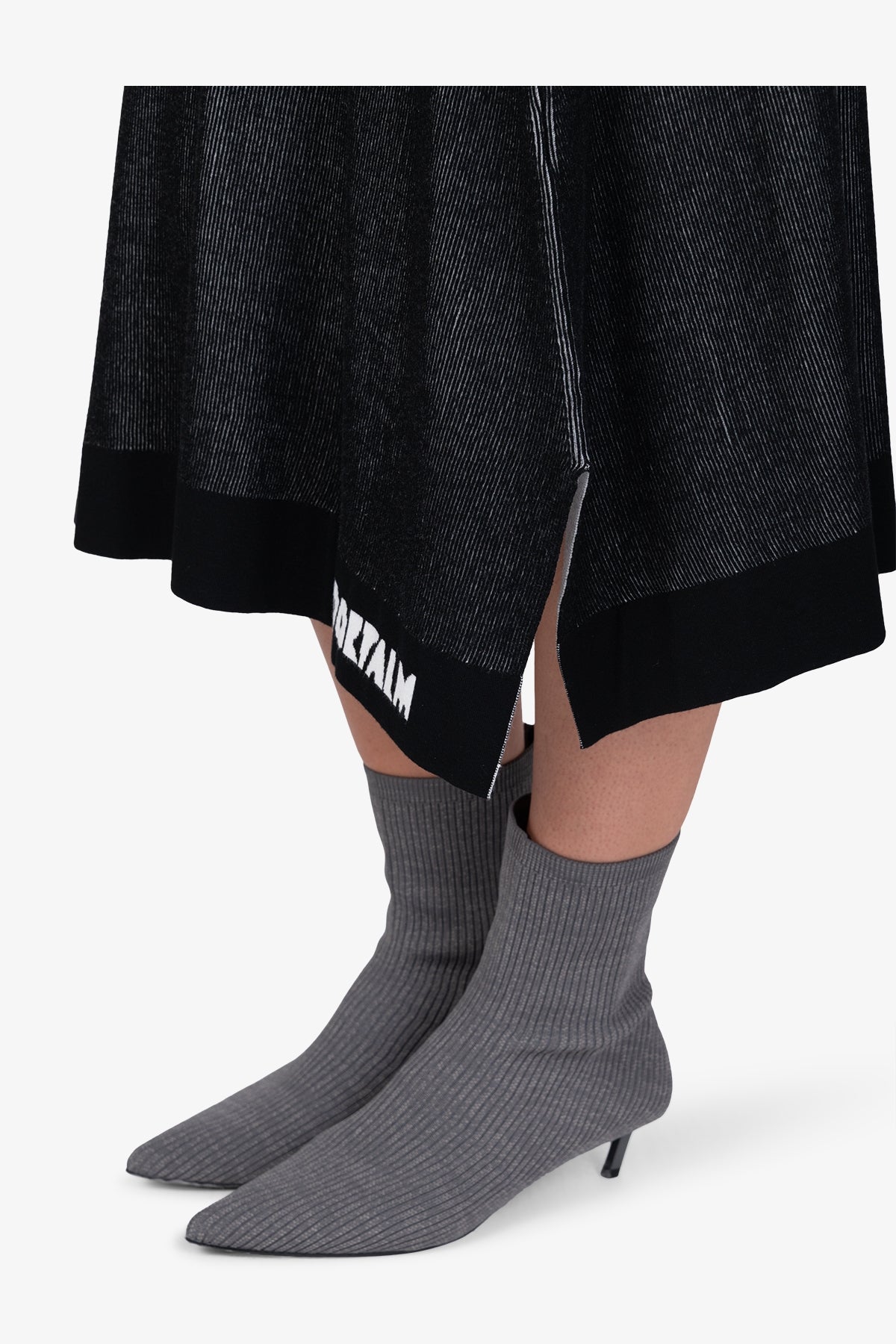這款精緻的中長針織半身裙,寬大飄逸的下擺,勾勒出女性柔美的輪廓。輕鬆穿上,舒適自在-時尚女性的必備單品。