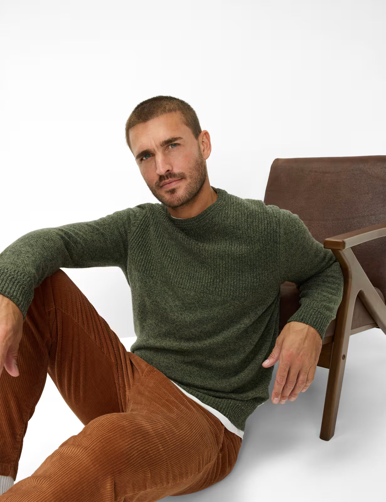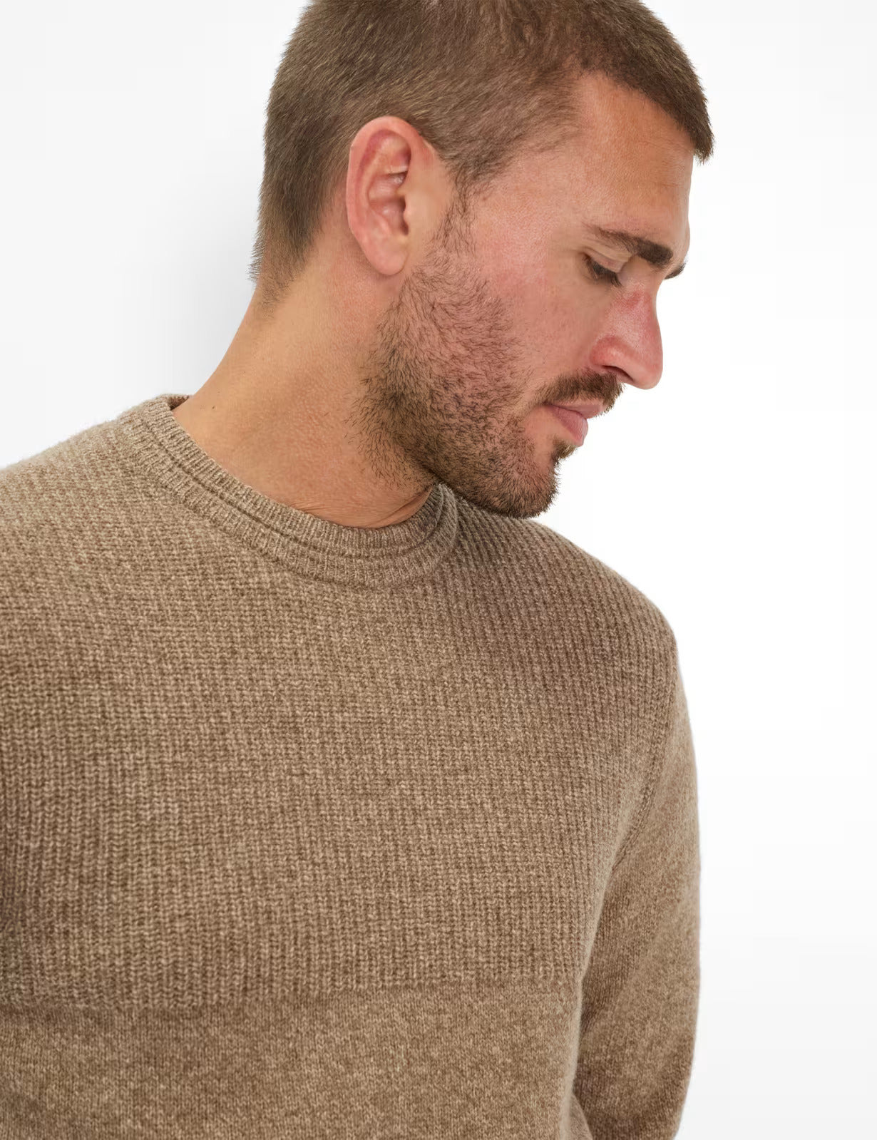 這款男士毛衣不僅外觀驚艷,其高貴的材質組合也令人驚艷:羊毛和聚酰胺混紡面料,融合了羔羊毛的保暖透氣特性以及合成纖維的耐用性。其獨特的磨坊式外觀賦予針織圖案以生動的深度,巧妙的轉折點綴,提升了整體造型的層次感,卻又不失華麗。