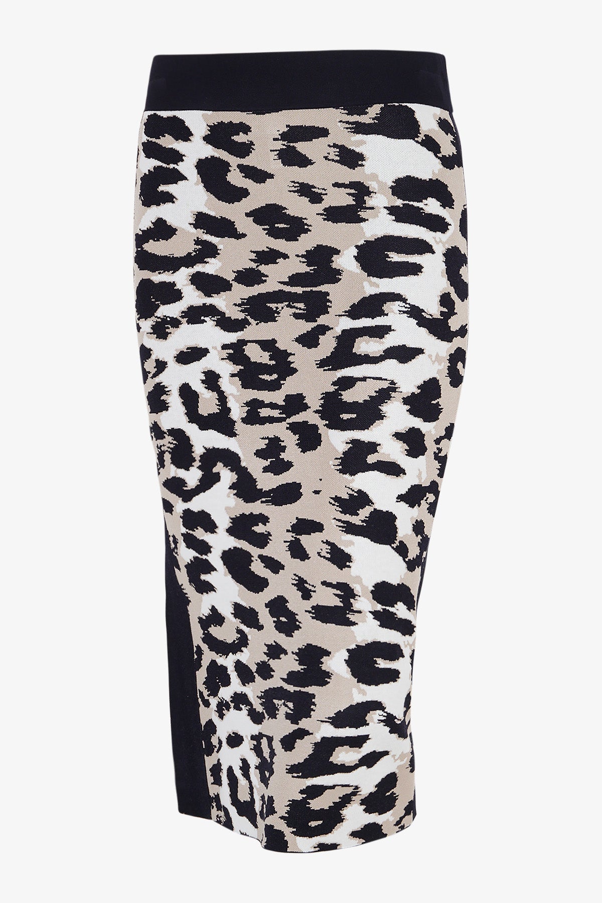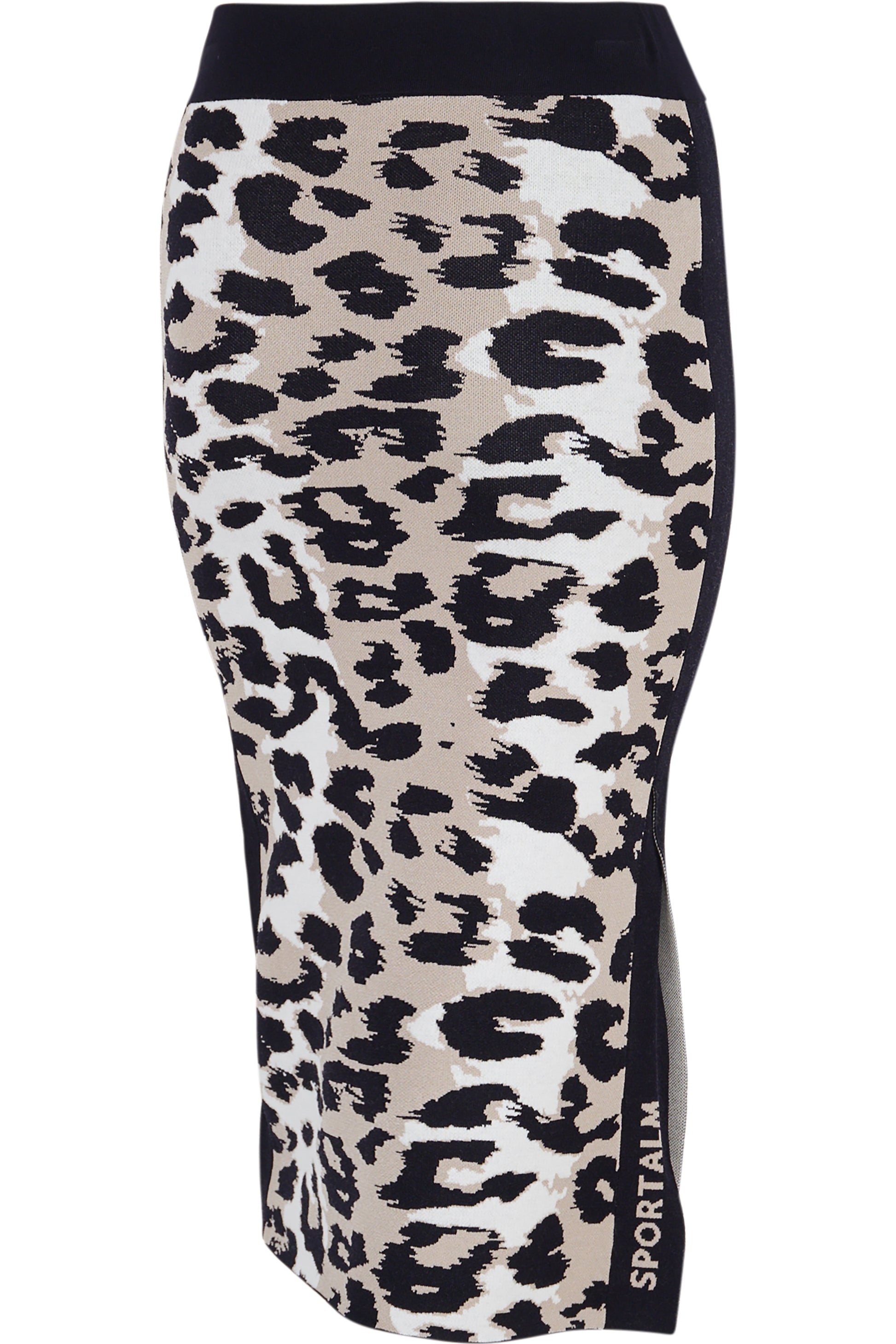 這款時尚中長款針織裙帶有閃亮的豹紋,是真正的亮點。側條紋在視覺上讓身材更加苗條,顯得格外迷人。