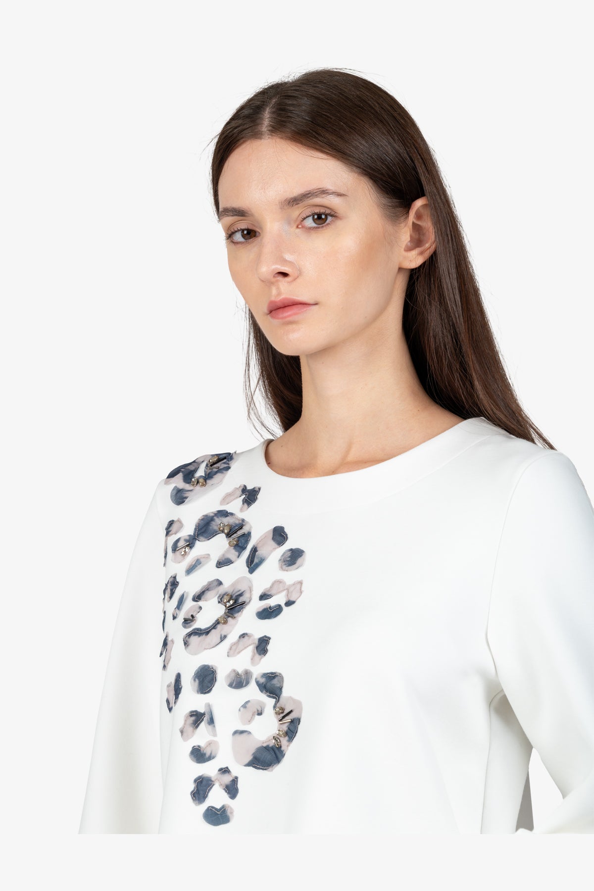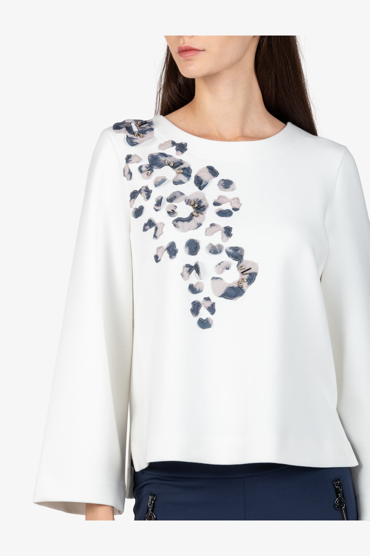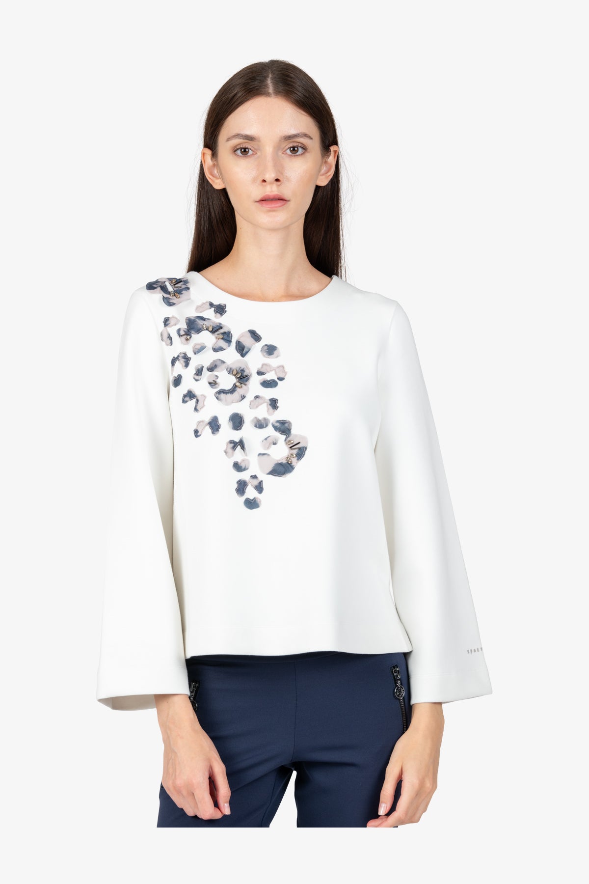 這款時尚的毛衣袖子寬大,正面有 3D 貼花,非常引人注目。時尚、新潮的服裝讓您的外觀更具特別的氣息。
