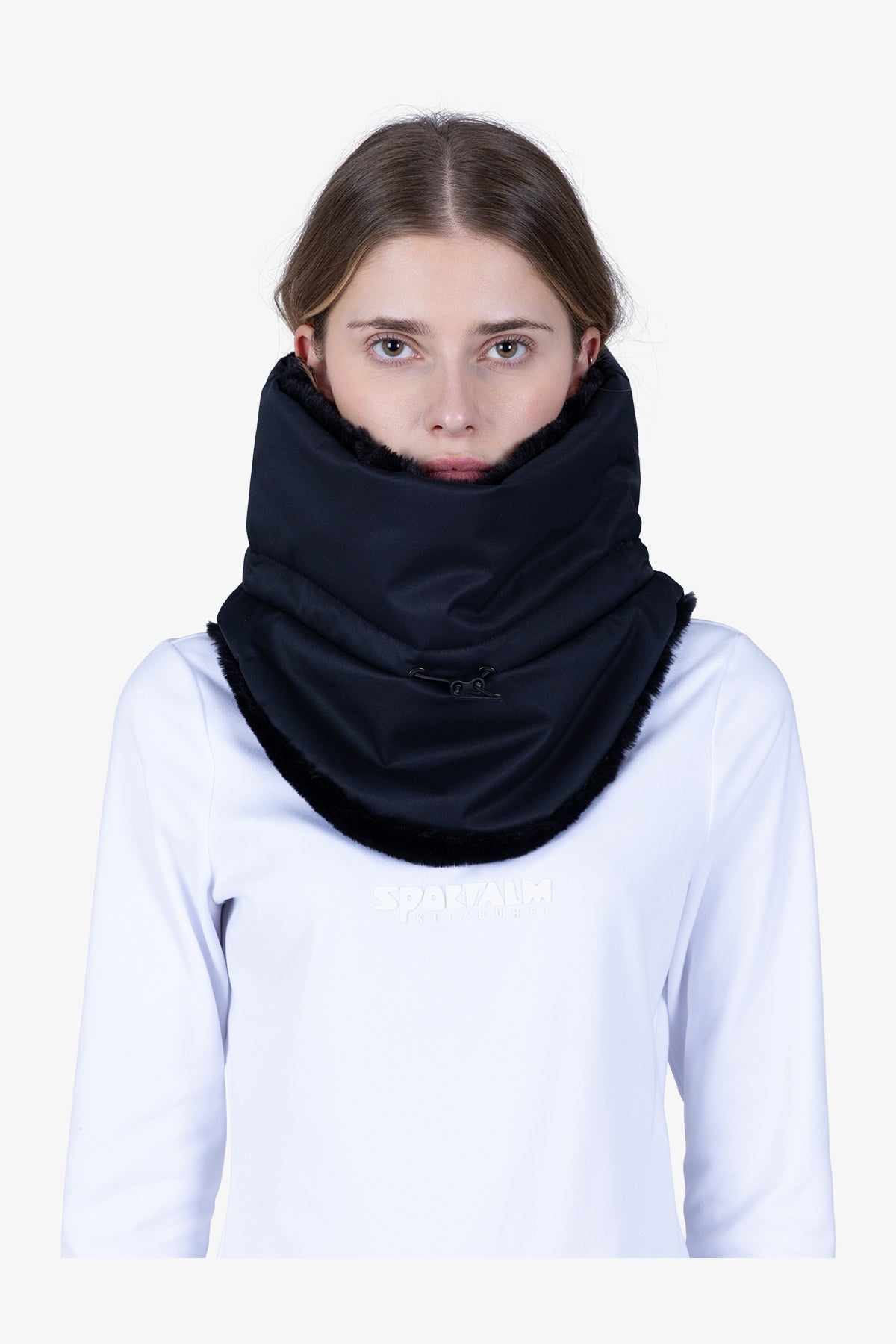 這款舒適的圍巾非常適合寒冷的冬日,外部採用運動滑雪面料,內部採用溫暖的毛絨襯裡。