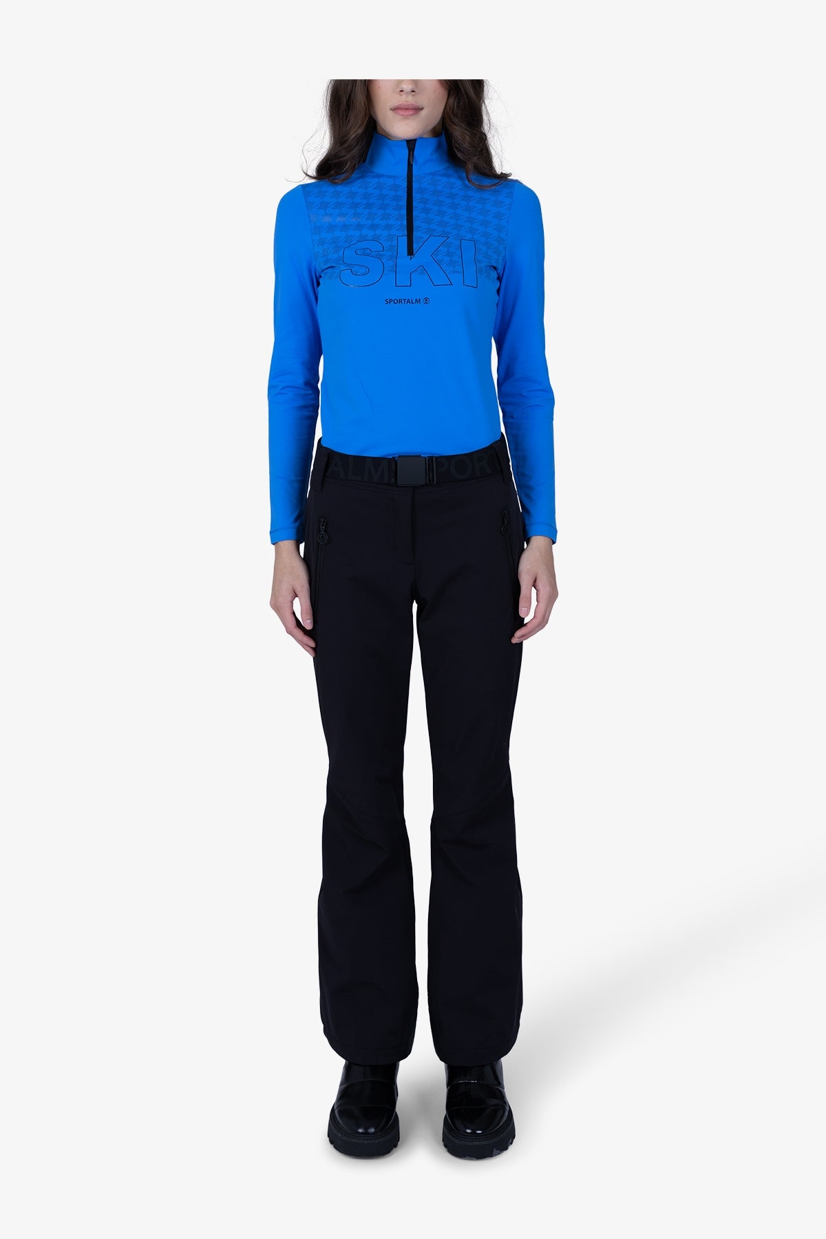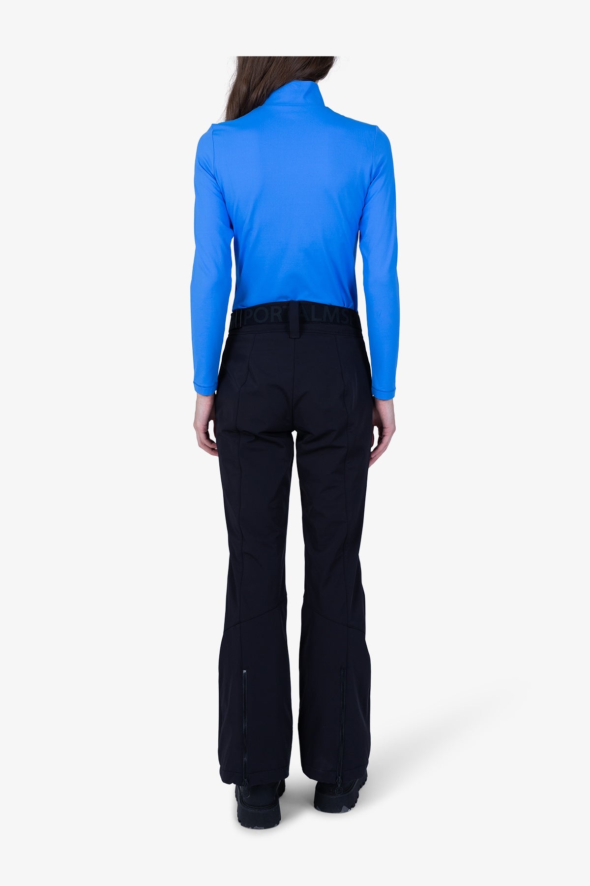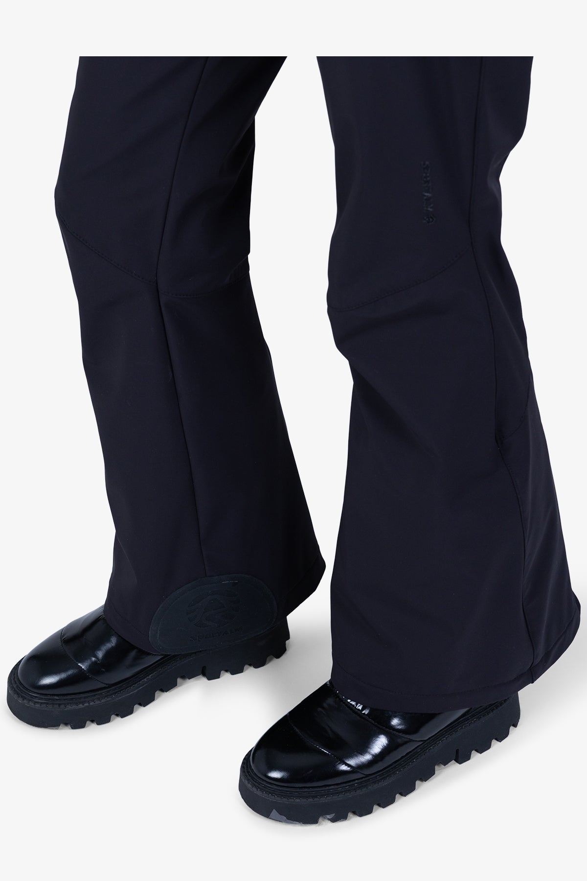 褲管形狀:直筒剪裁,配有防雪裝置,後部中央有帶扣的可見拉鍊,配有角撐板,下擺加固,配有邊緣保護
