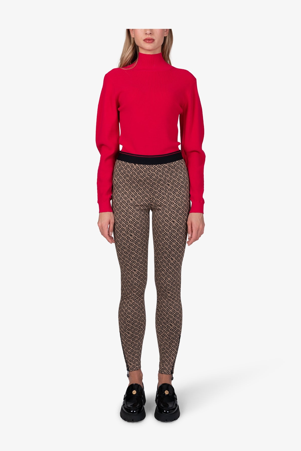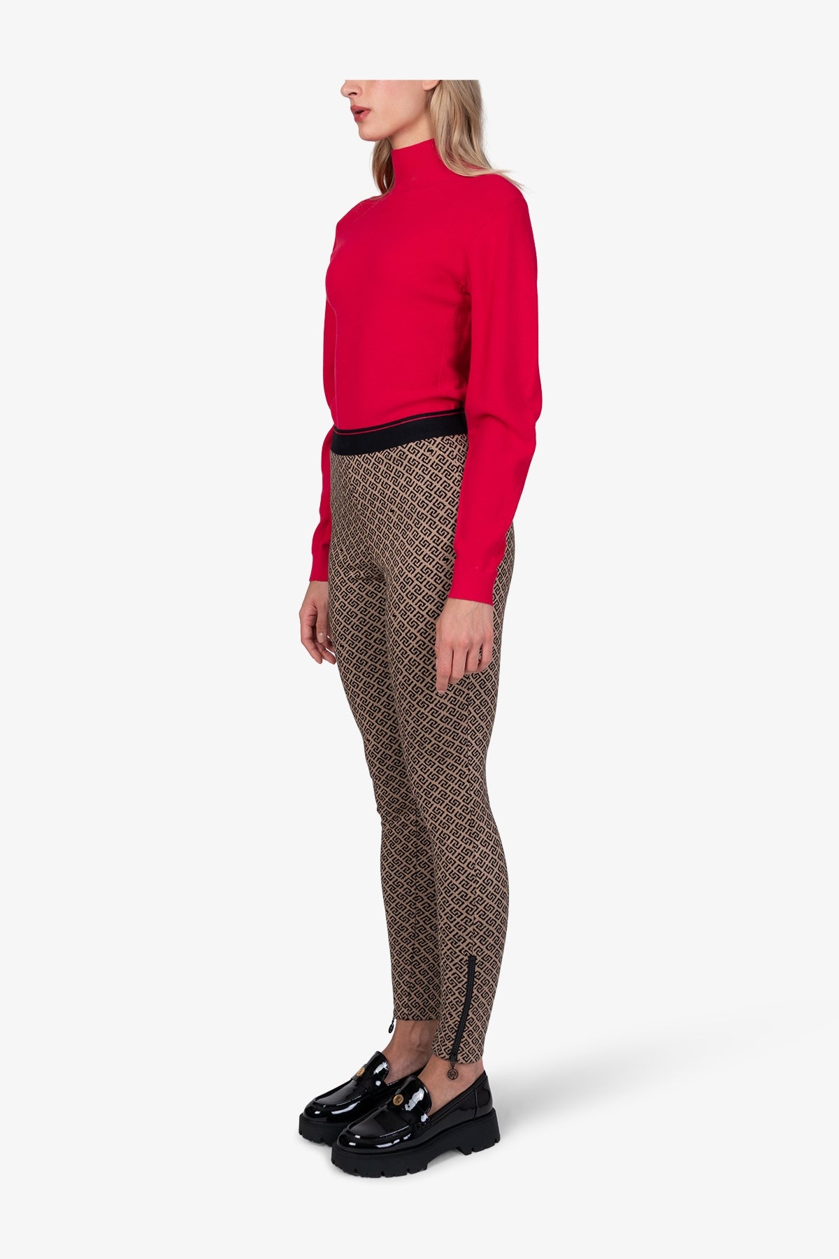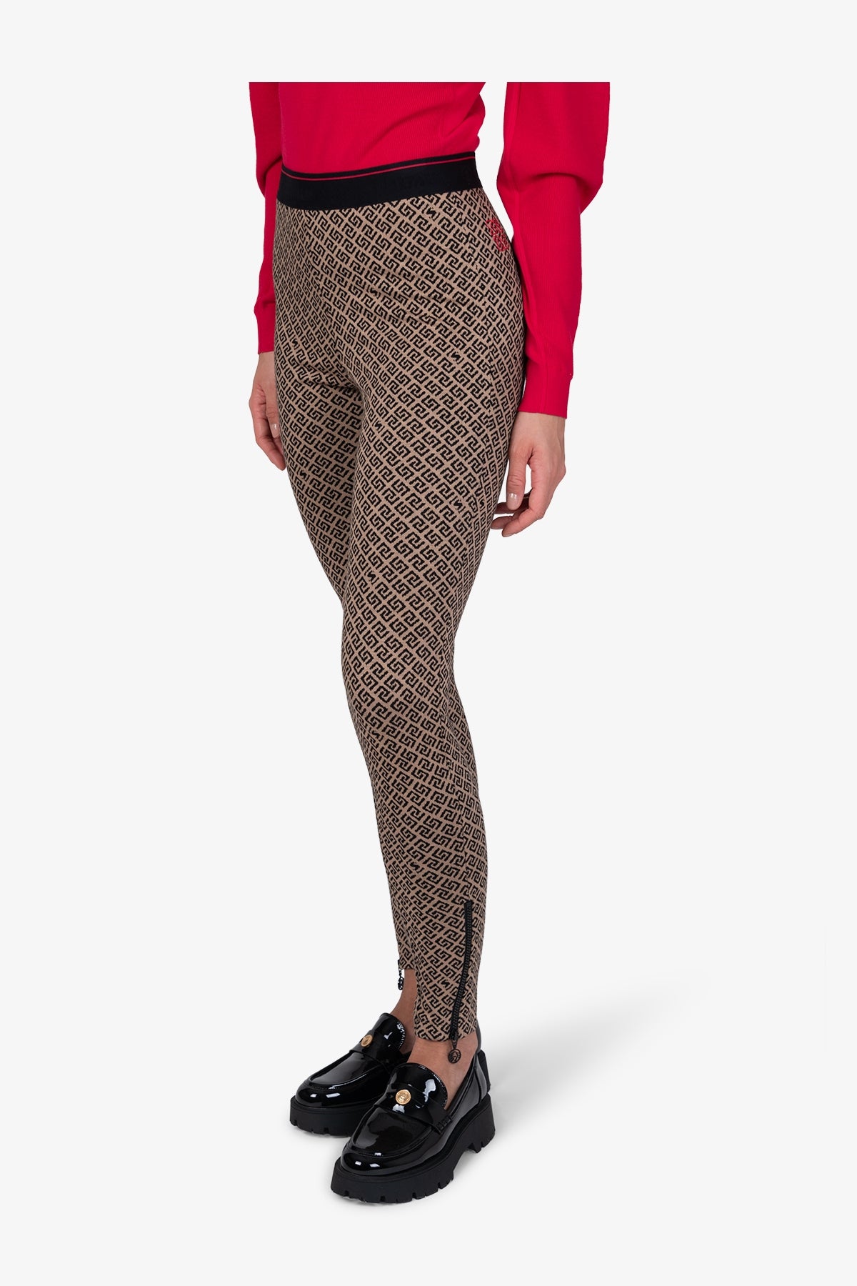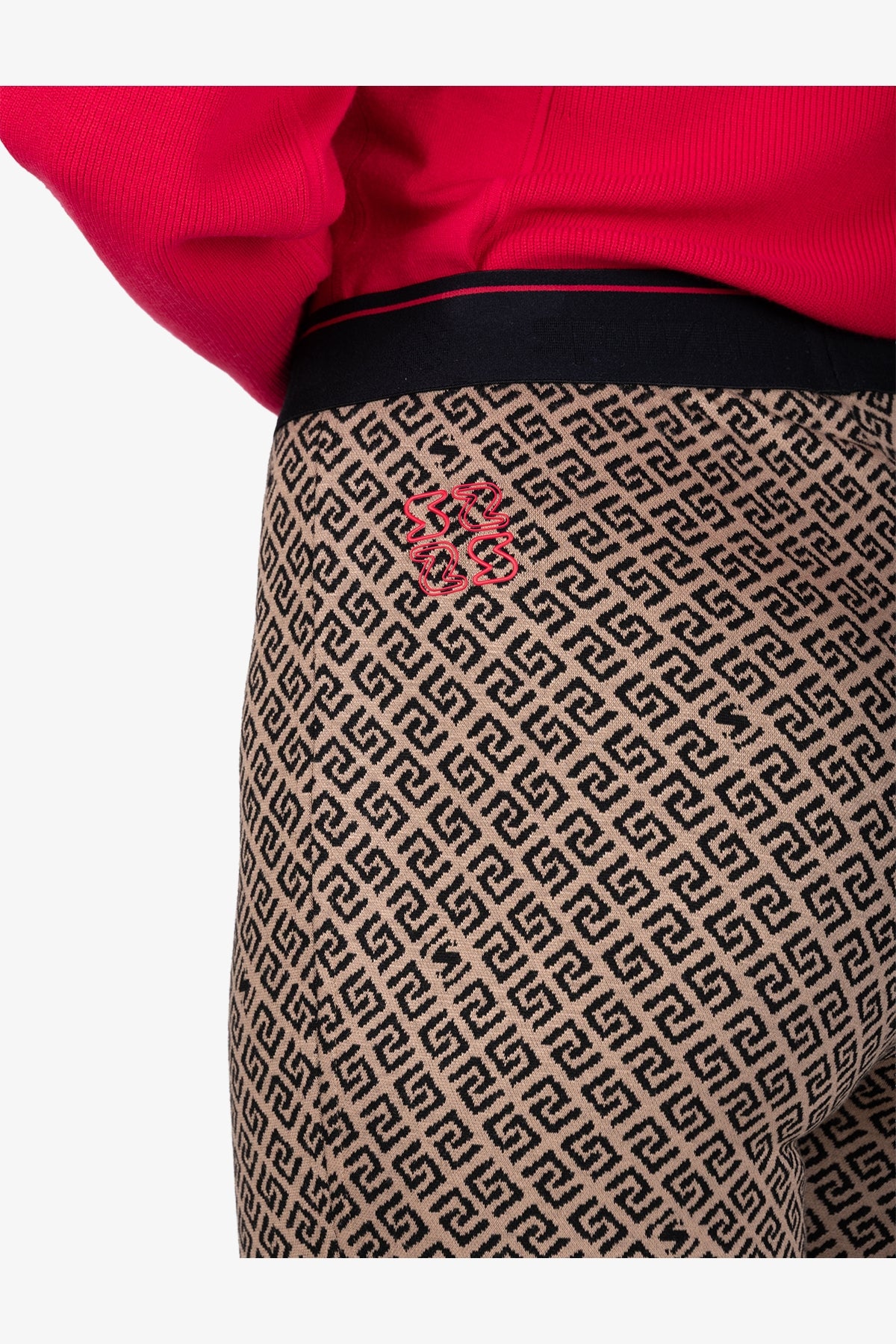 這款柔美的長褲採用圖案提花布料製成,前側縫處配有可見拉鍊。柔軟的鬆緊腰帶確保完美貼合,帶來極致舒適體驗。