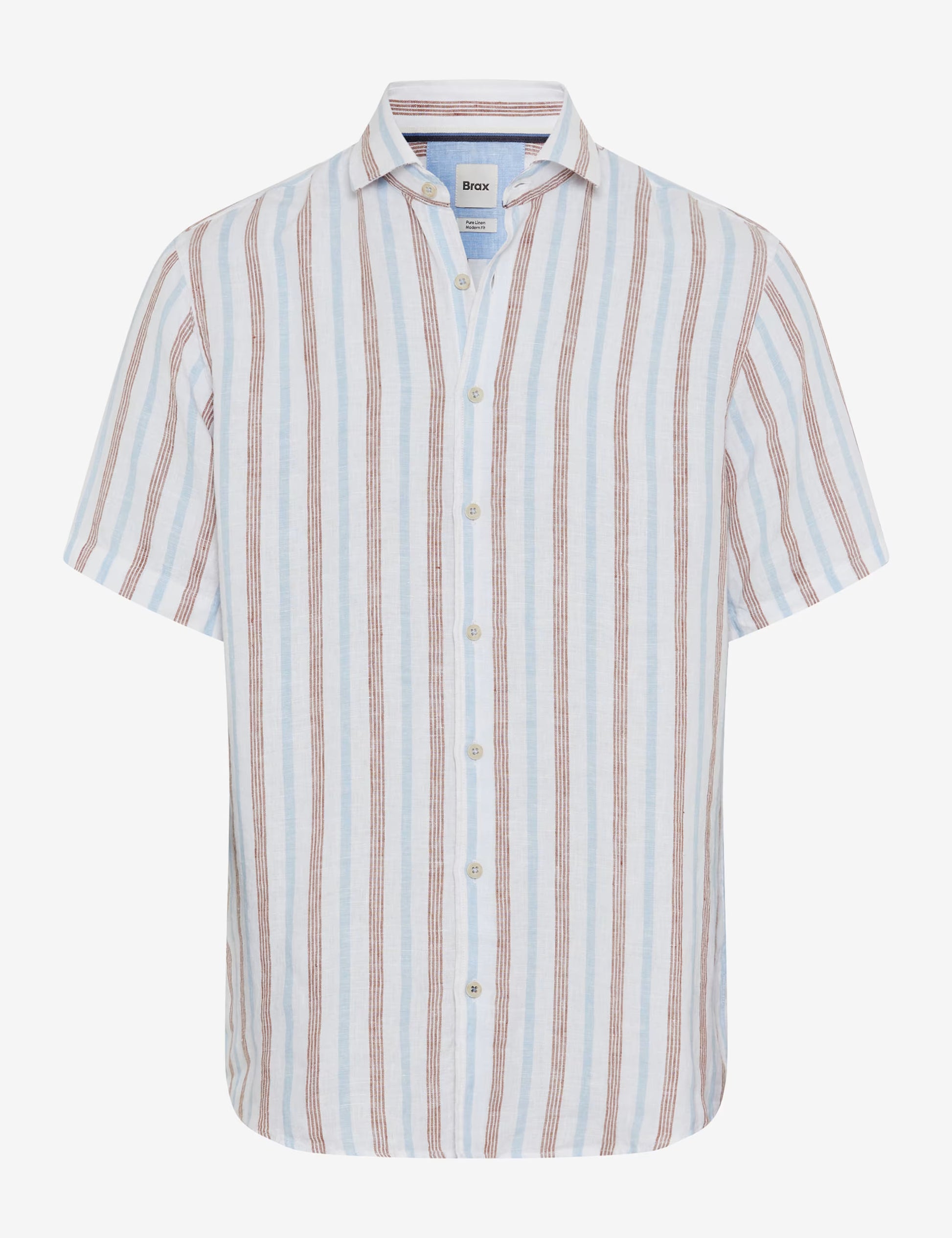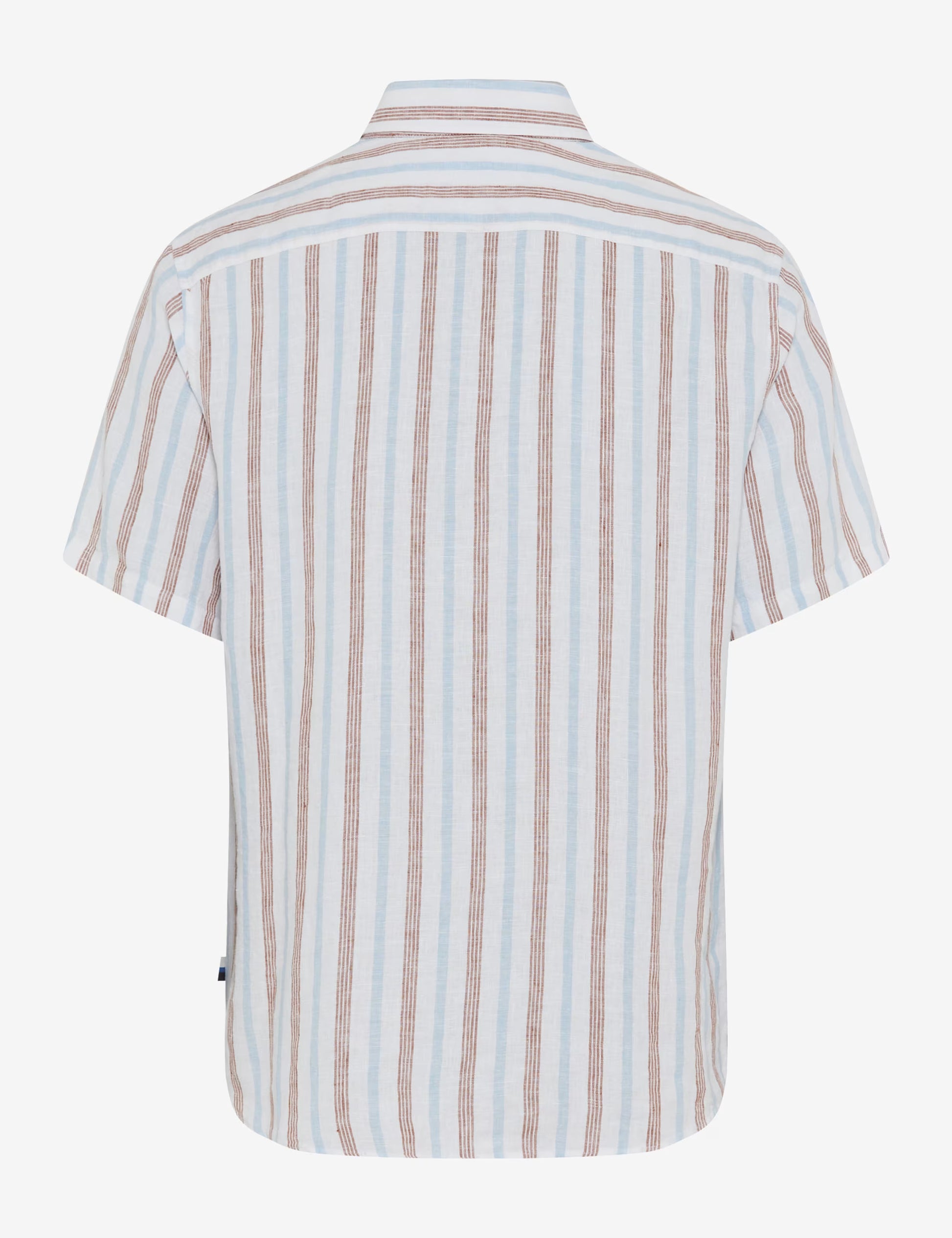 這款短袖襯衫採用略微收腰的造型和醒目的鯊魚領,呈現出現代感。他的造型由時尚的縱向條紋決定,營造出動態和清新的外觀