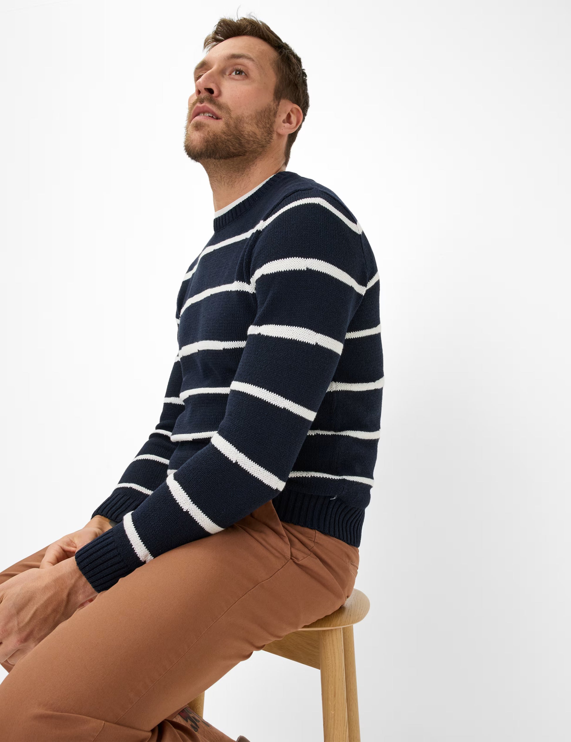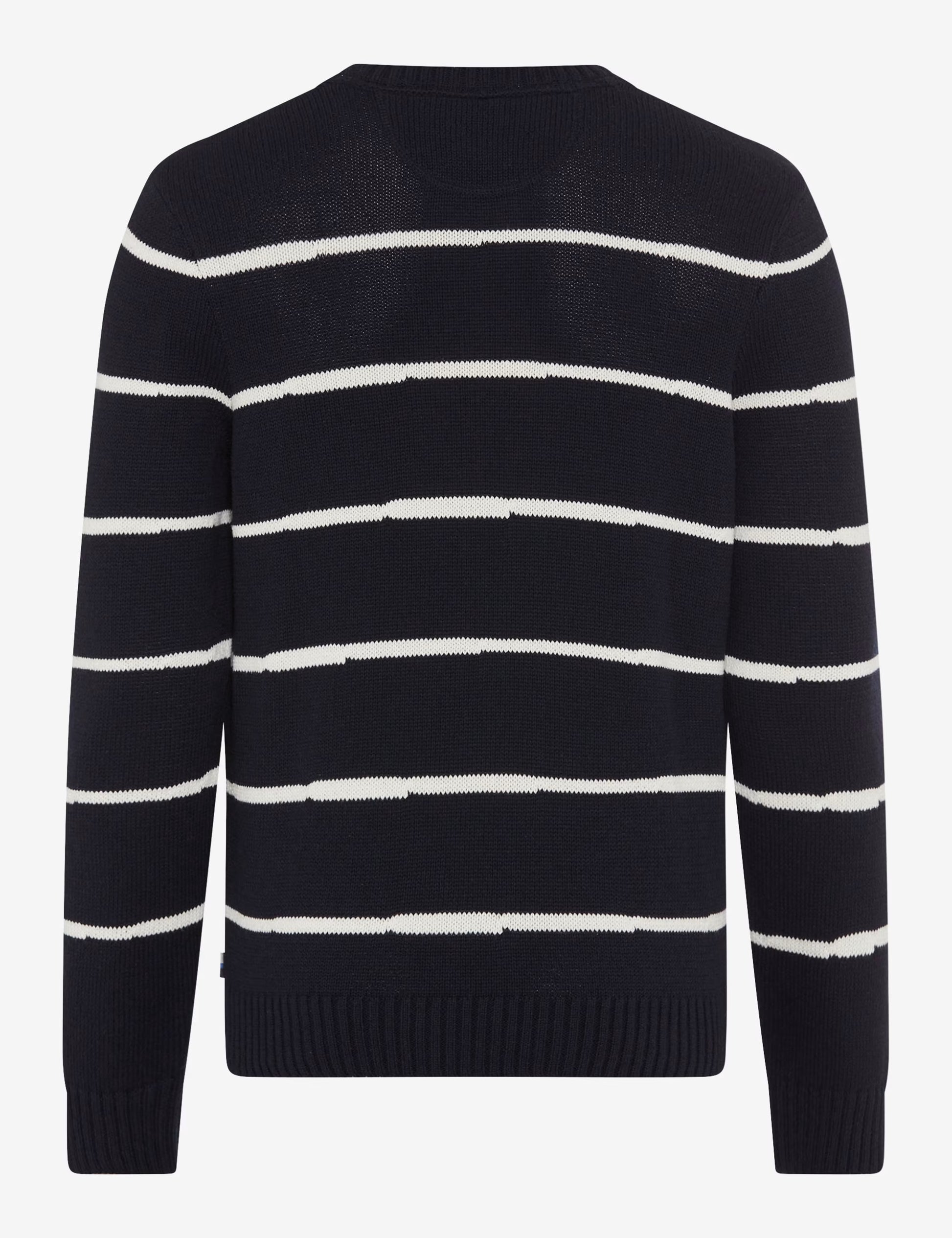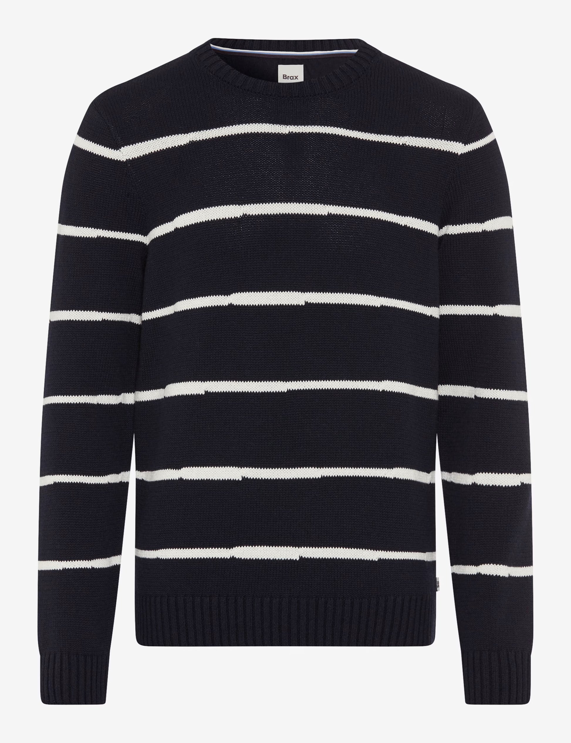 直筒輪廓和經典圓領賦予套頭衫永恆的外觀,創新的水平條紋的複雜嵌花更增添了時尚感。