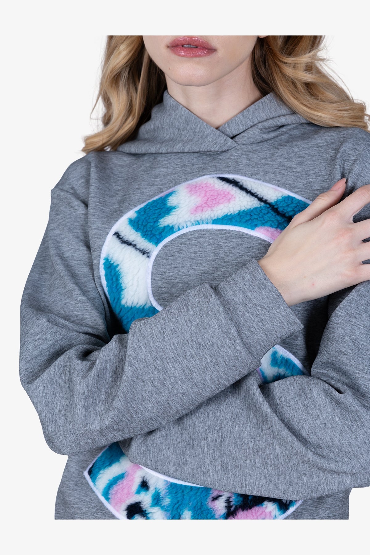 這款運動毛衣正面飾有精緻的3D圖案,採用奢華的泰迪絨提花面料製成,設計別緻,完美融合了舒適與時尚。