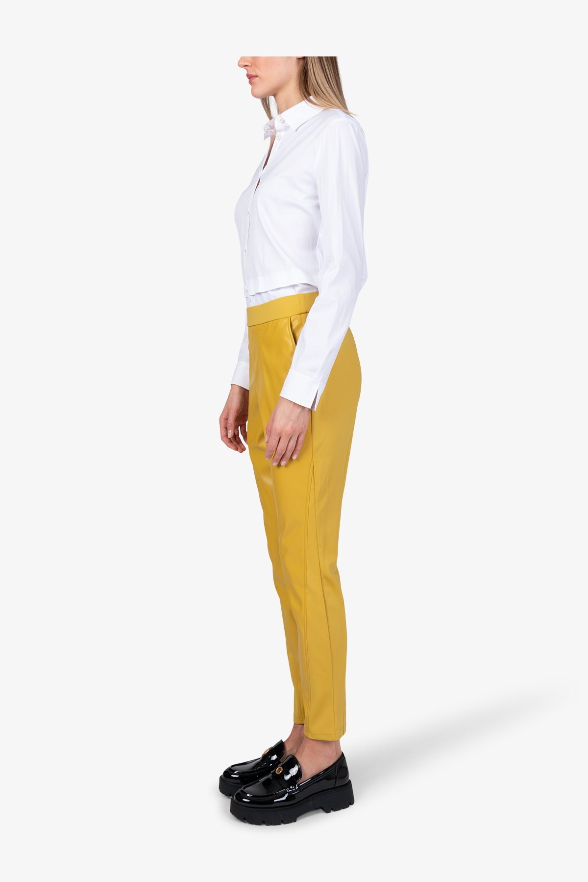 這款優雅的褲子正面採用優雅的仿皮面料,背面則採用柔軟的潛水面料。這種精緻的材質組合確保了完美貼合,兼具時尚感和極致舒適感。