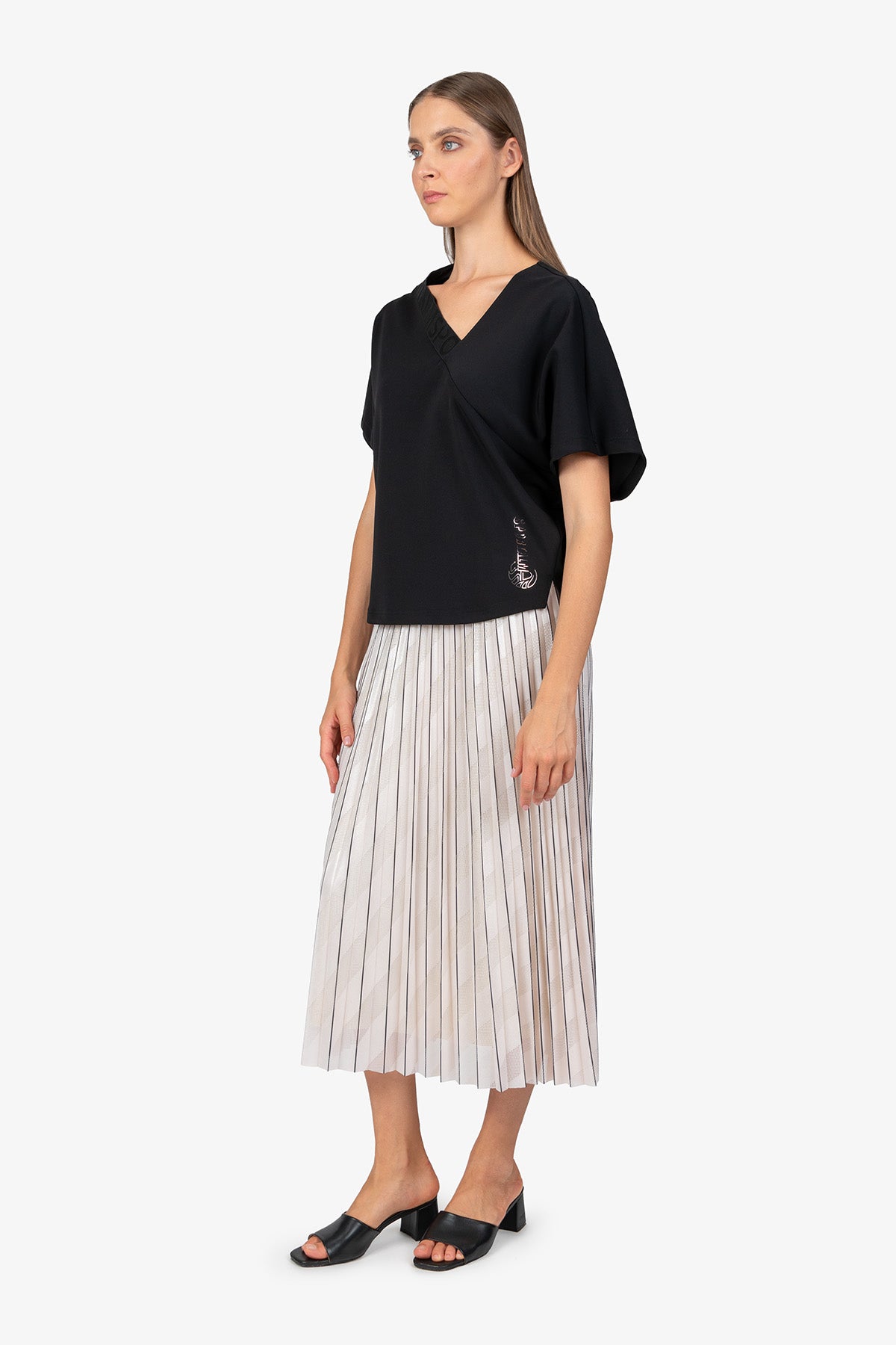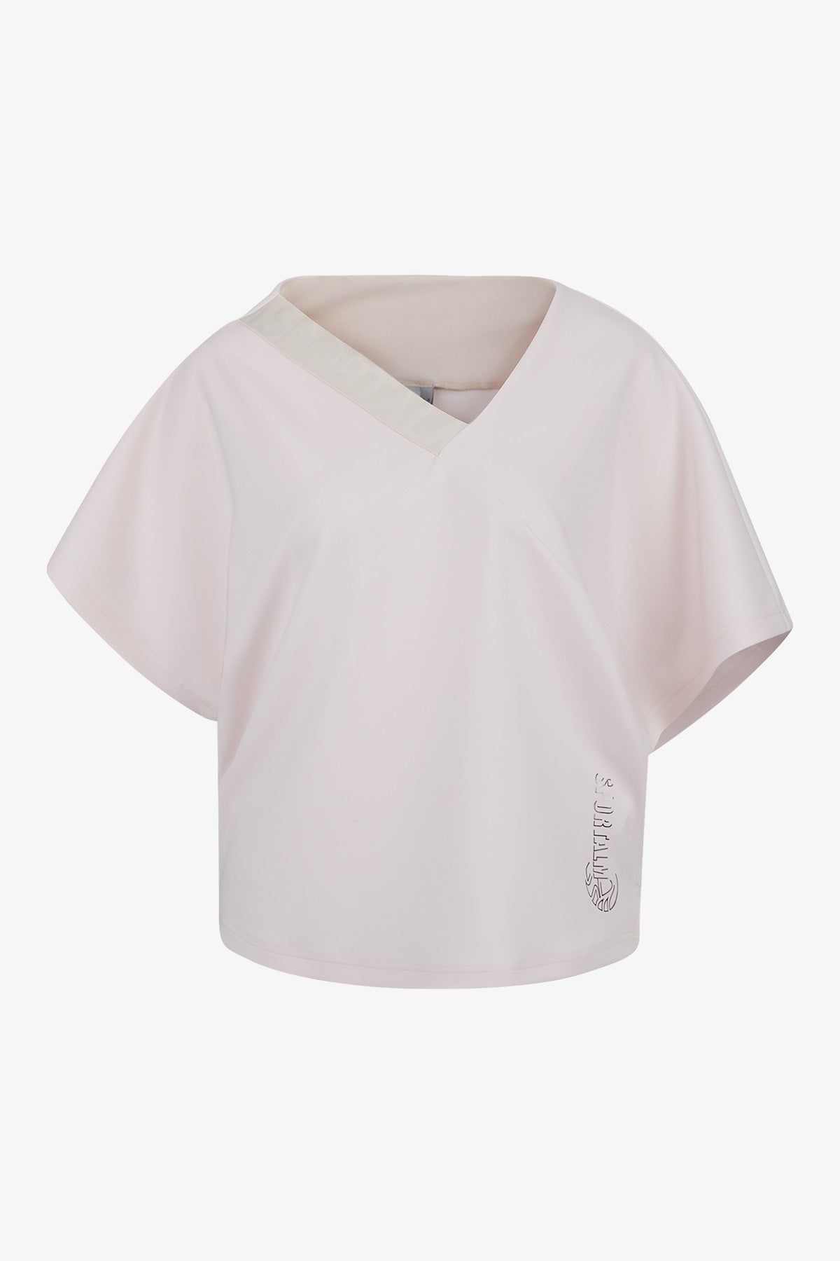 不對稱鬆緊帶V領短袖上衣