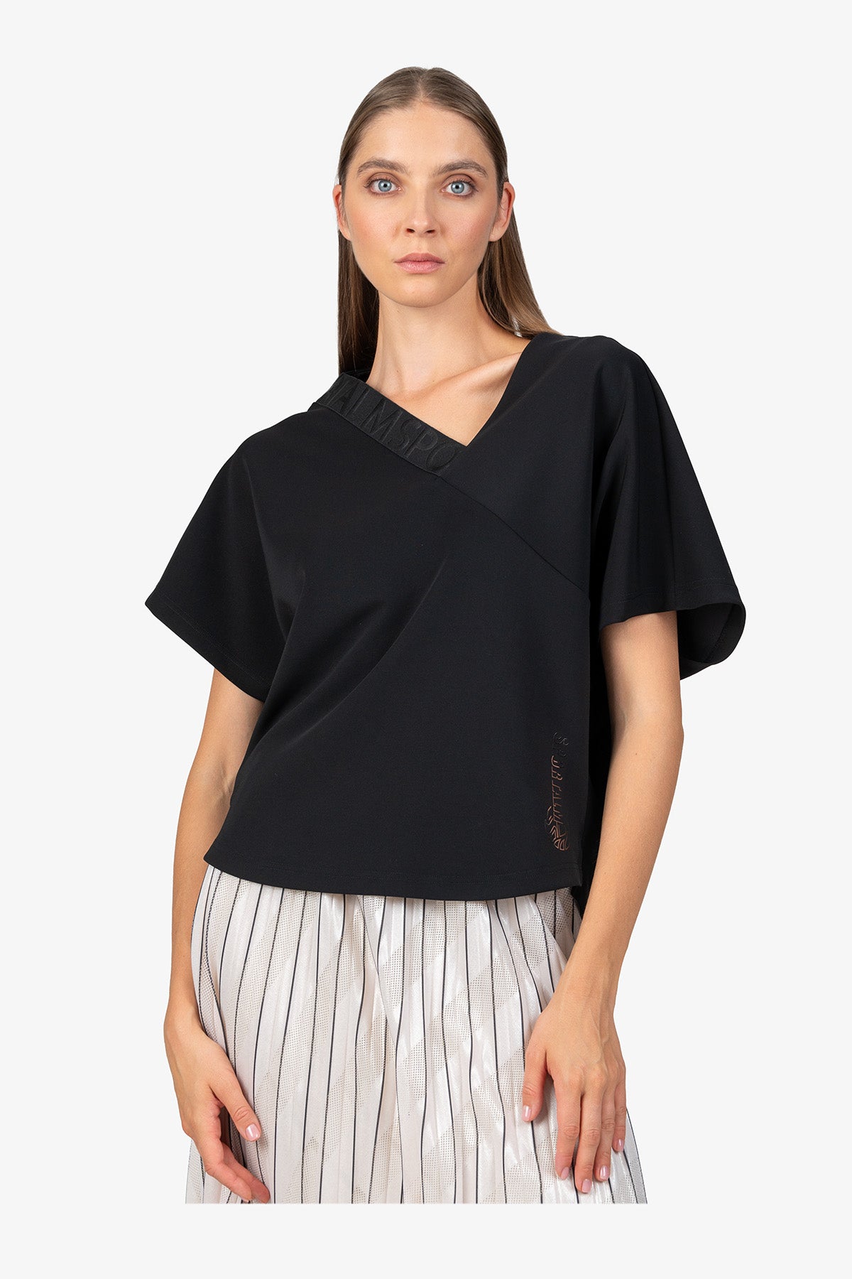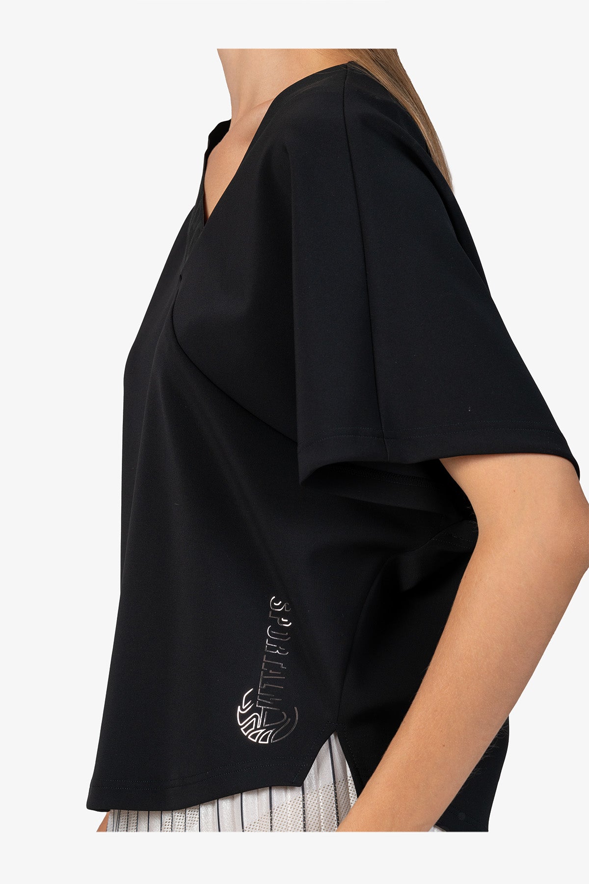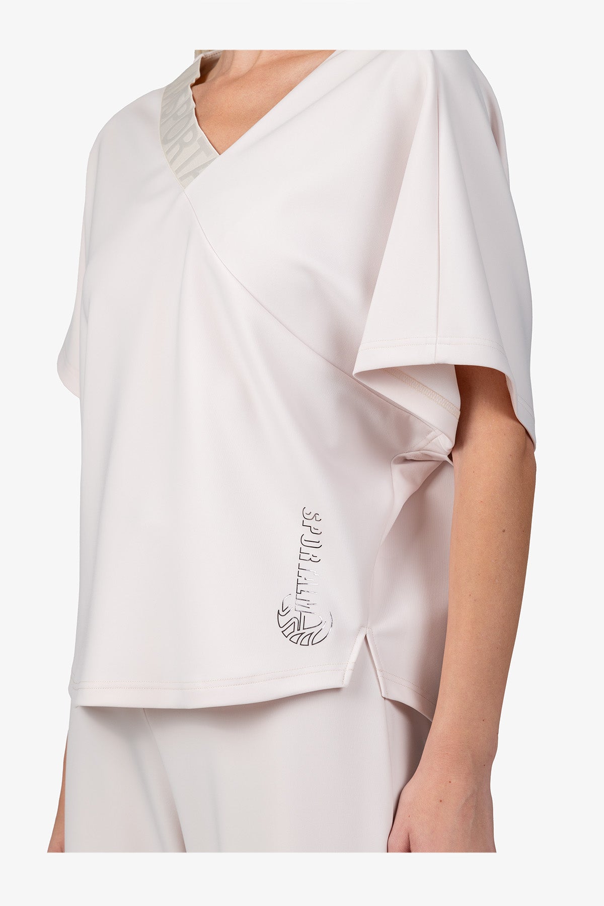 亮點:不對稱設計,領口處有鬆緊帶,側邊有小開衩,正面有 Sportalm 字樣轉印