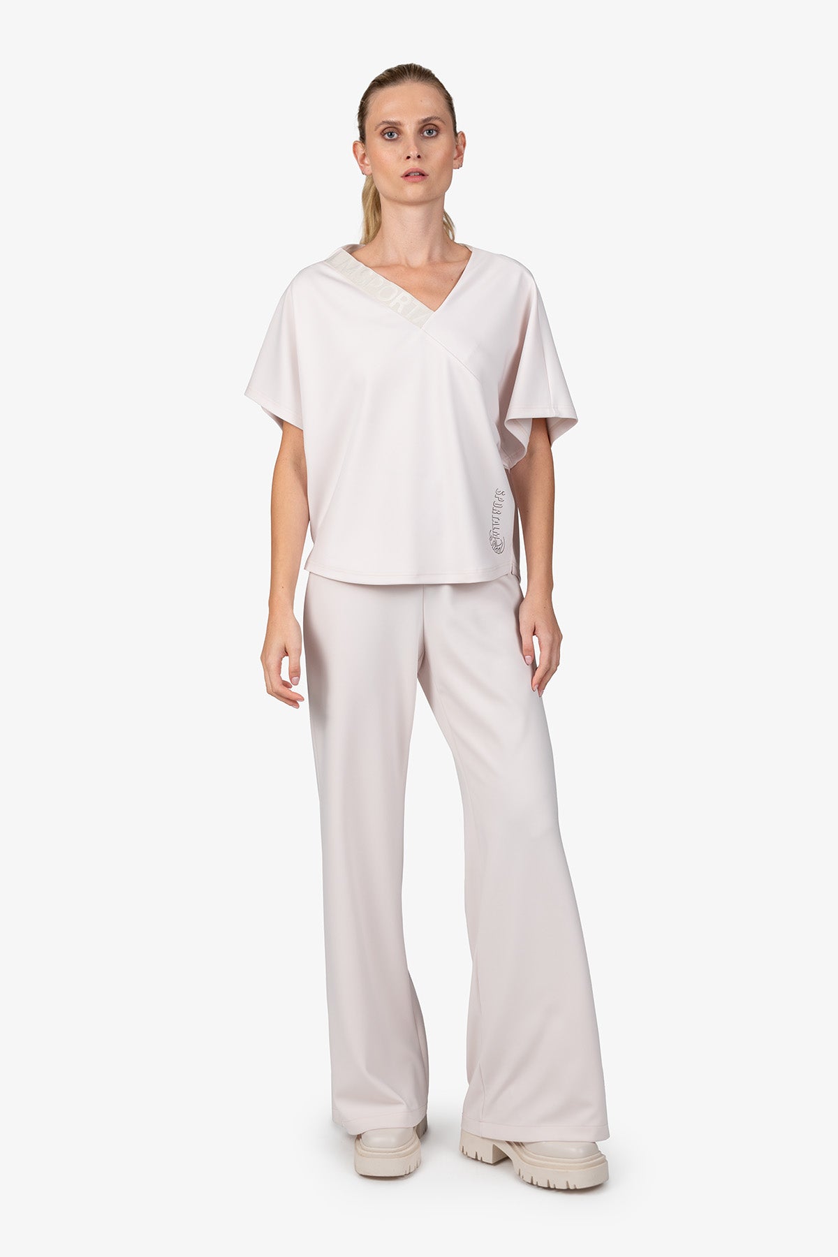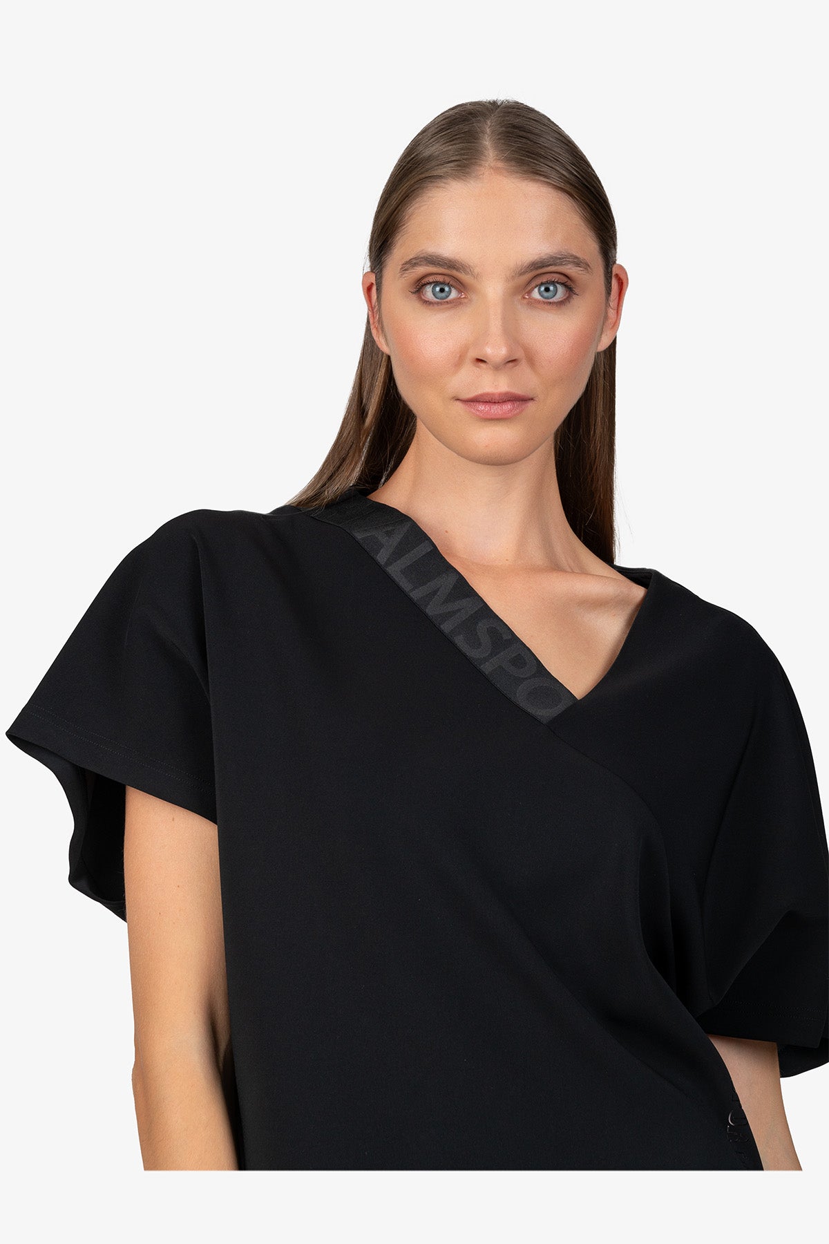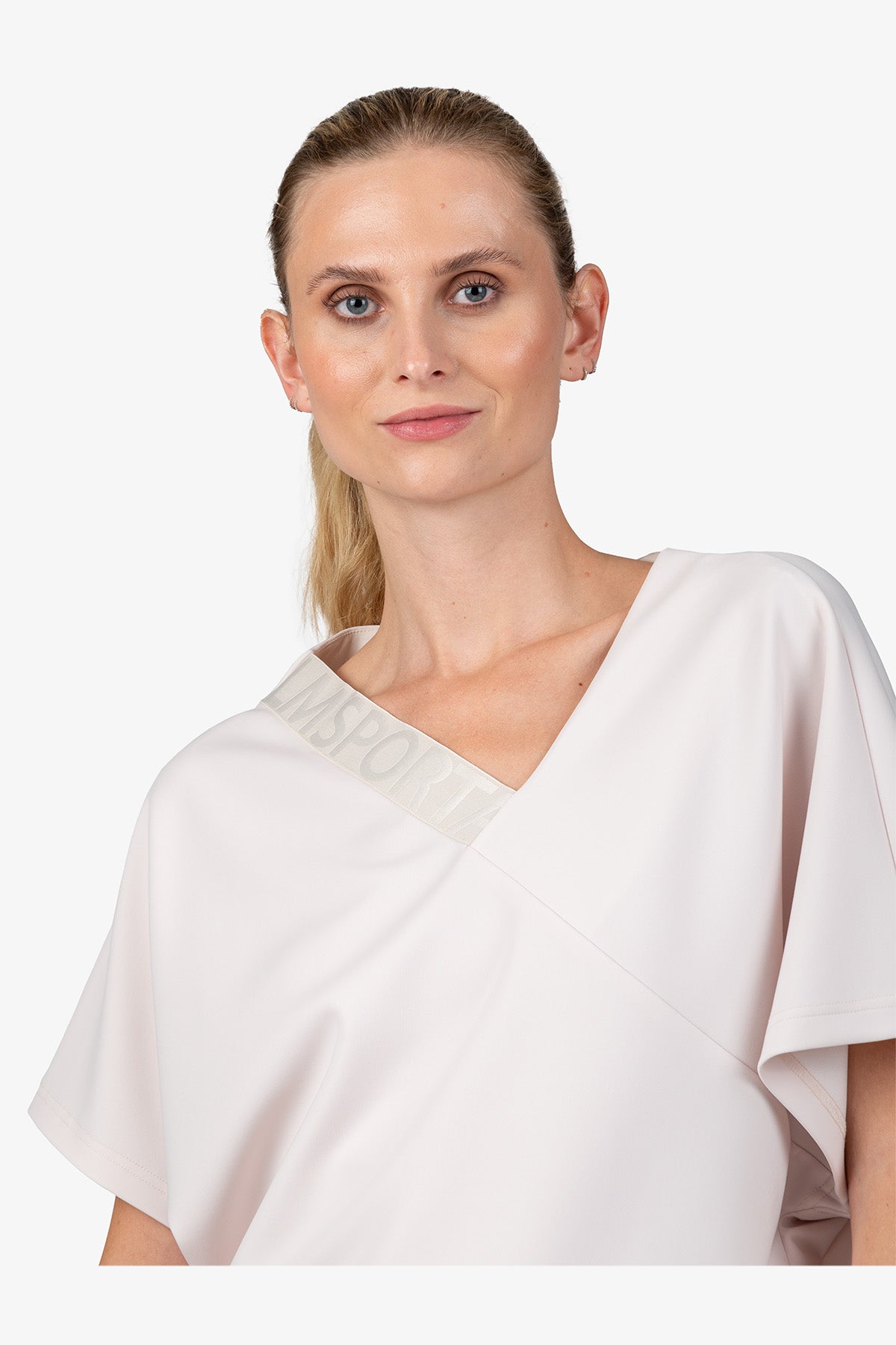 亮點:不對稱設計,領口處有鬆緊帶,側邊有小開衩,正面有 Sportalm 字樣轉印