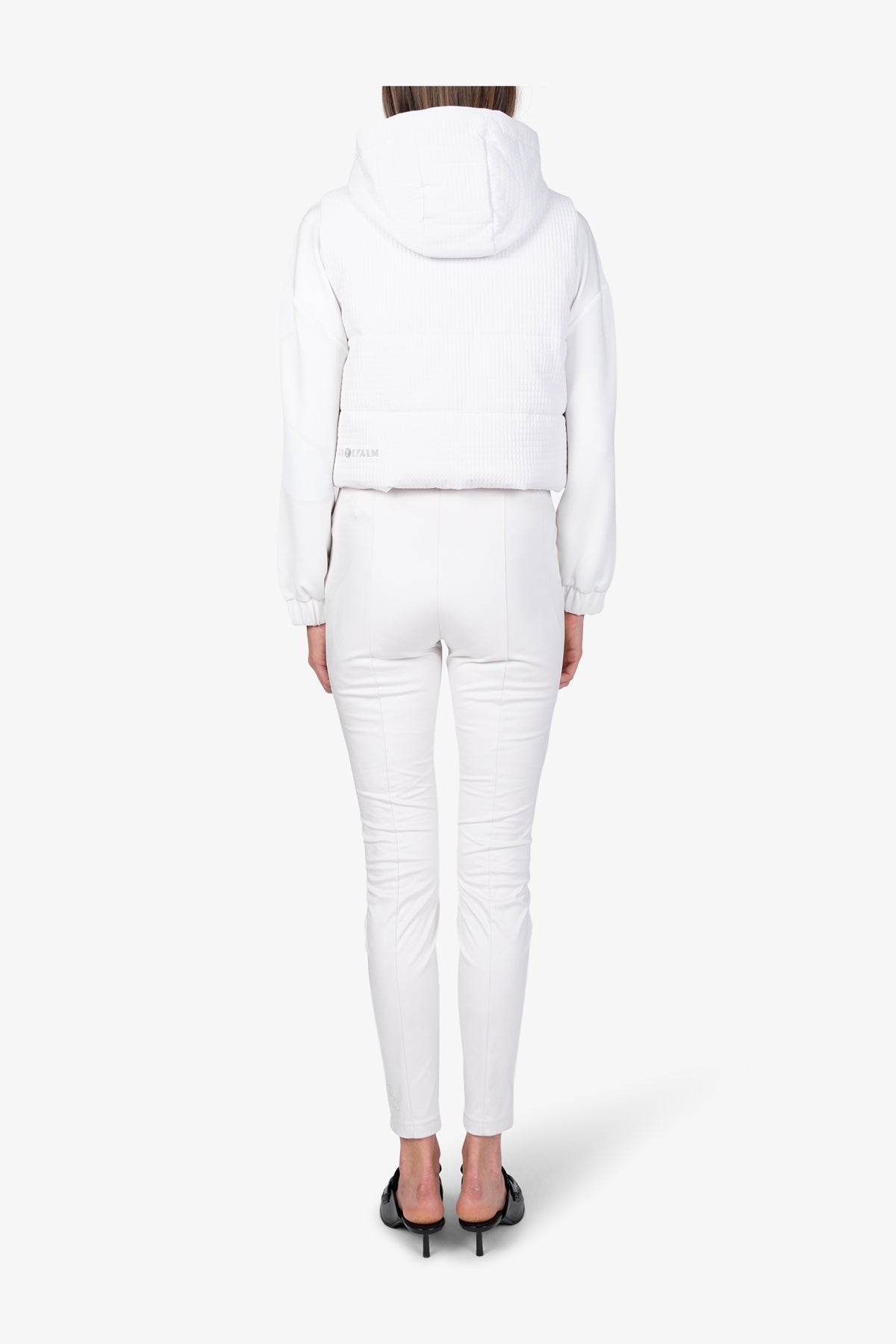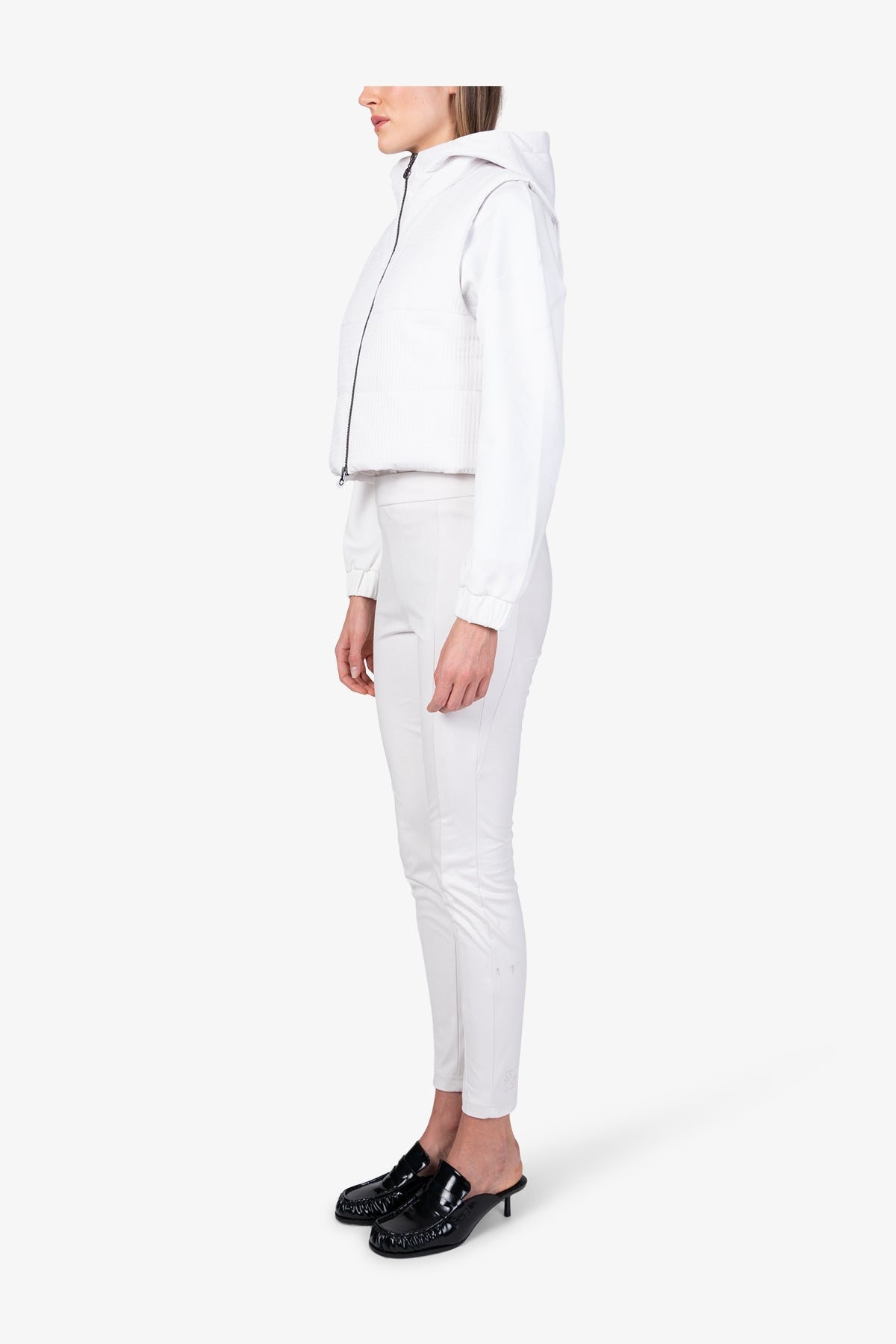 這款圖案設計的軟墊背心不僅外觀時尚,穿著也舒適無比。溫暖的兜帽在寒冷天氣中提供額外保護。